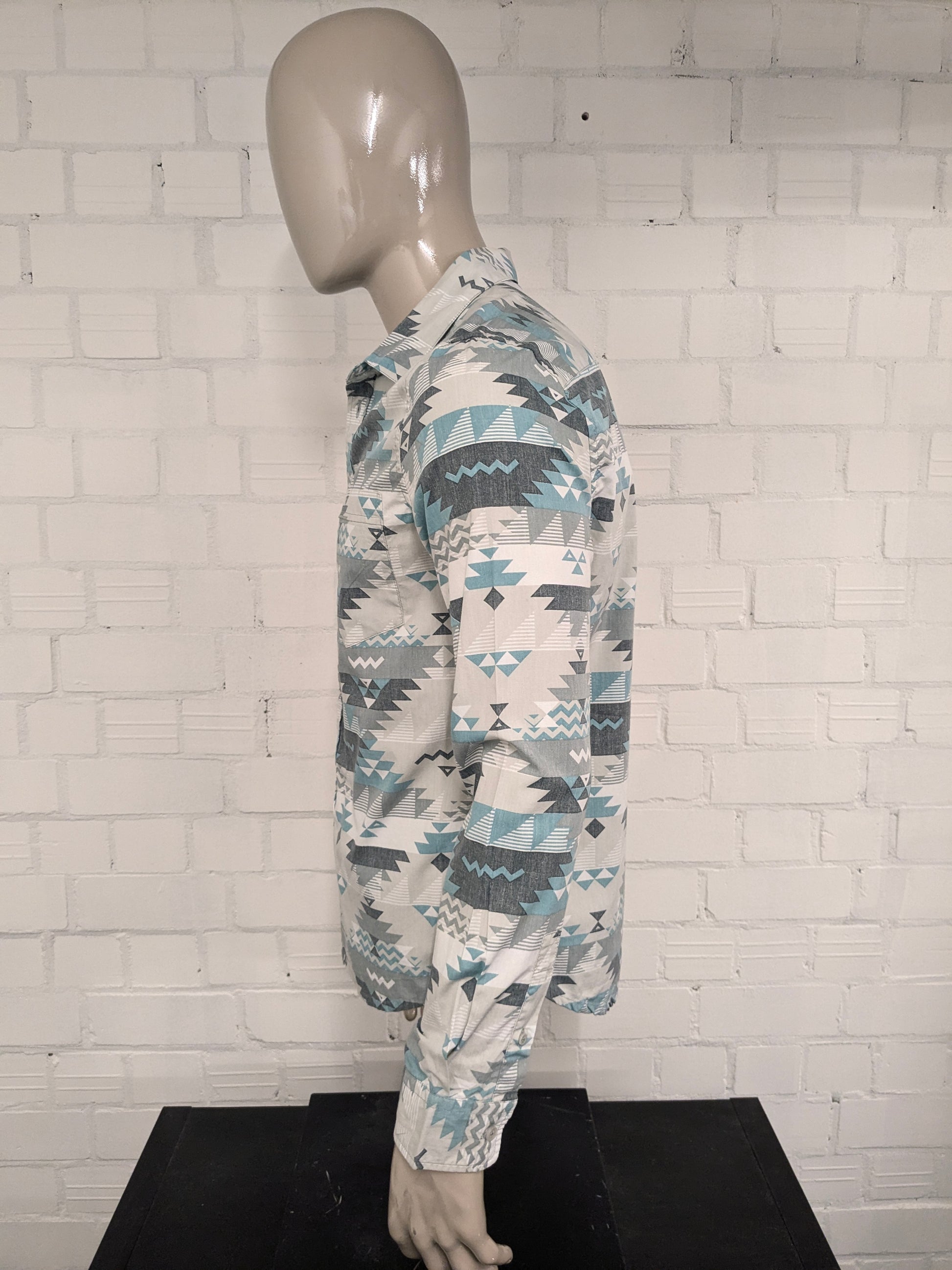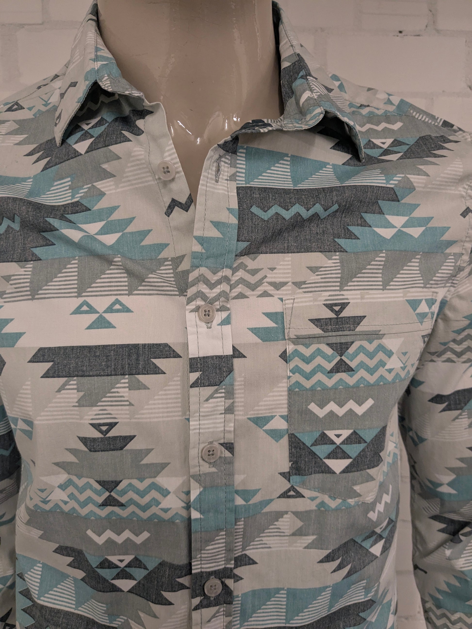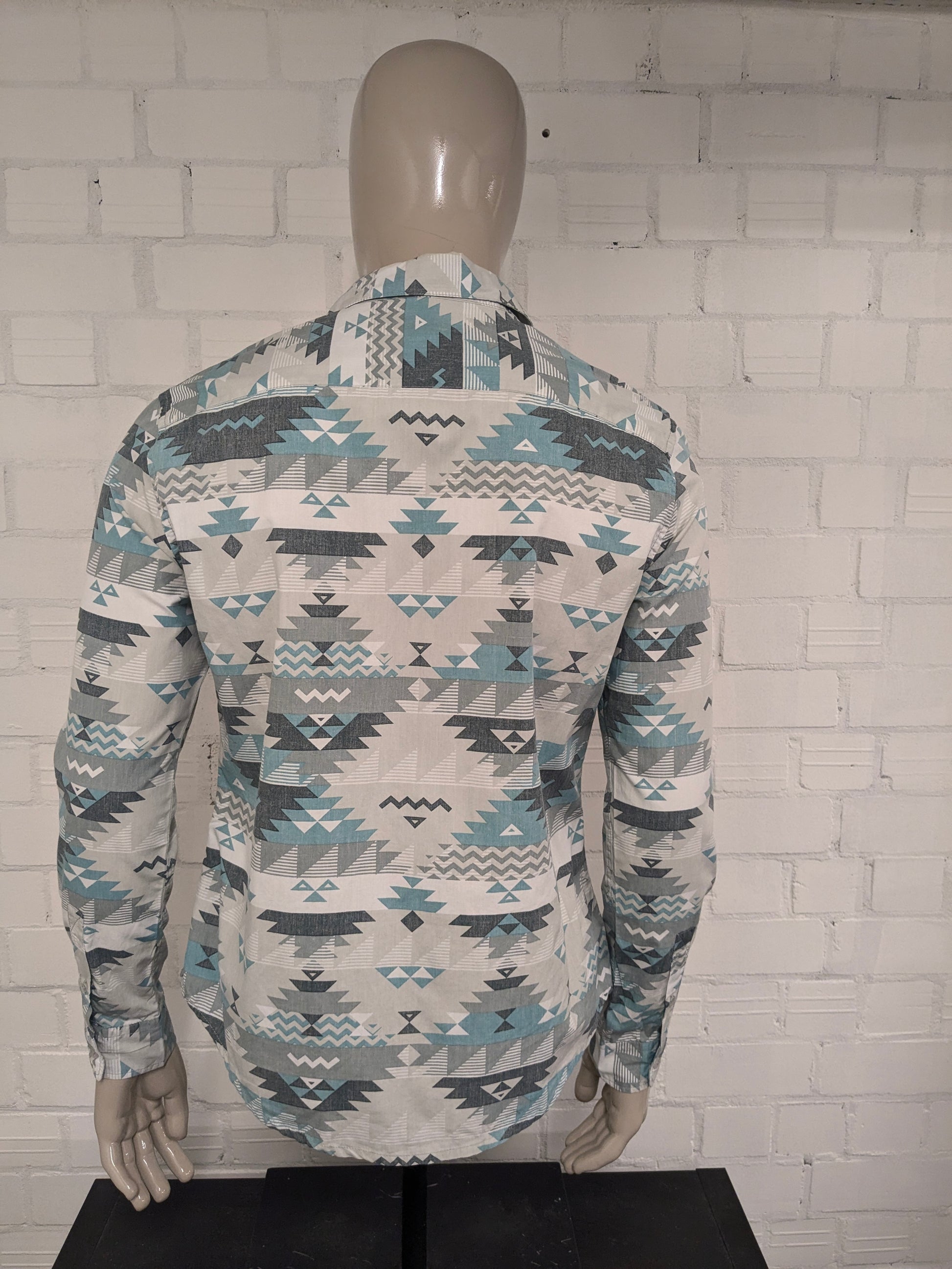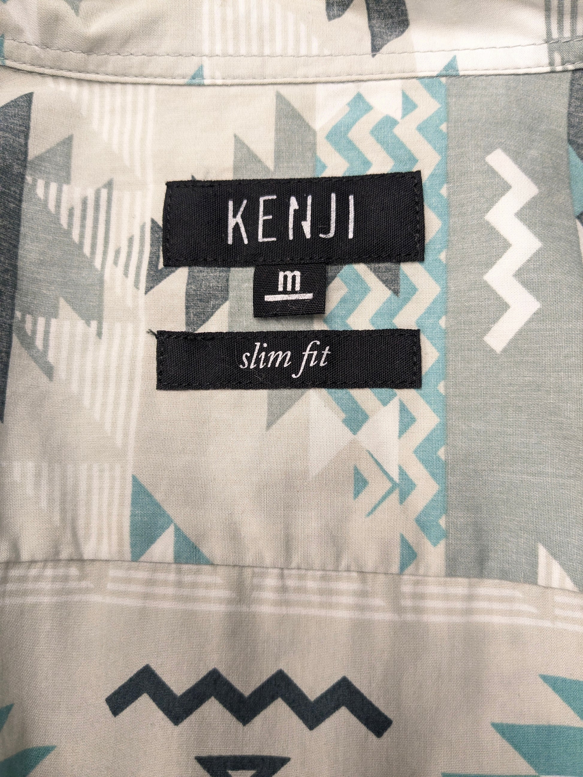 Kenji shirt. Green white print. Size M. Slim Fit.