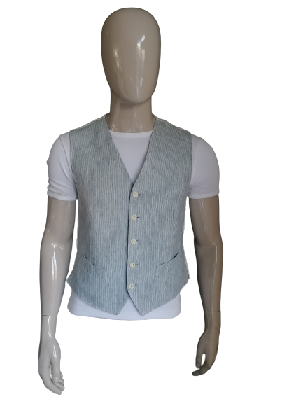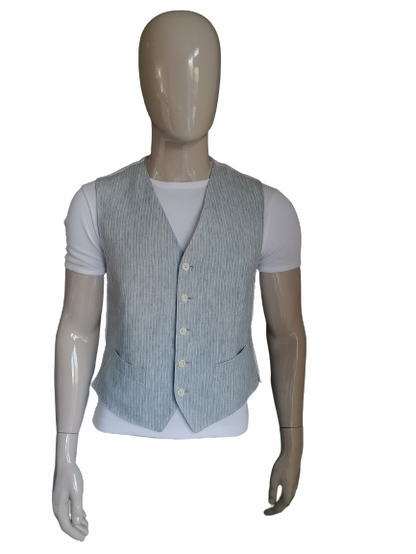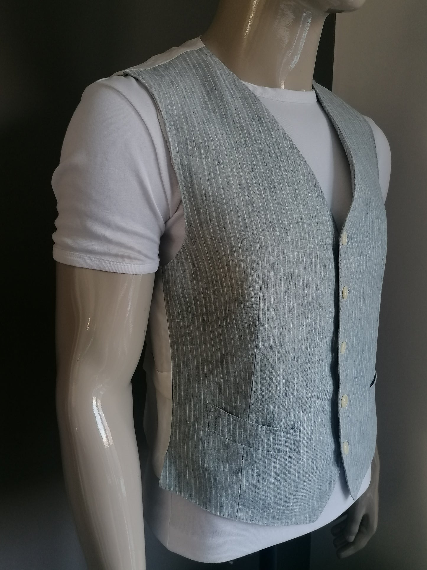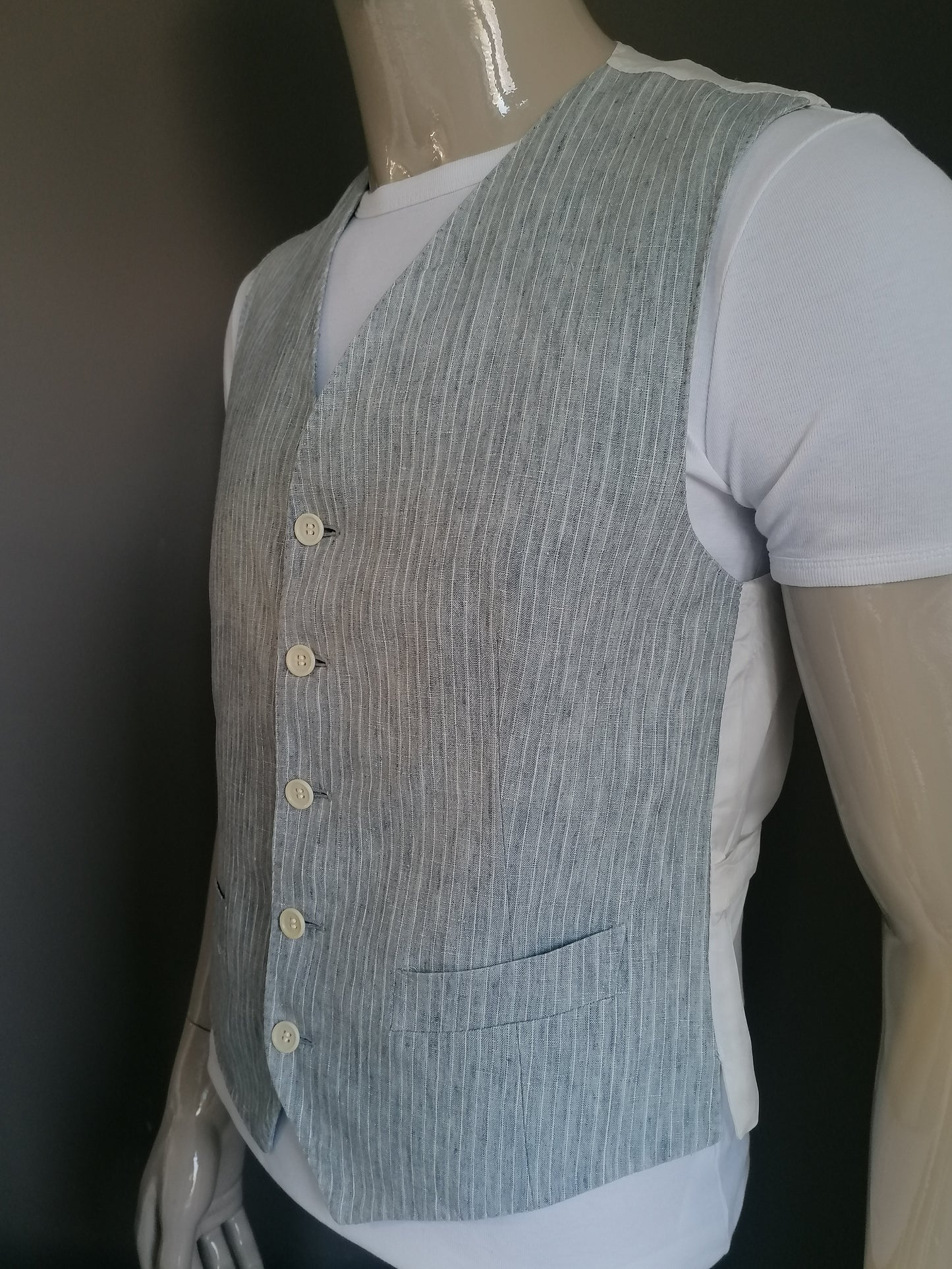 Linen waistcoat. Gray beige blue striped. Size S / 48.