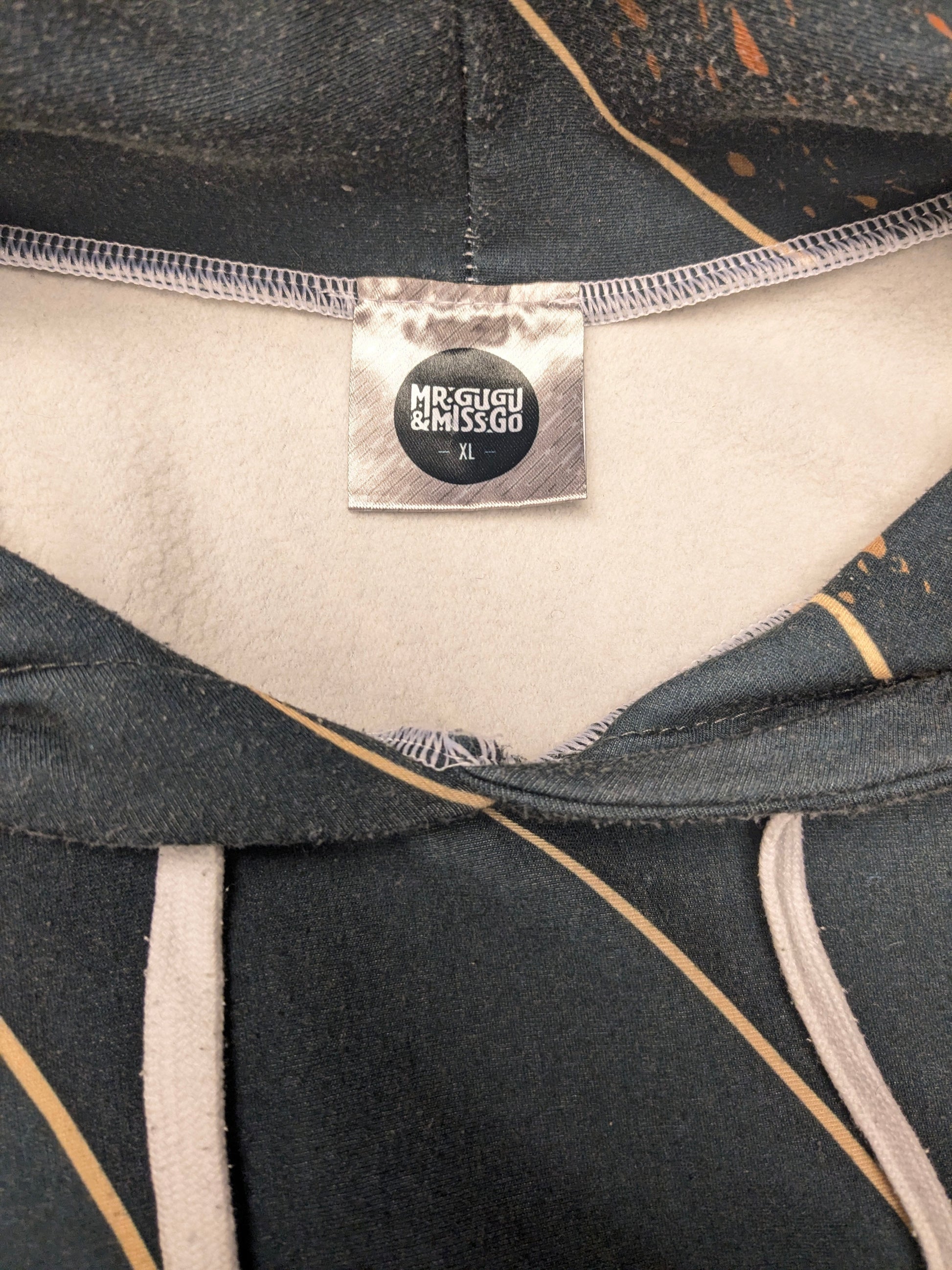 Mr Gugu & Miss Go hoodie. Green Gold colored print. Size XL.