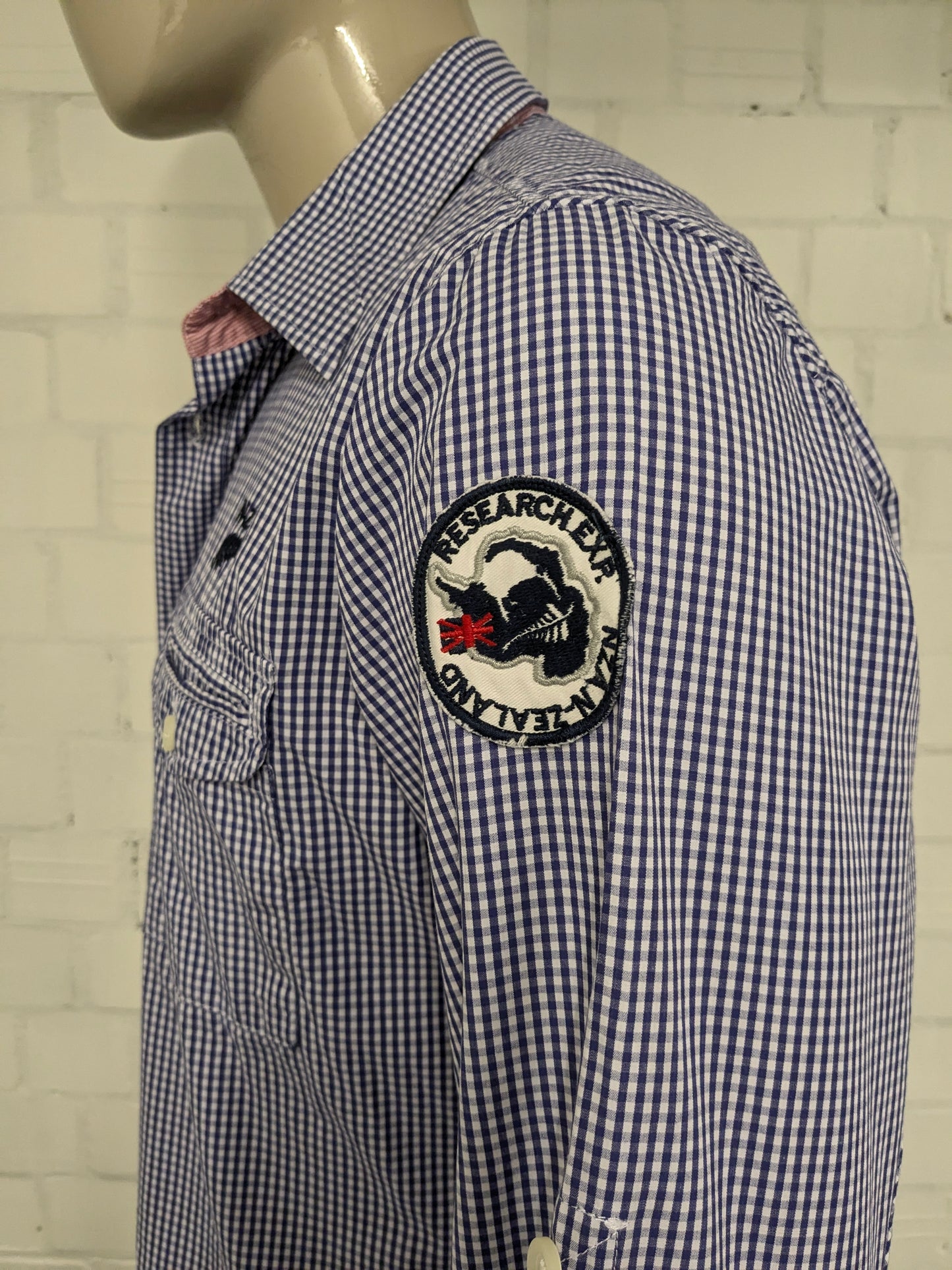 NZa New Zealand Auckland Shirt. Blue white blocked with application on sleeve. Size XL.