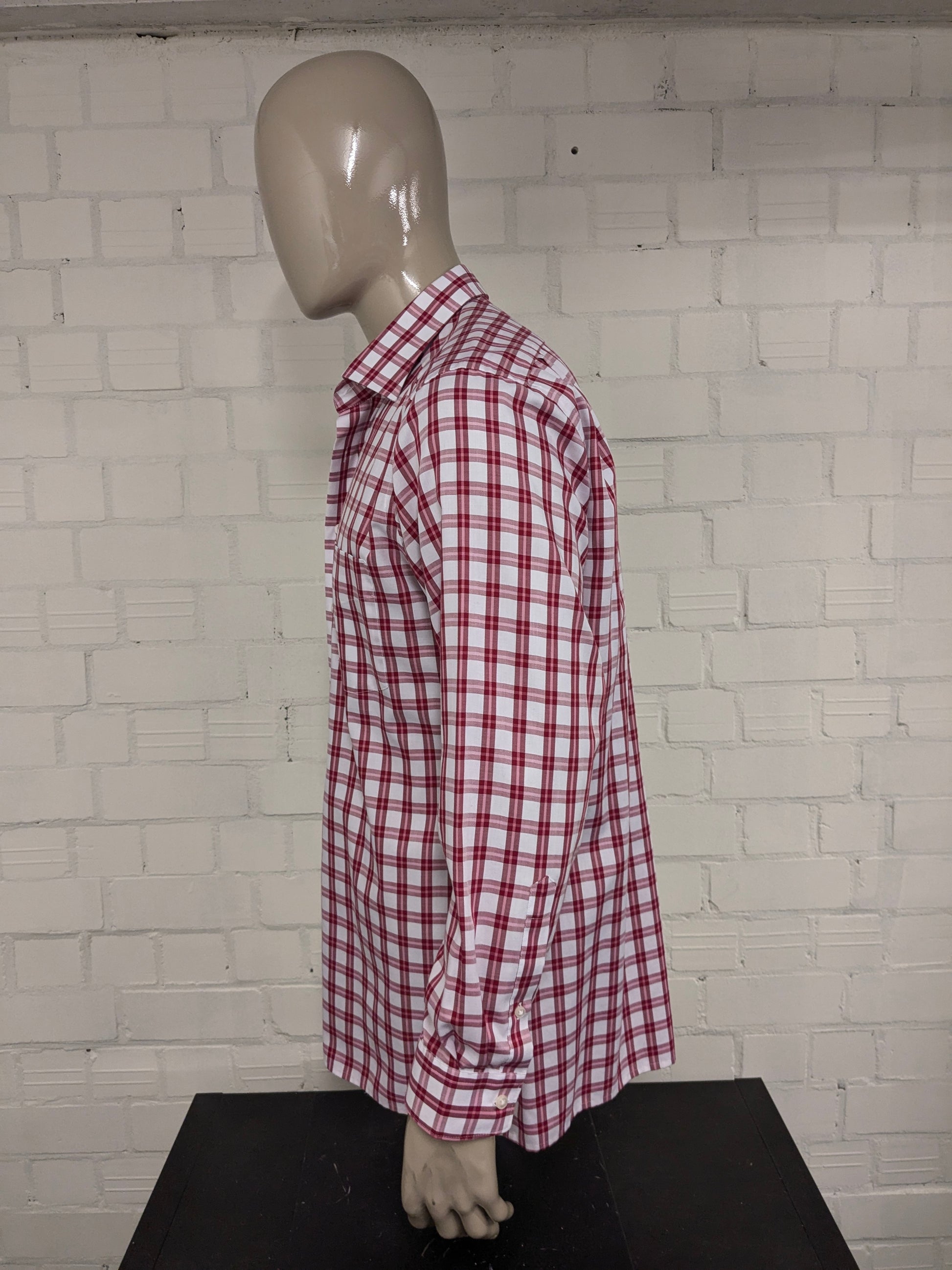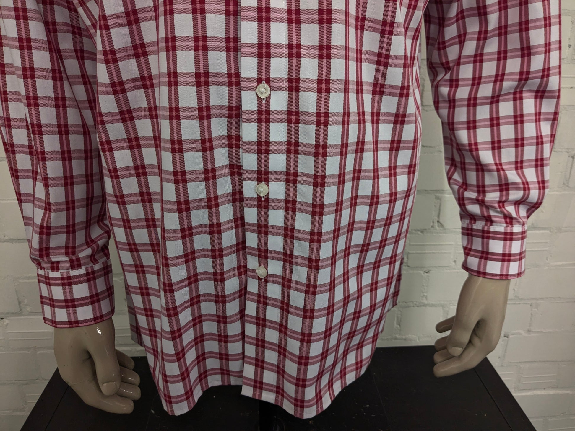 Olymp Luxor shirt. Red Pink White checked. Size 43 / XL. slim line.