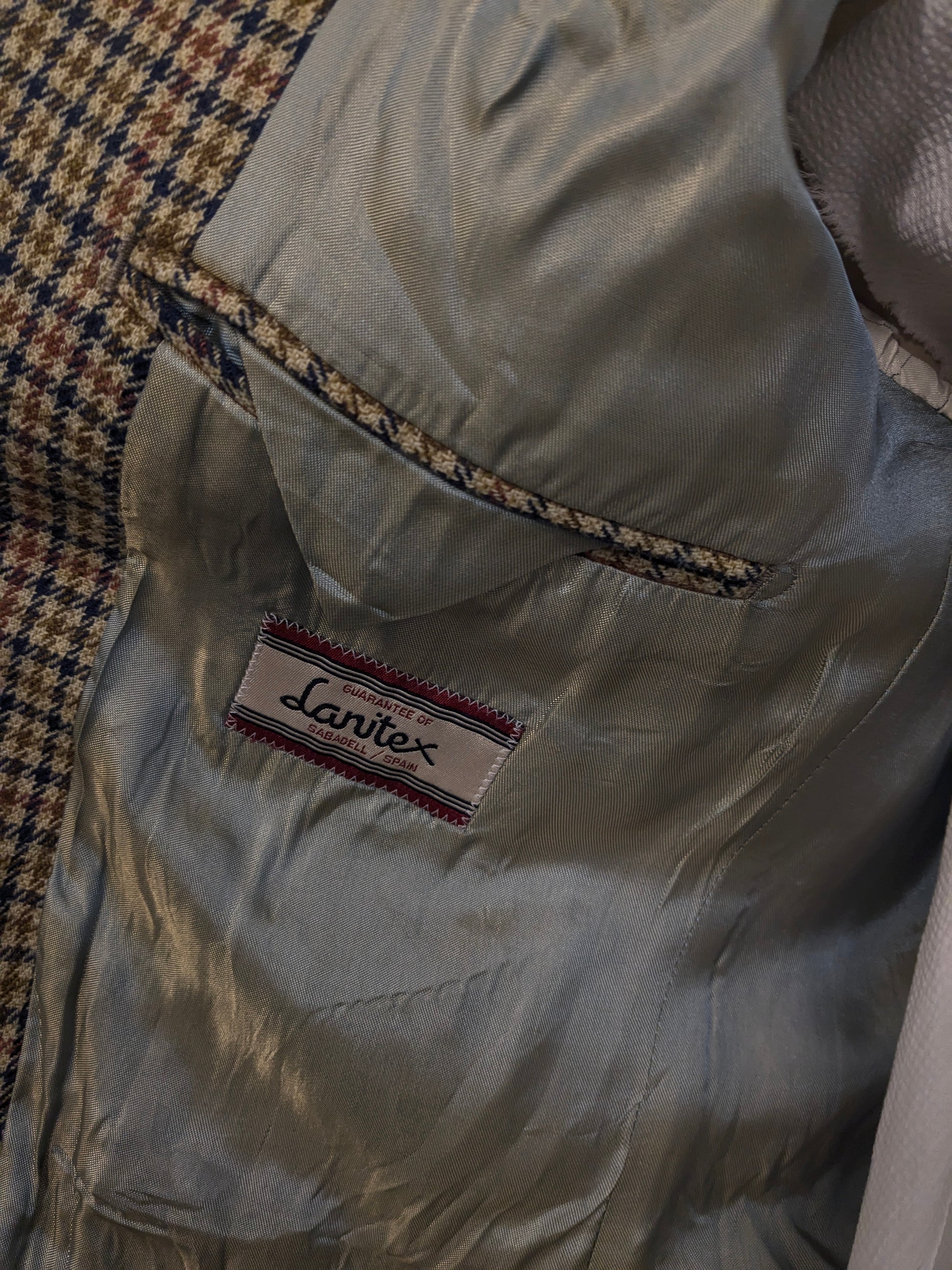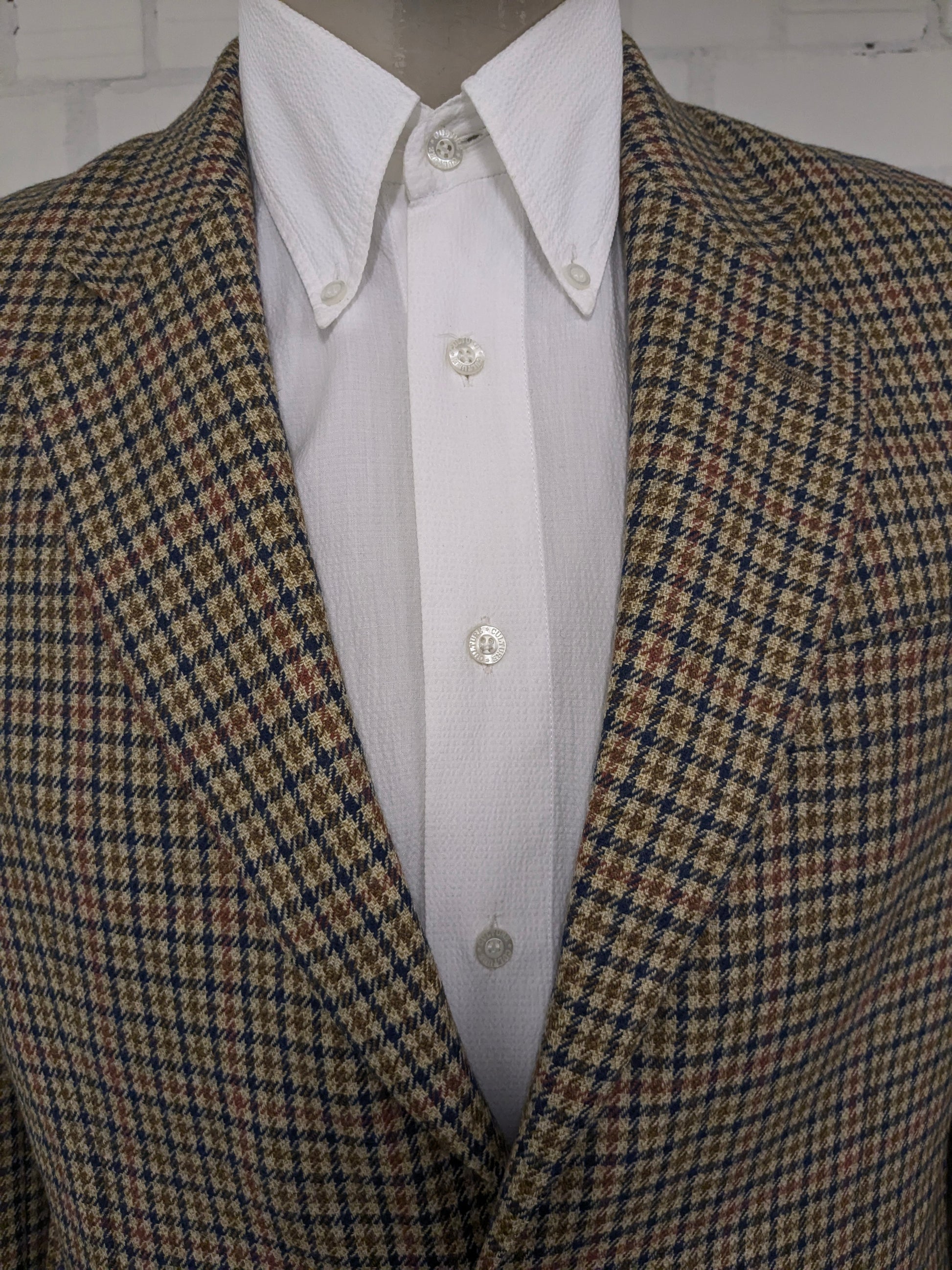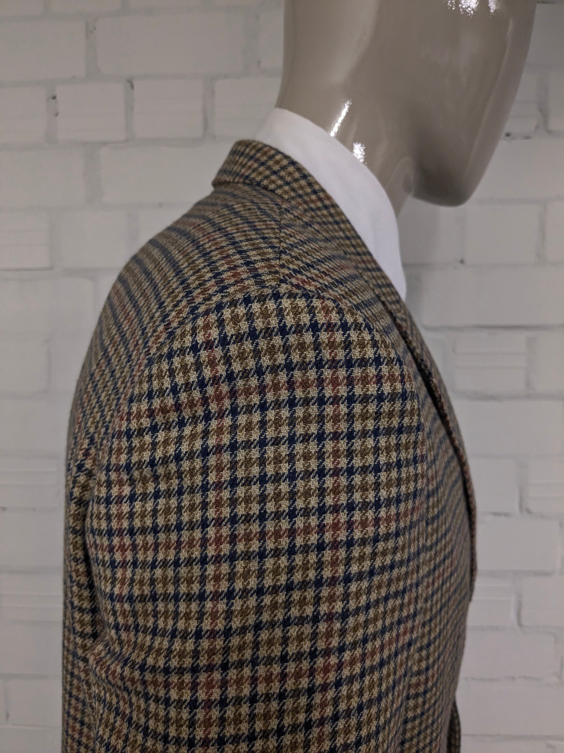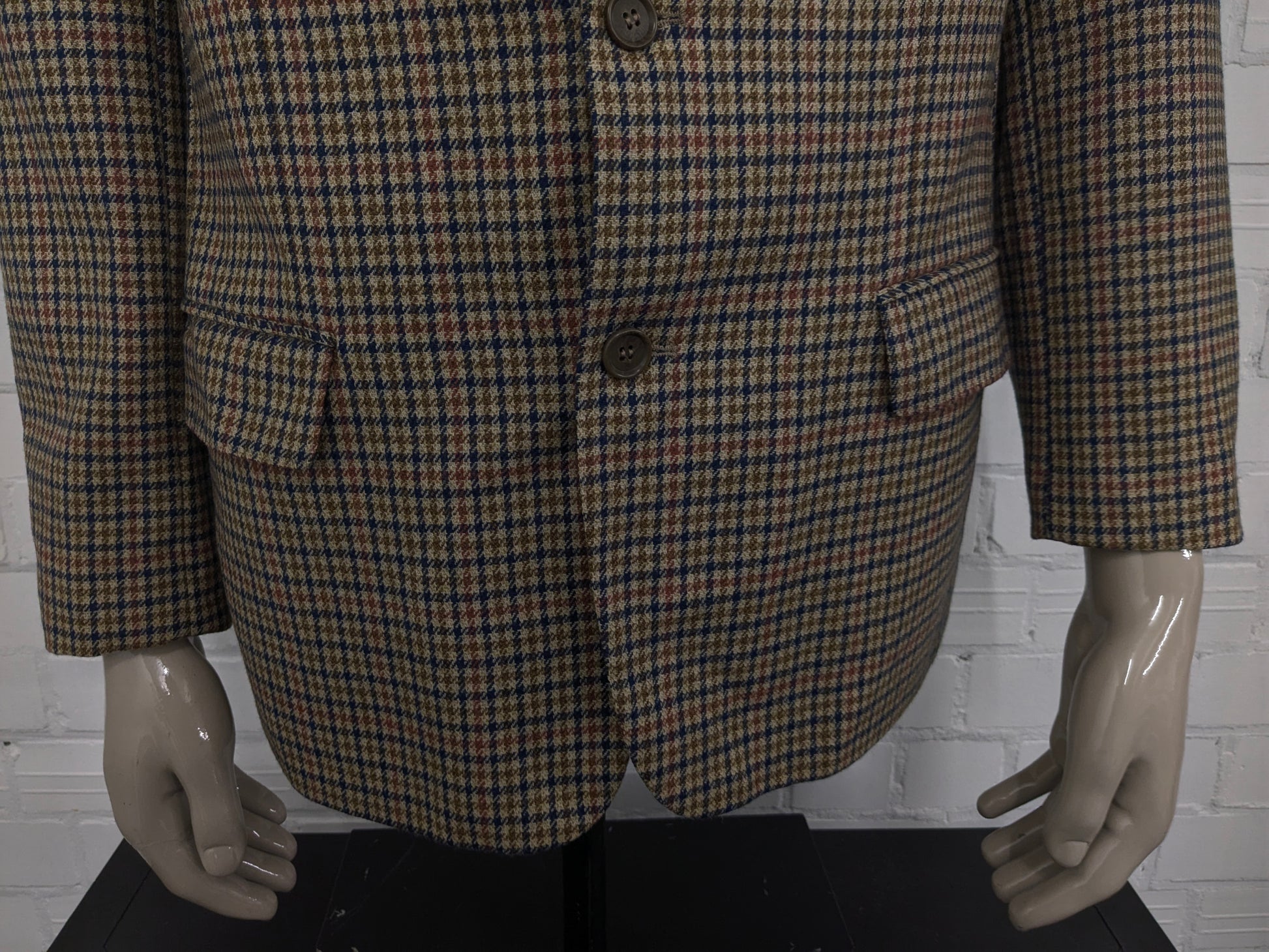 Vintage Marco Fellini woolen jacket. Green blue red motif. Size 54.