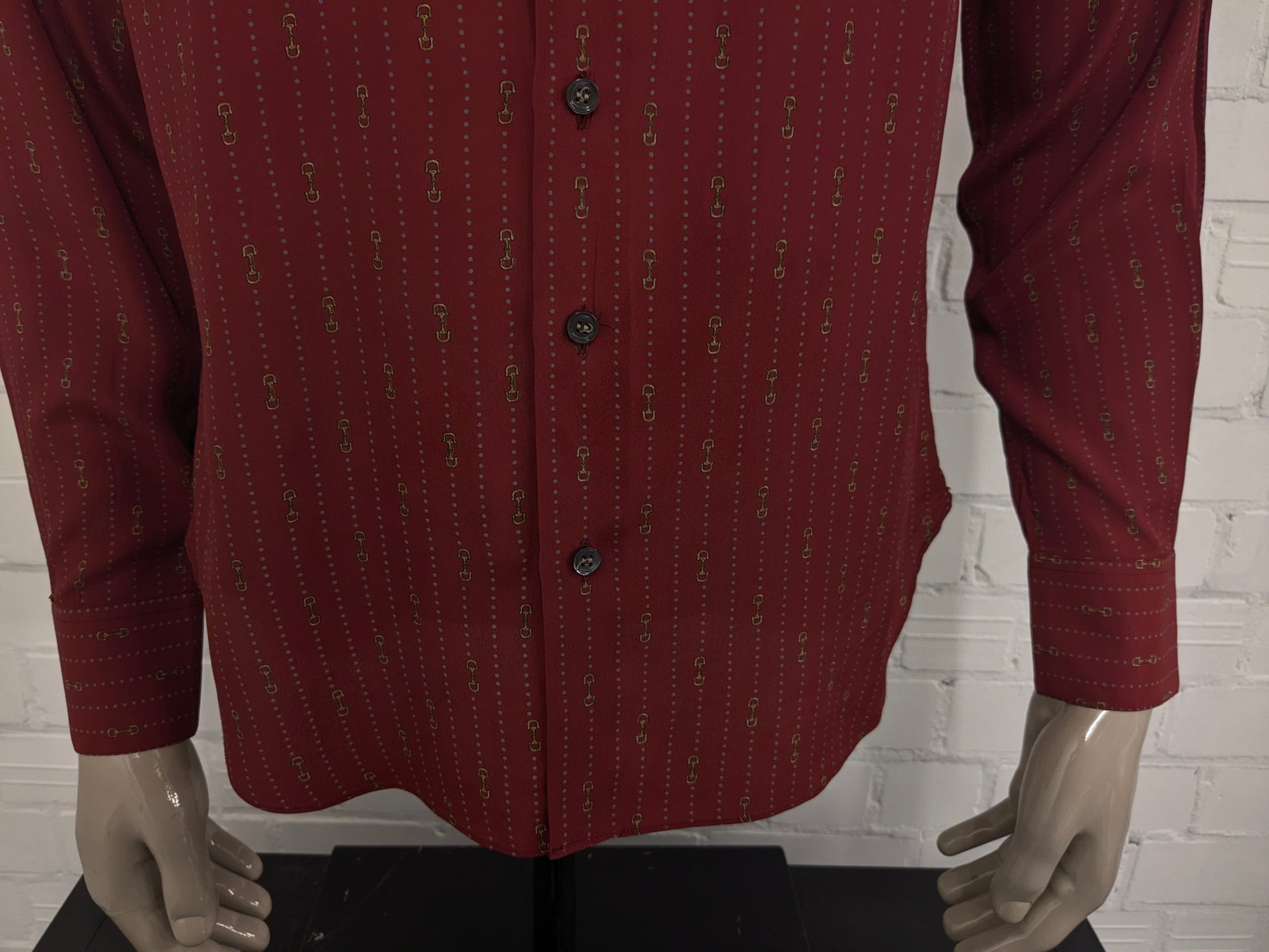 Vintage Rugantino shirt. Red Gray Gold colored print. Size M.