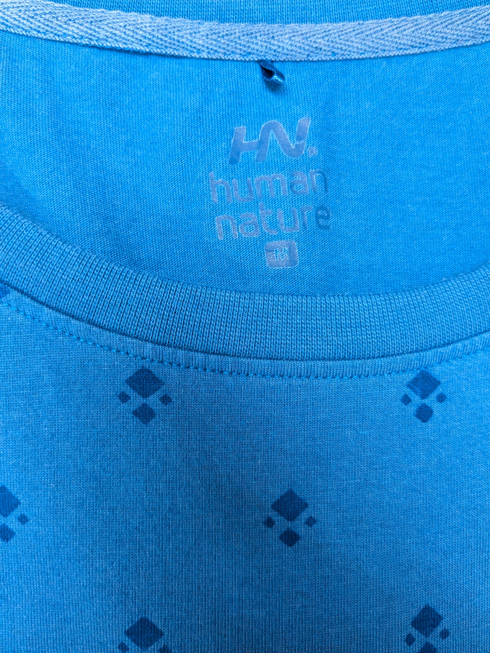 Human Nature singlet. Blauw met opdruk. Maat M.