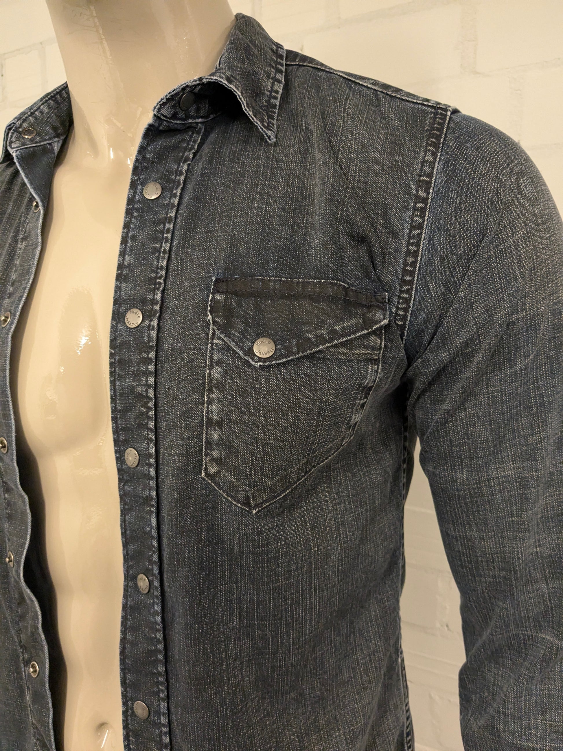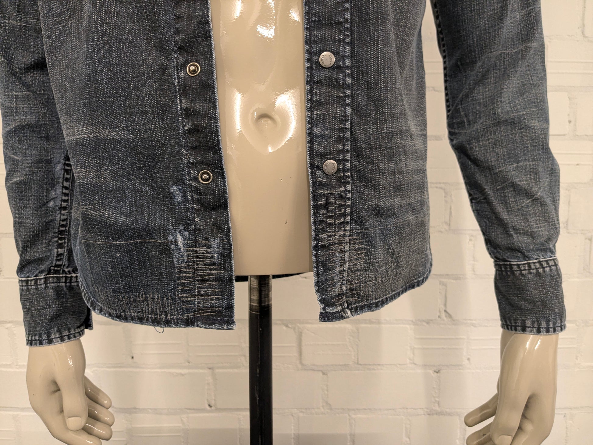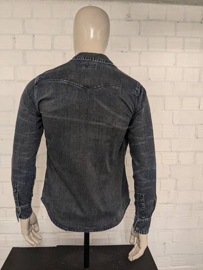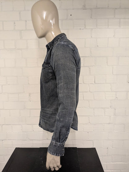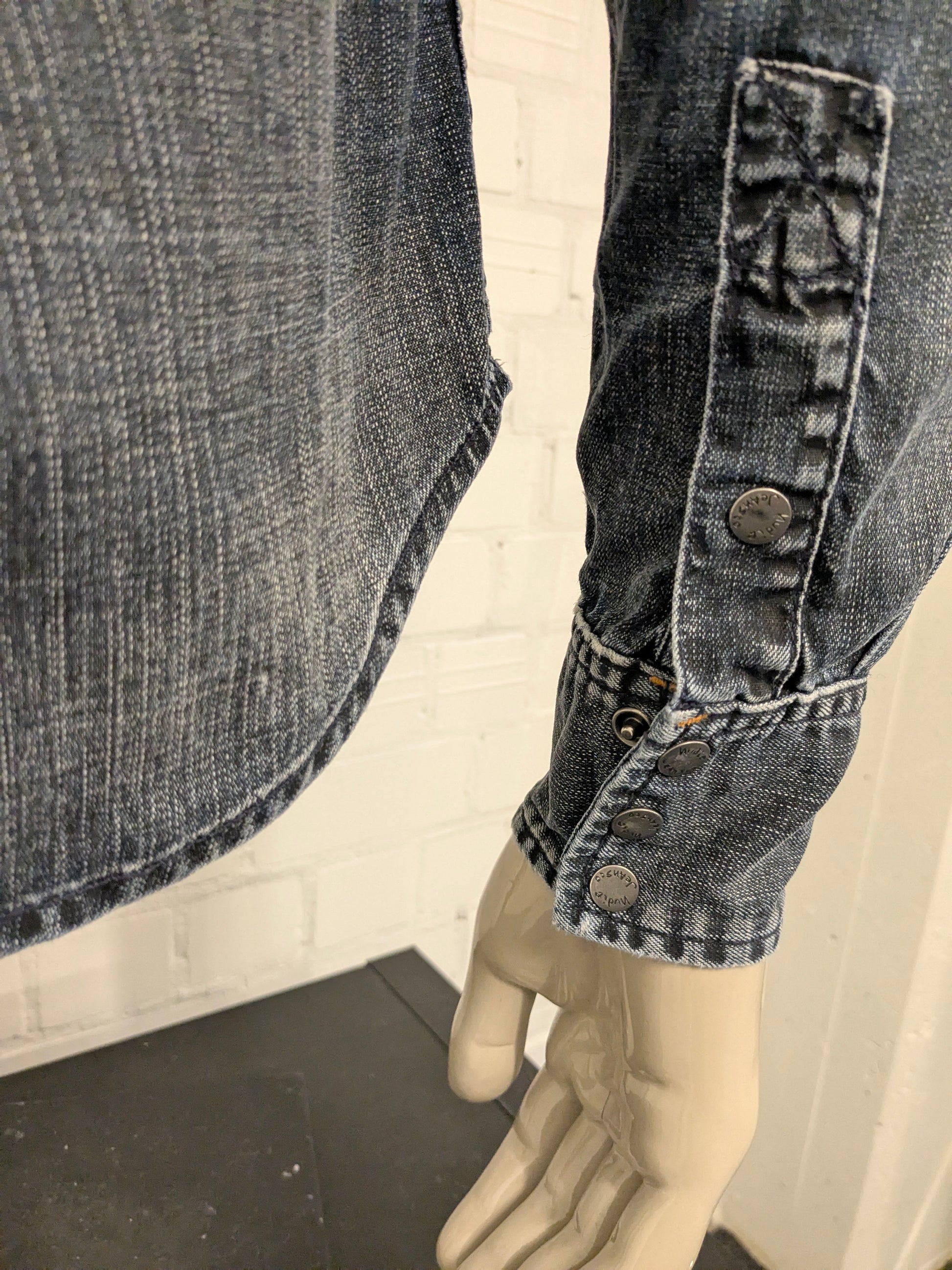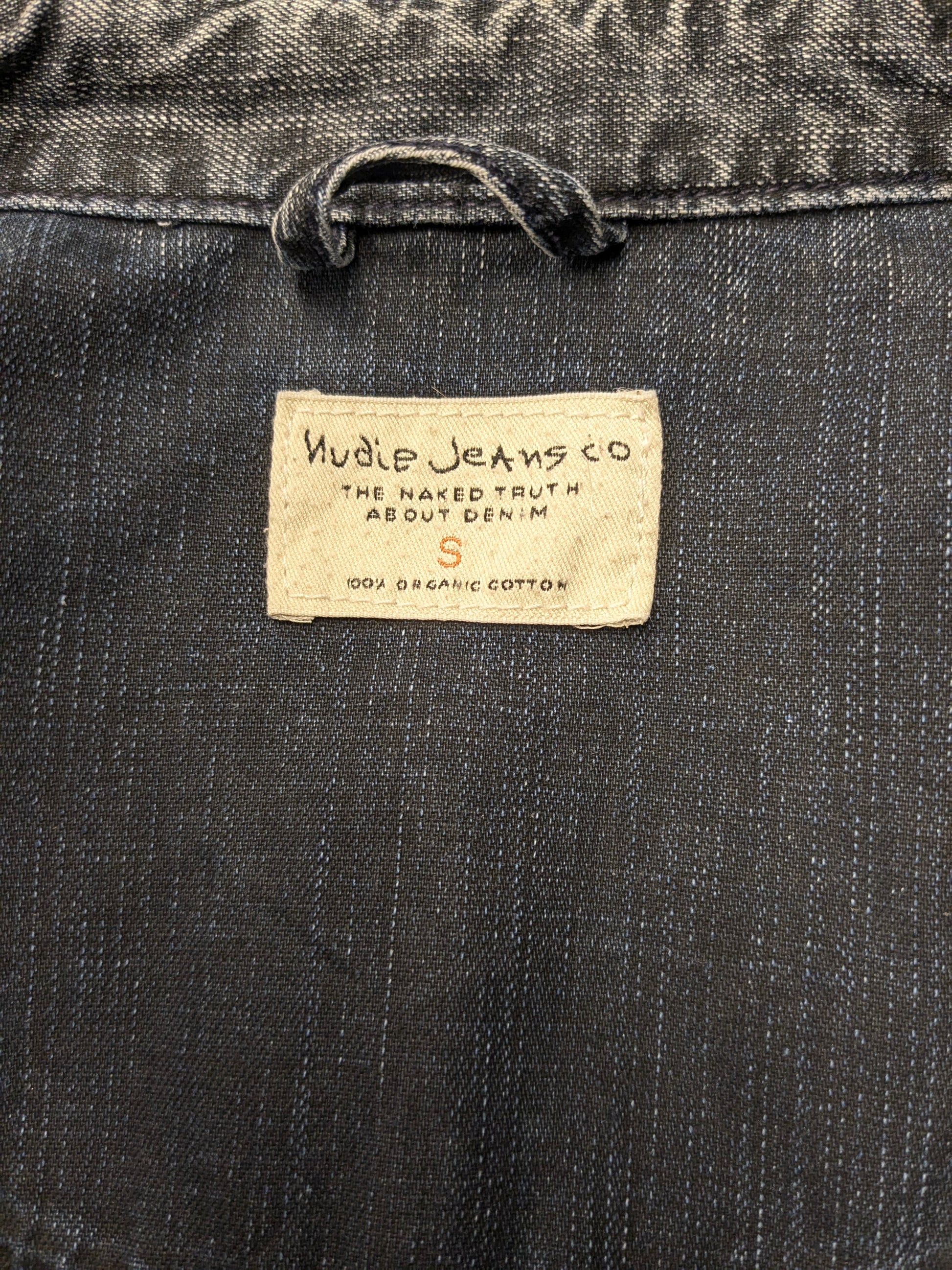Nudie Jeans Co denim con pernos de prensa. Mirada desvaída. Color azul oscuro. Tamaño S.