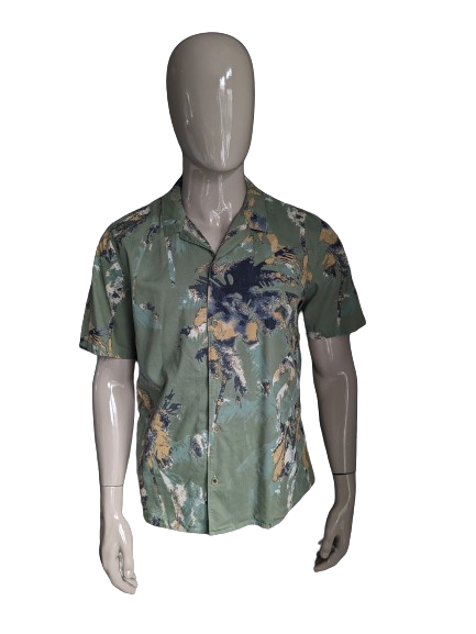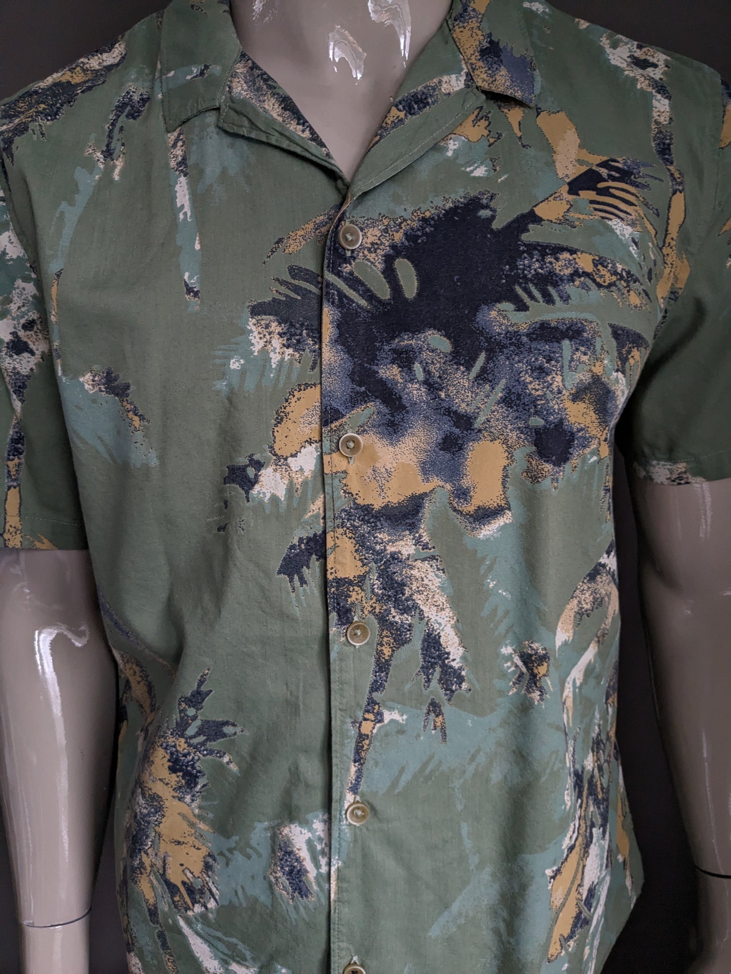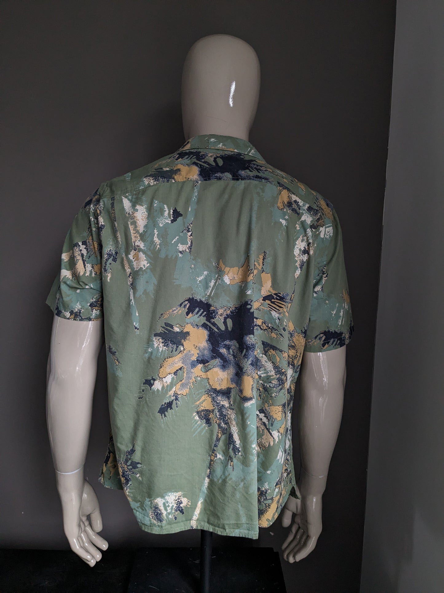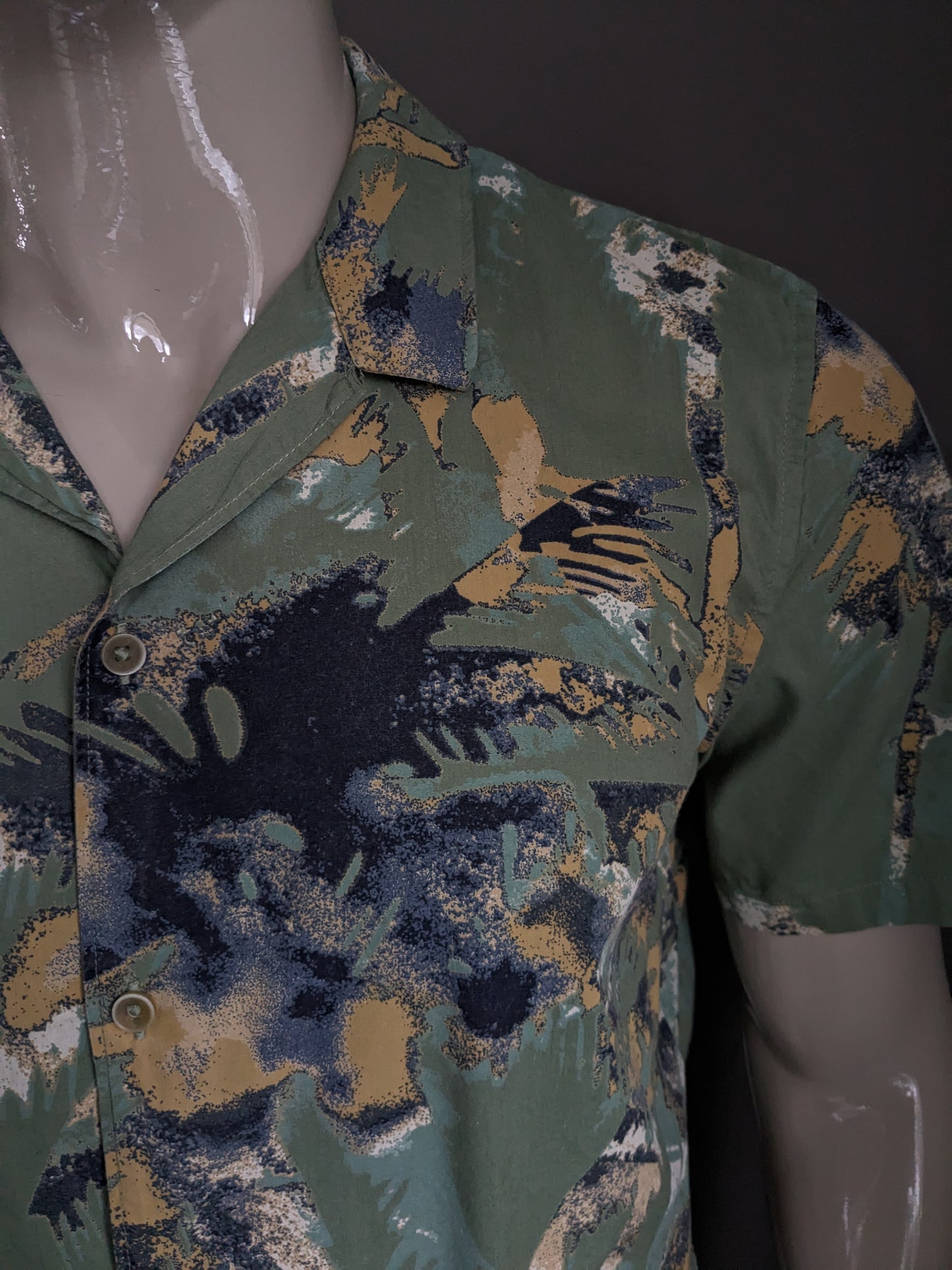 S.Oliver camisa manga corta. Estampado negro marrón verde. Tamaño L. Fit Resort.