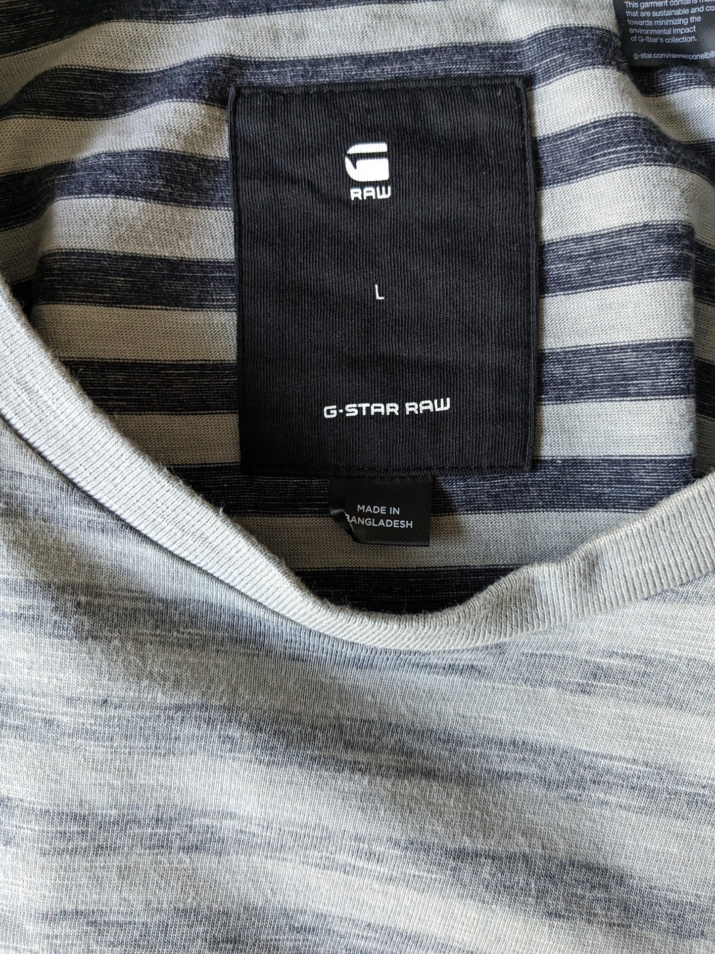 G-estrella suéter delgado crudo. Rayado gris. Talla L.