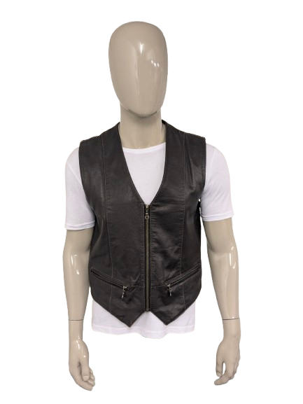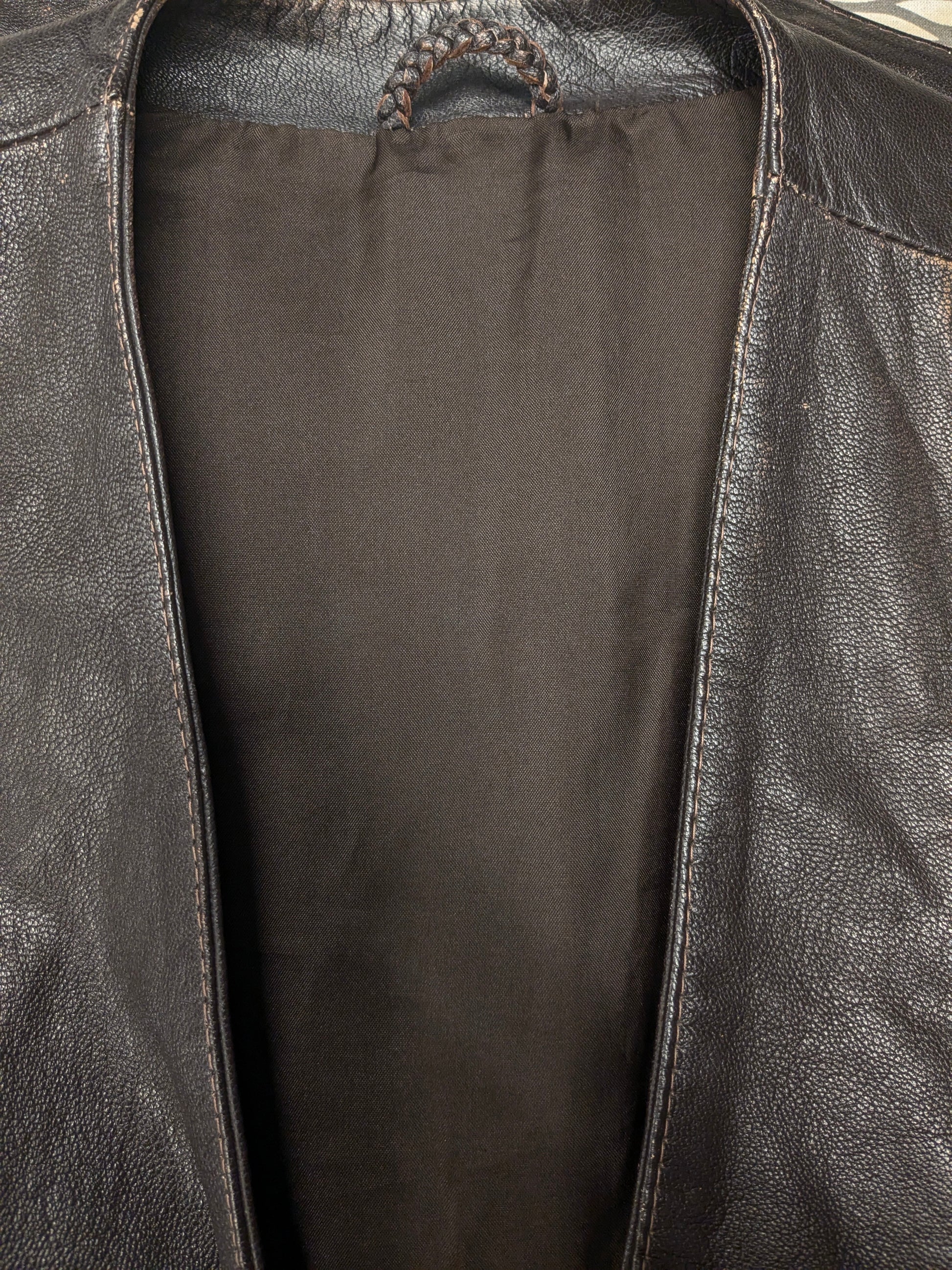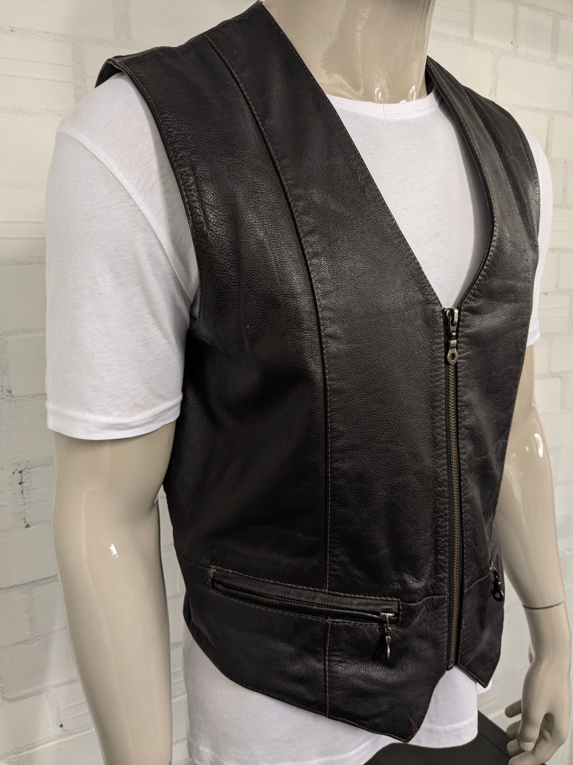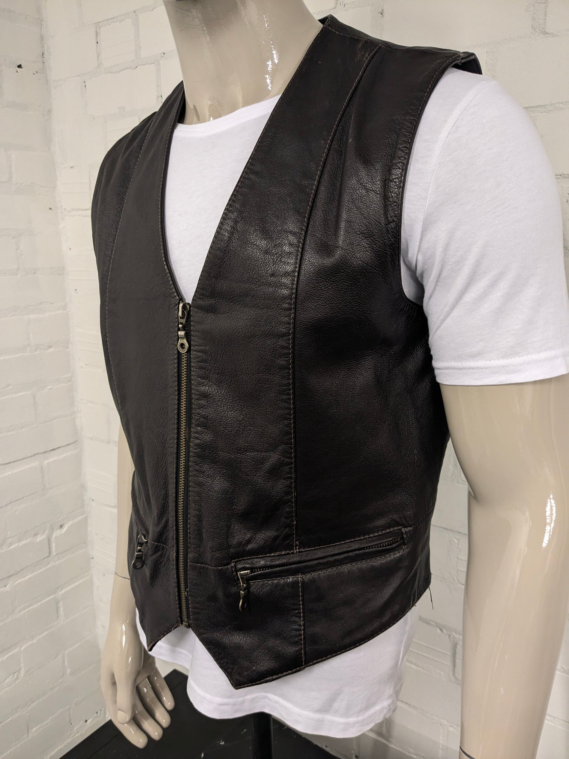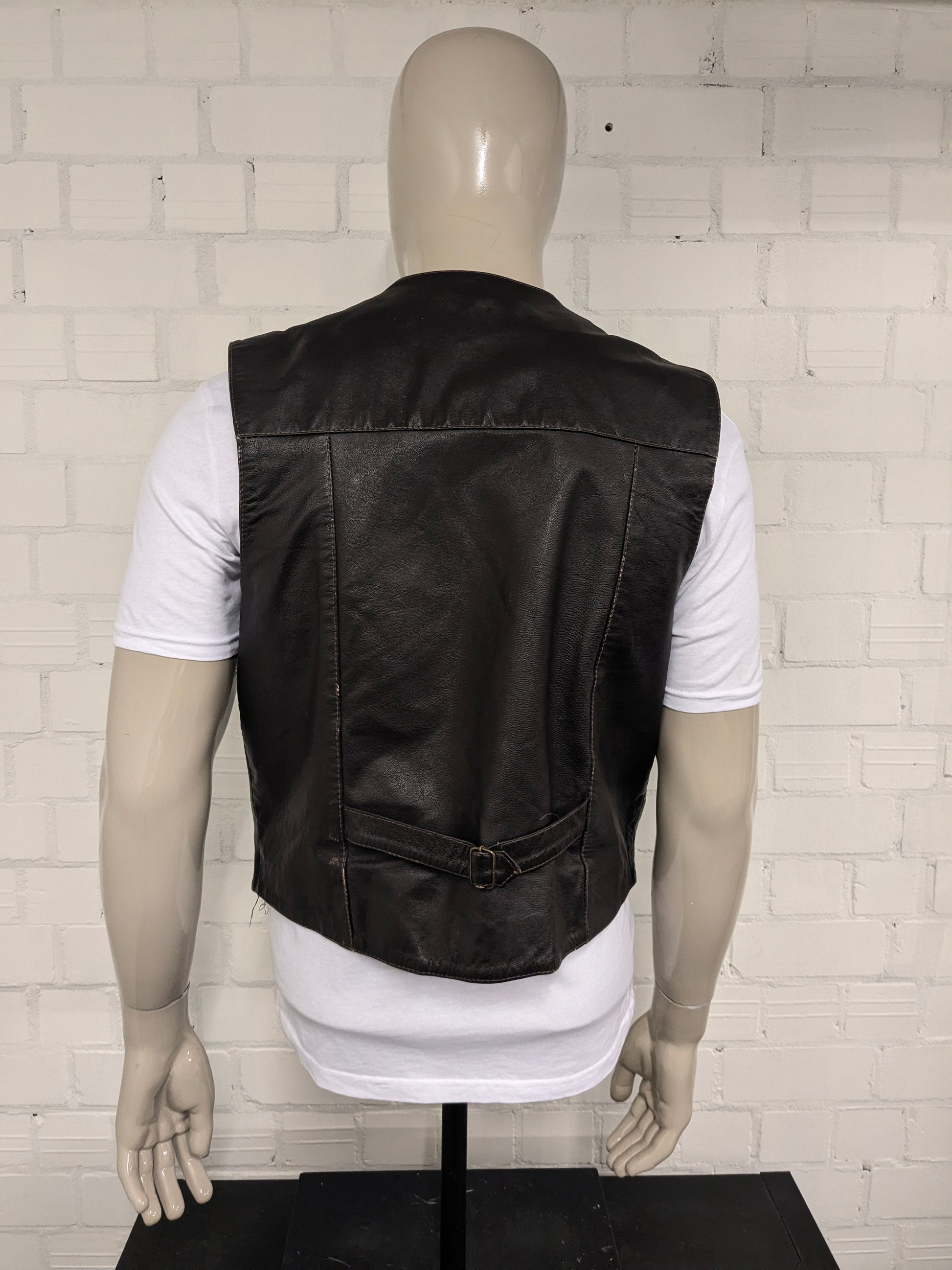 Chaleco vintage de cuero Berto Lucci con cremallera con cremallera. Color marrón oscuro. Tamaño L.