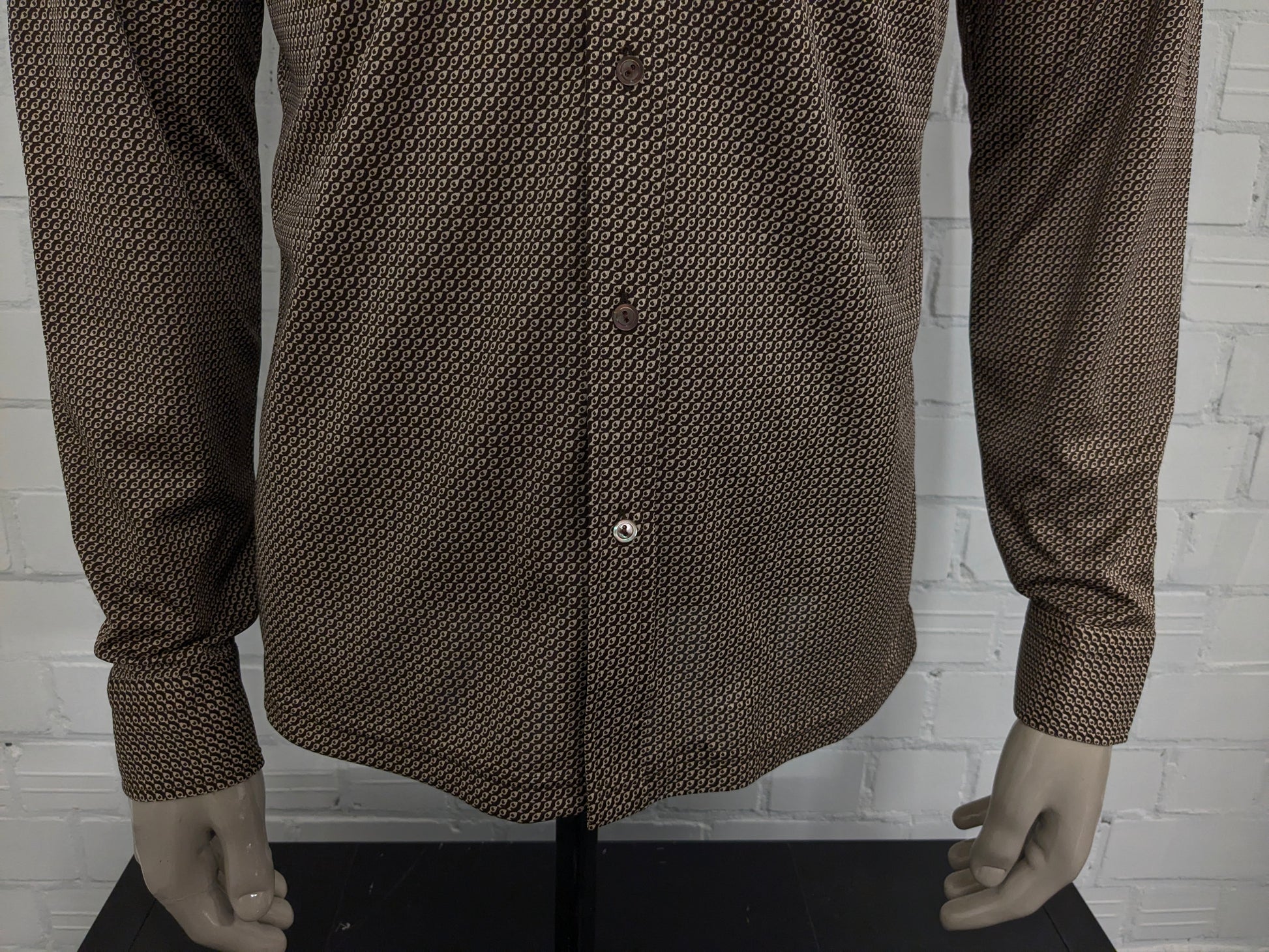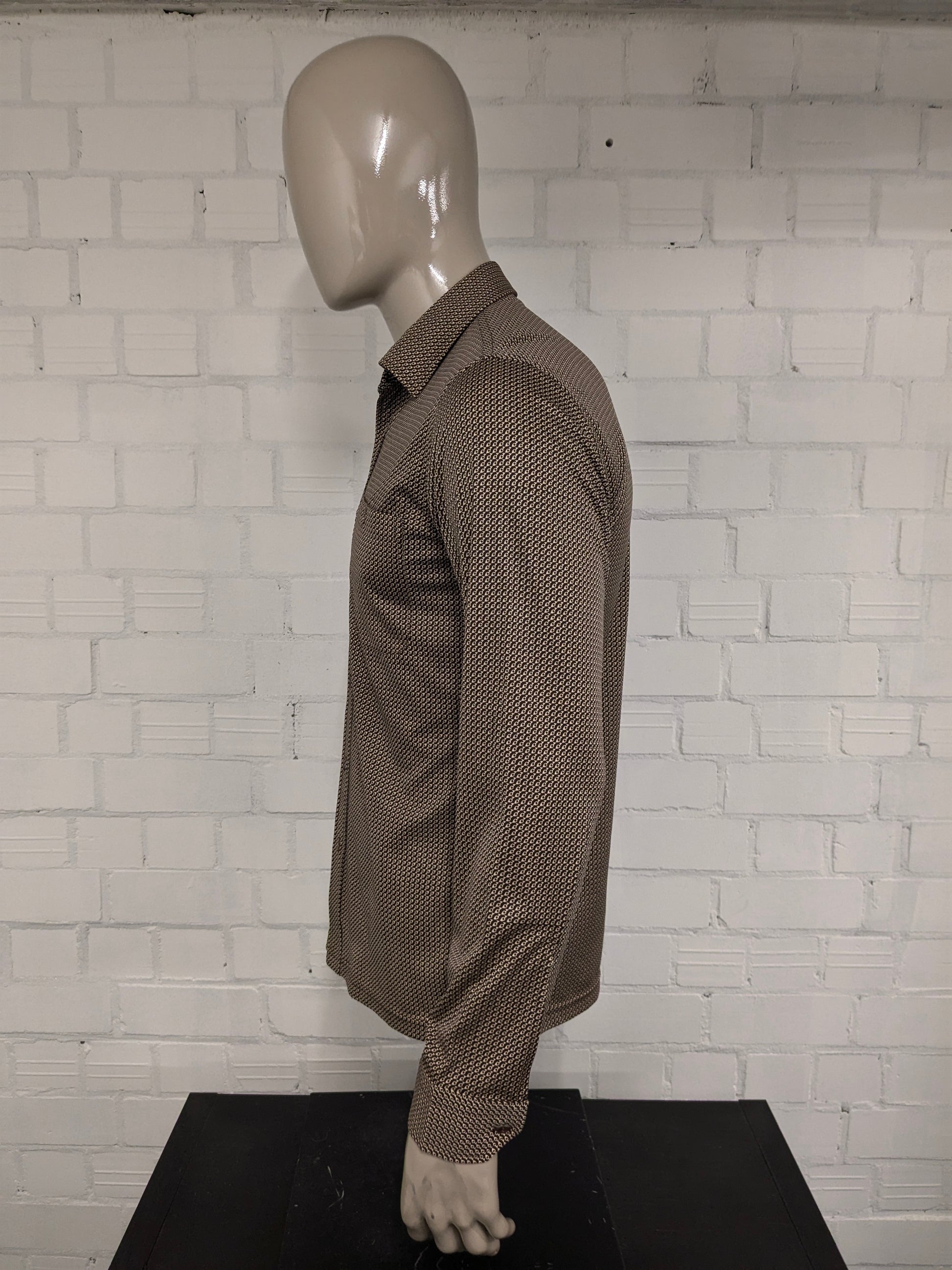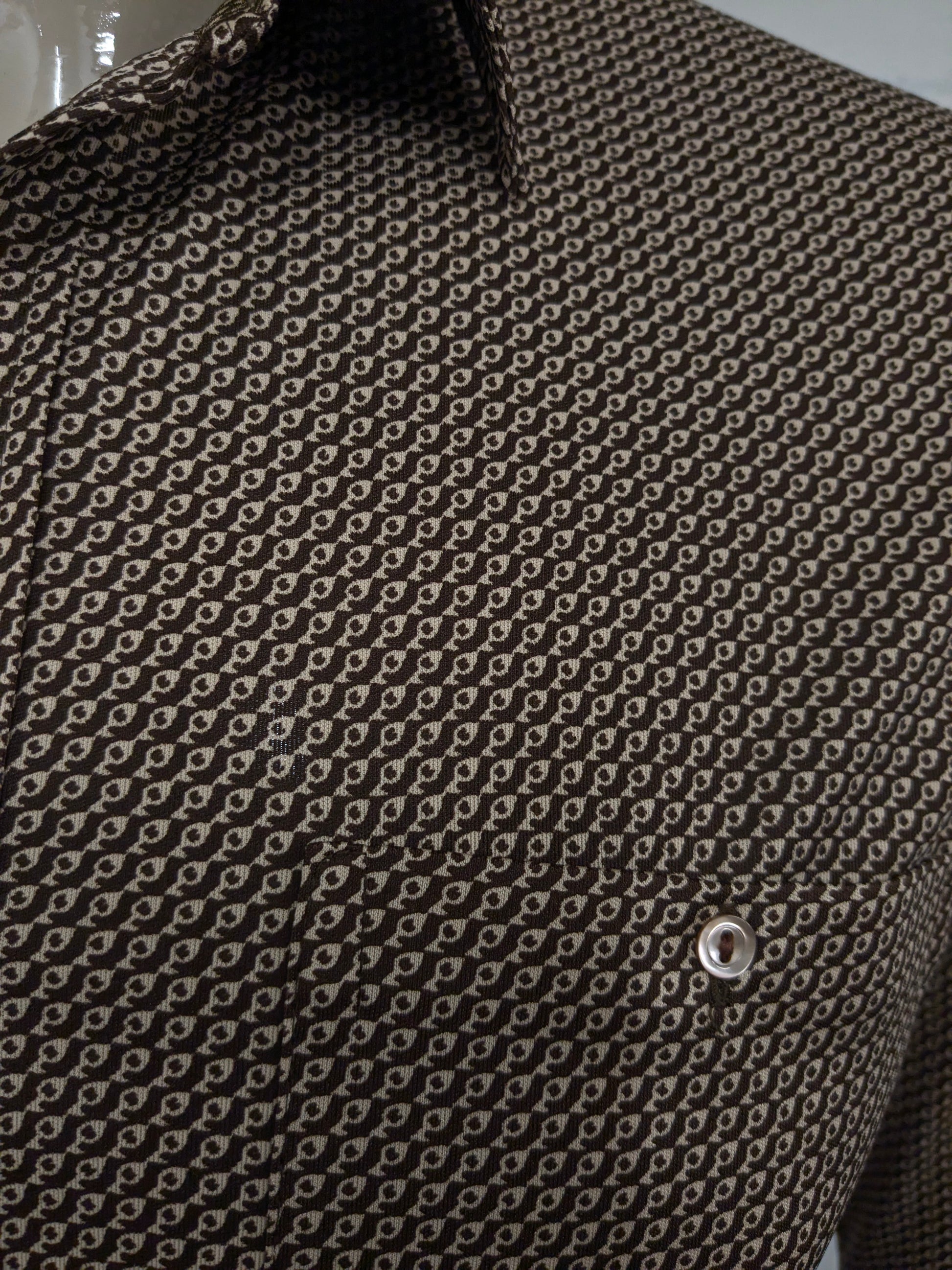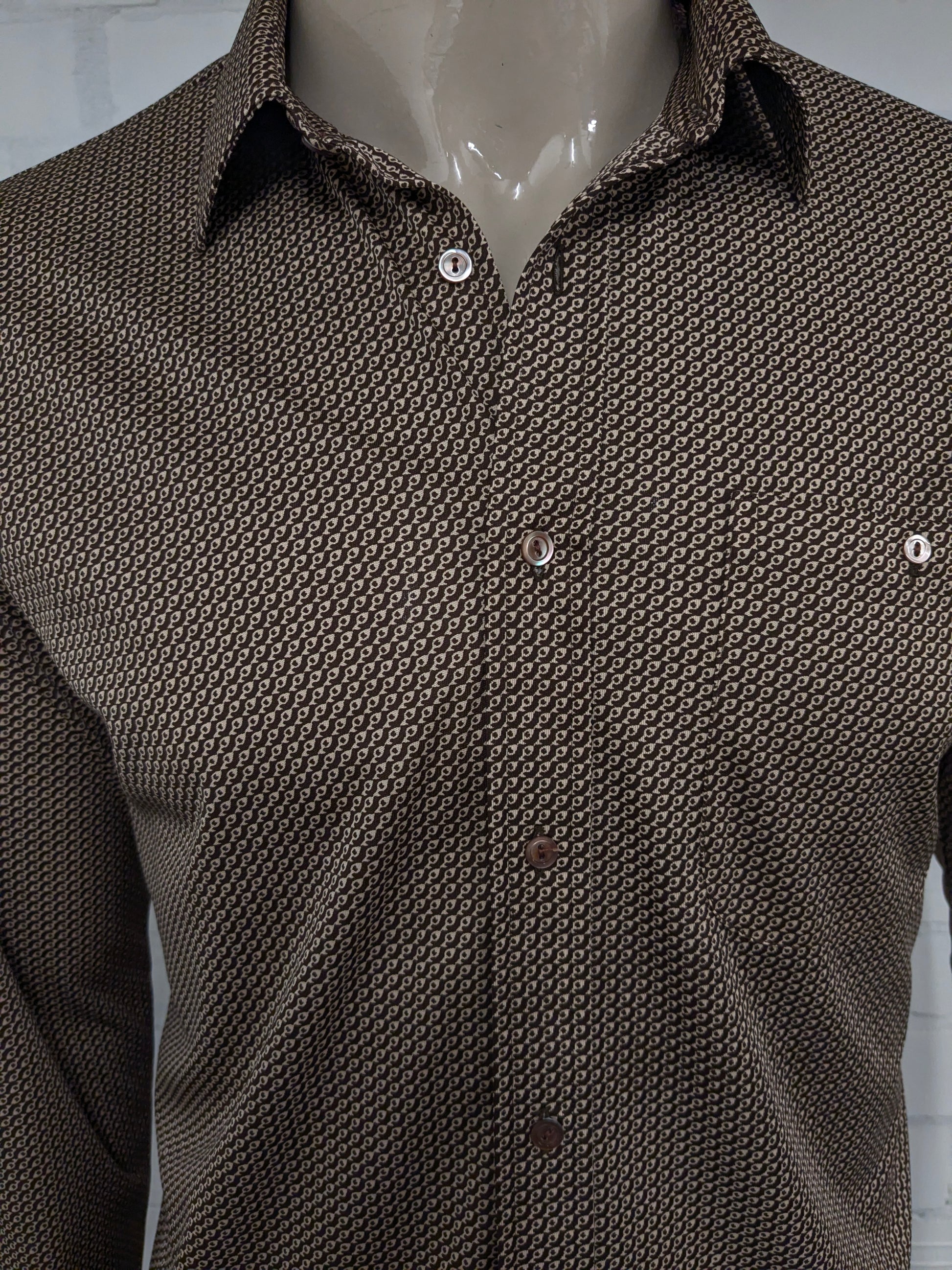 Camisa Vintage Jordi. Impresión beige marrón. Tamaño M. estiramiento.