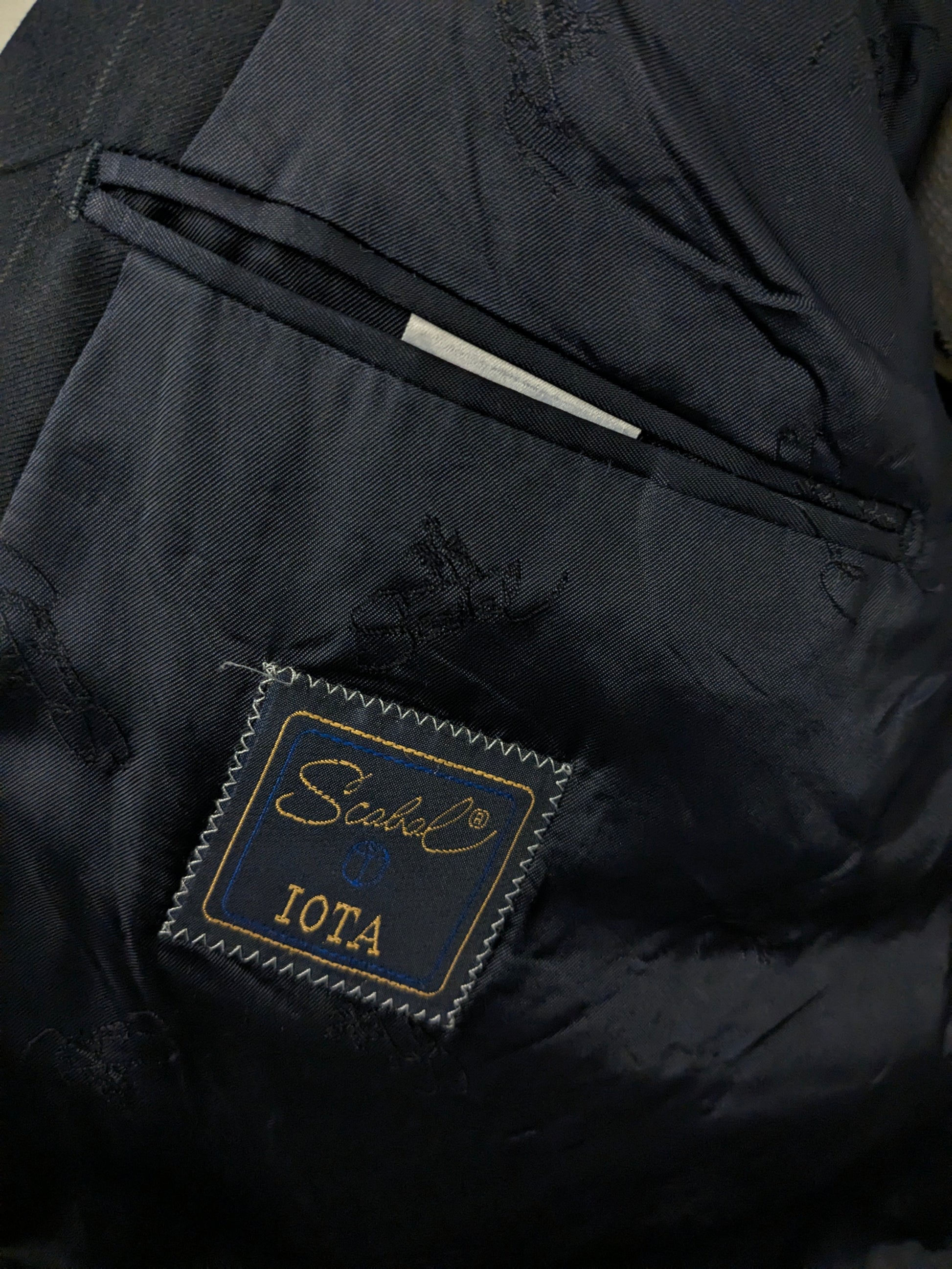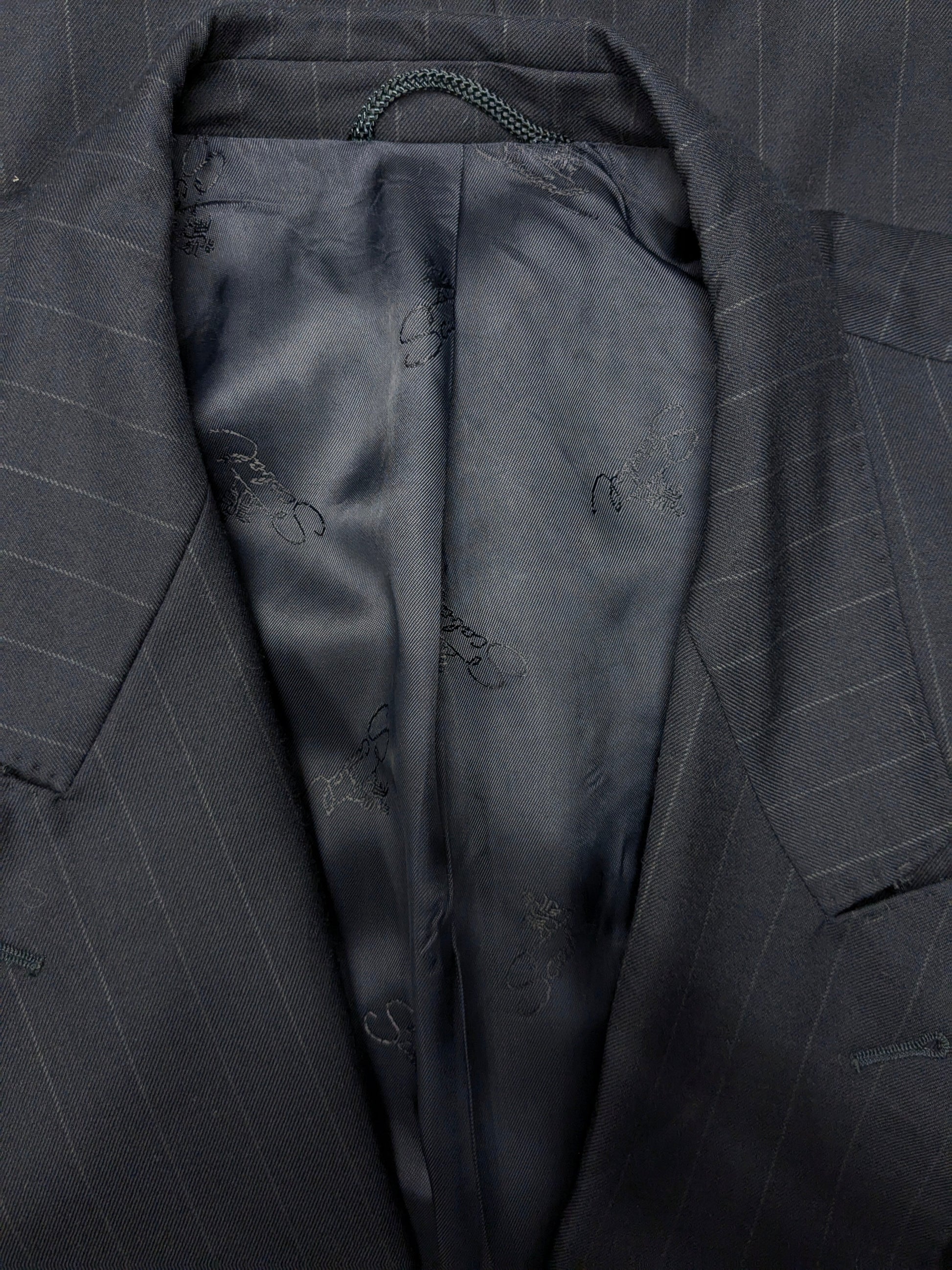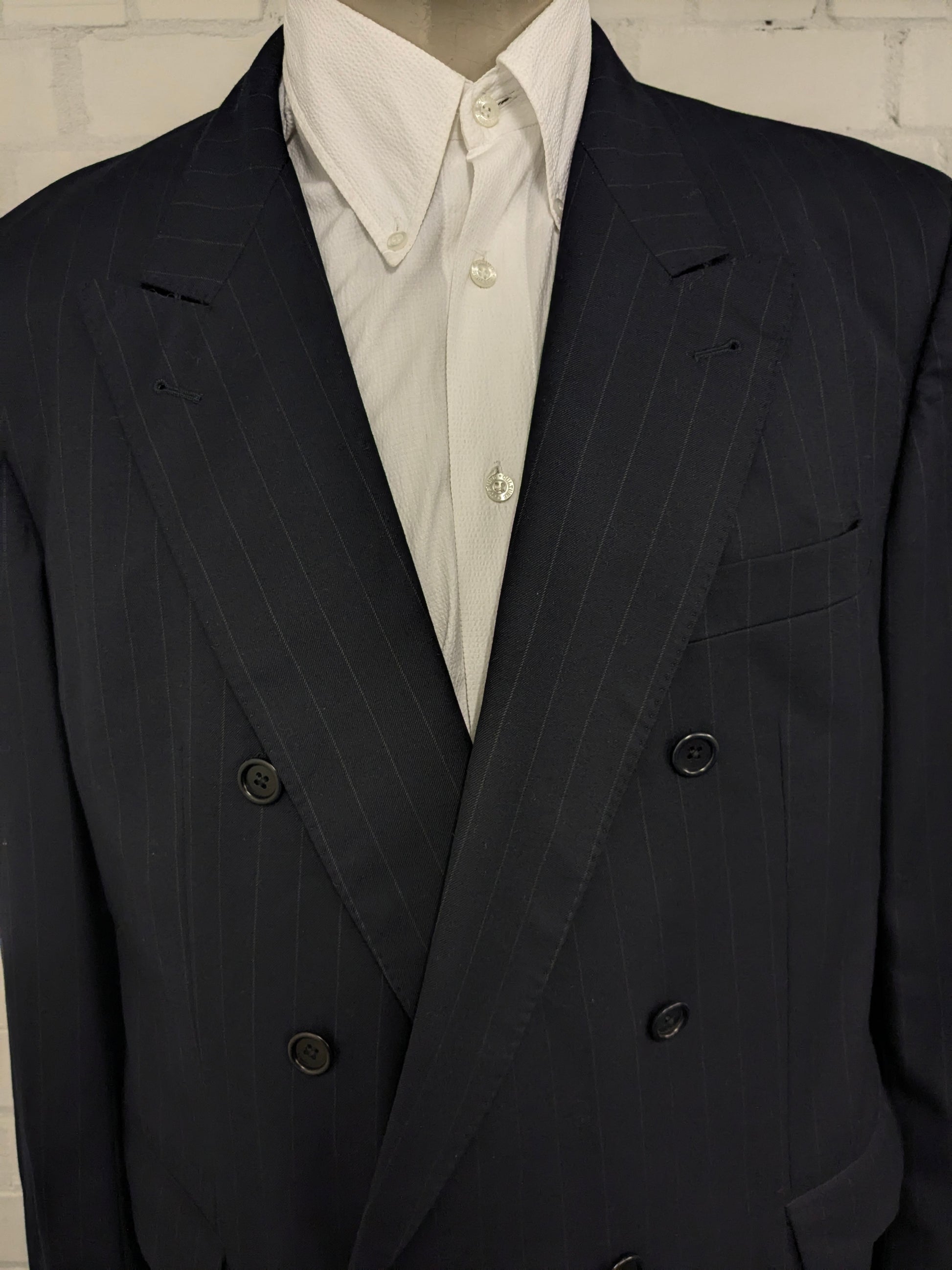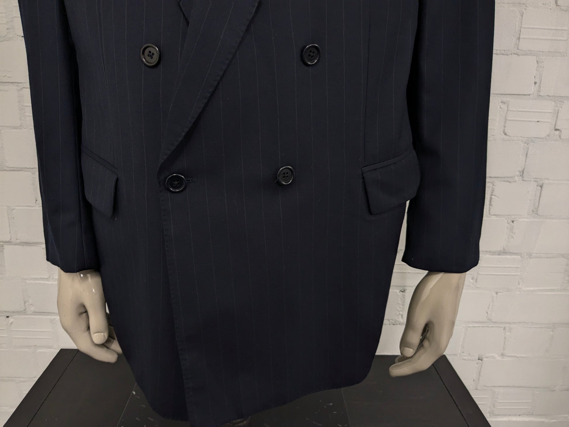 Chaqueta de doble pecho de lana de lana de scabal vintage. Azul oscuro a rayas. Tamaño 28 (56 / xl)