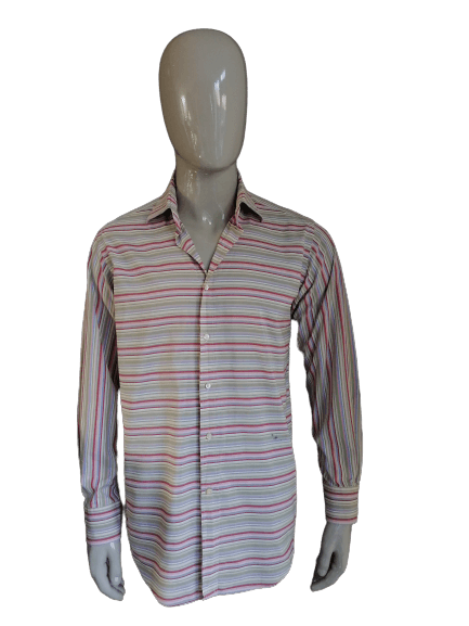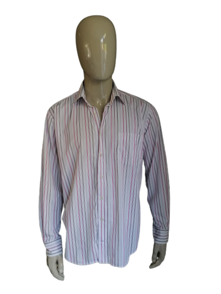 Camisa de Mantray. Rayas azules grises rojas a rayas. Tamaño XXXL / 3XL.