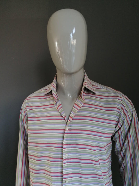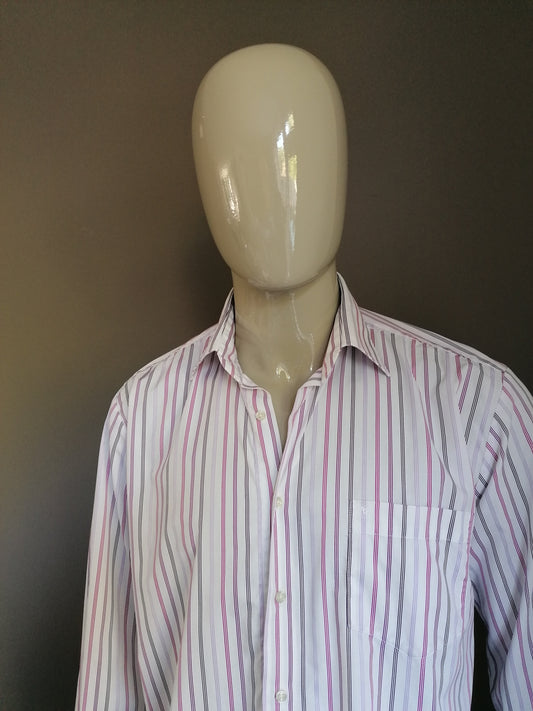 Camisa Jaguar. Blanco púrpura rayado. Tamaño 40 / m / l