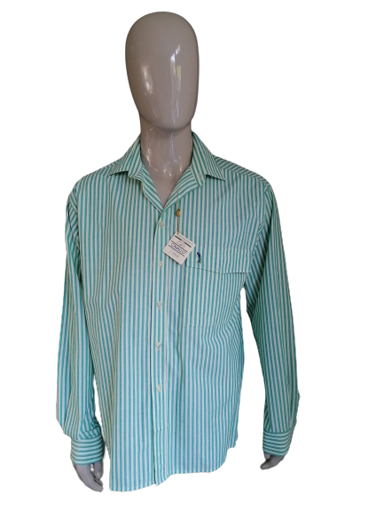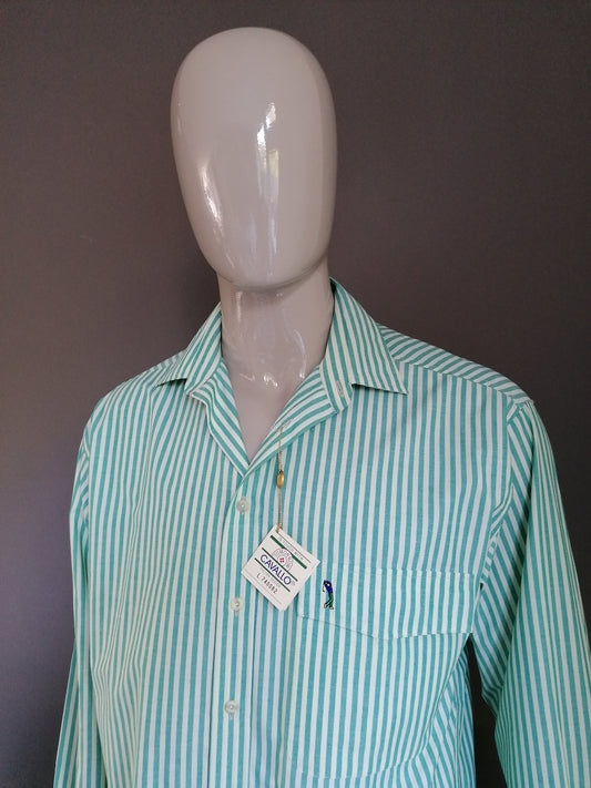 Camisa Adán Friday. Blanco verde rayado. Tamaño 43 / XL