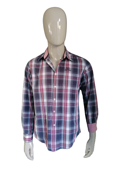 Camisa de ledub. Blanco rosa a cuadros. Talla 41 / L