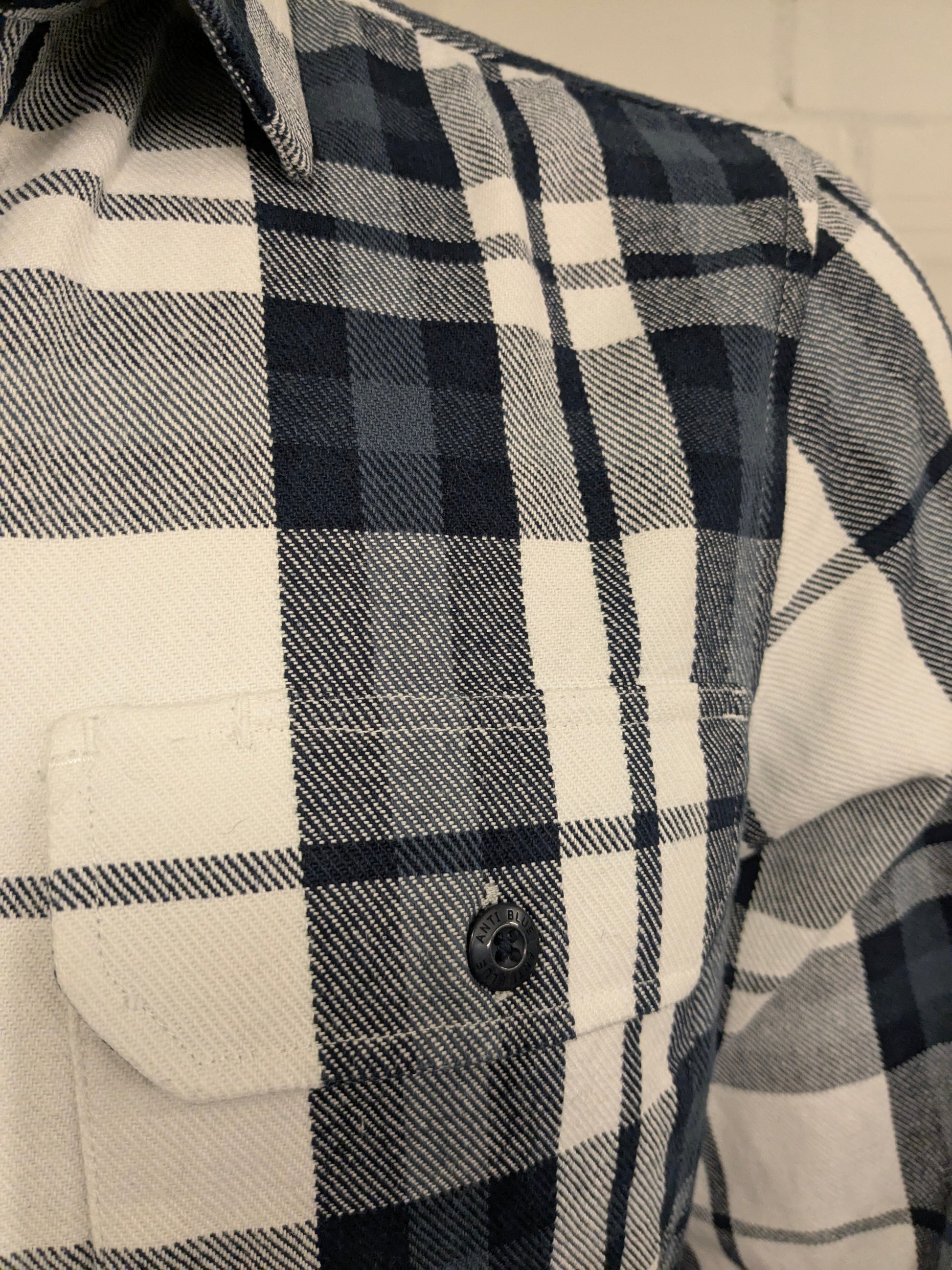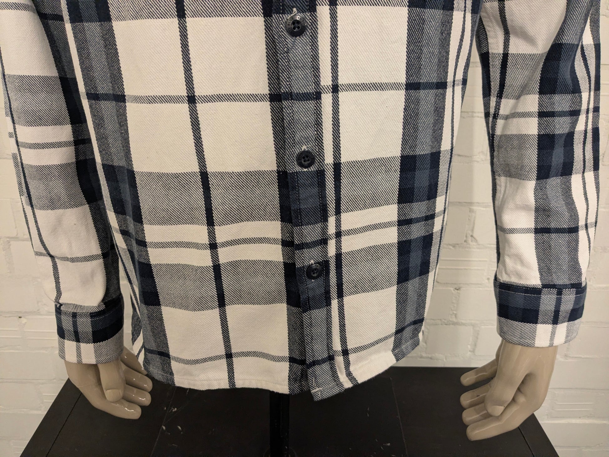 Anti Blue Flanellen overhemd. Wit Blauw geruit. Maat XL.