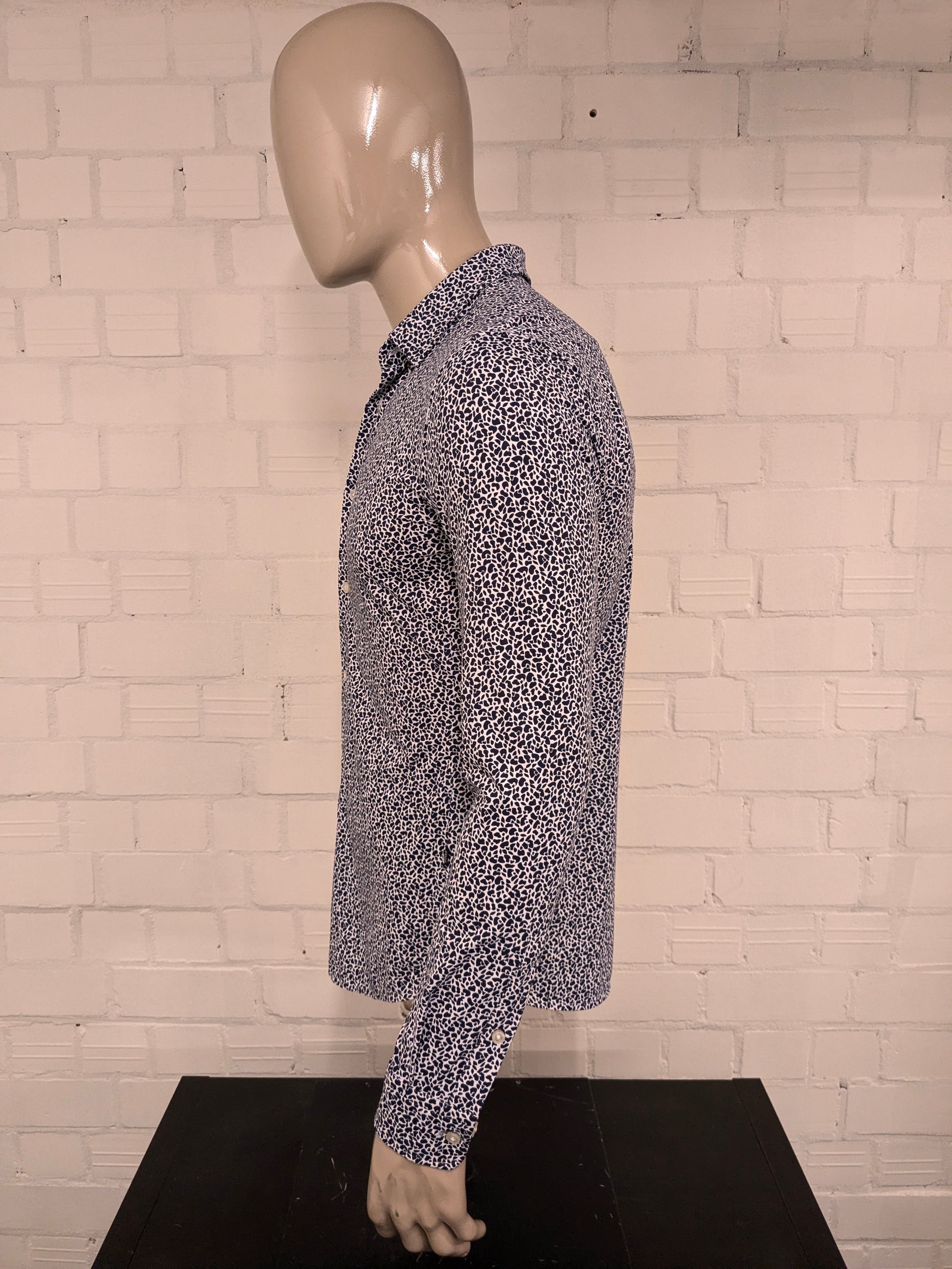 Camisa Boss Hugo Boss. Estampado azul blanco. Talla M. Corte ajustado/elástico.