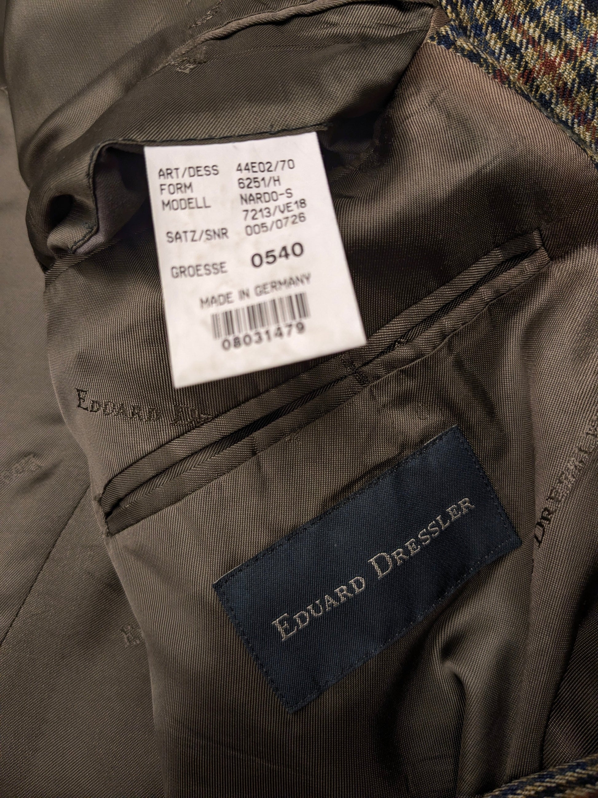 Eduard Dressler colbert. Groen Bruin Blauw Zwart geblokt. Maat 54 / L.
