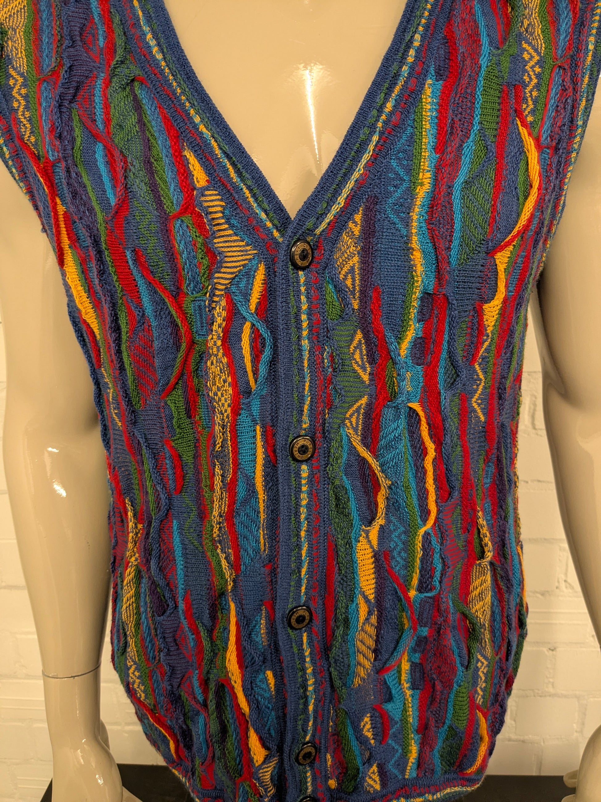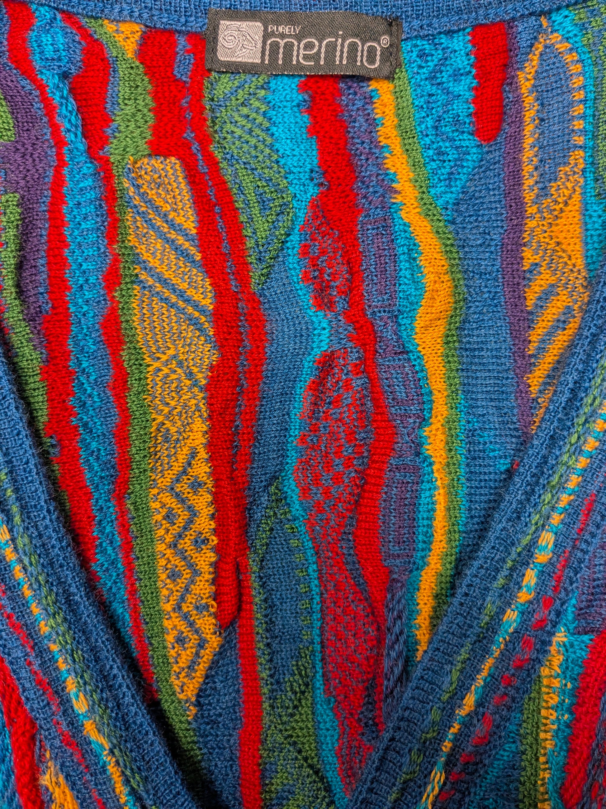 Purely Merino Wollen spencer. Gaaf Carlo Carlucci Look / gekleurd motief. Maat XL.