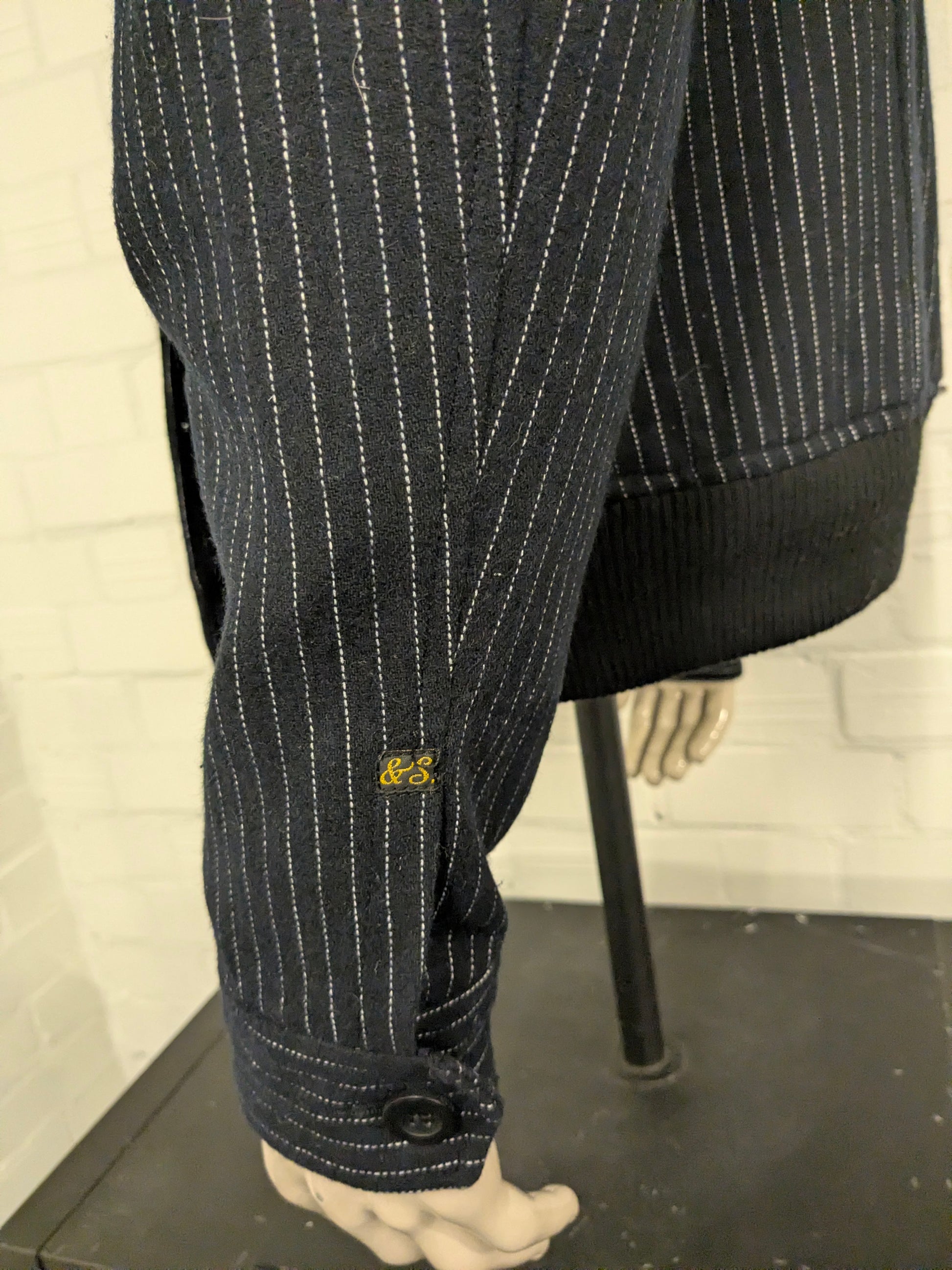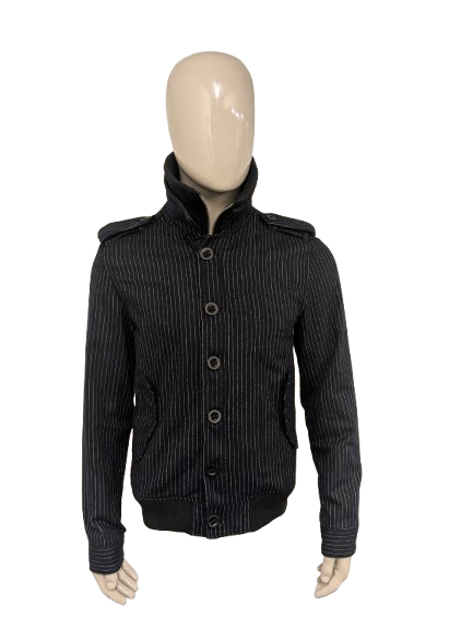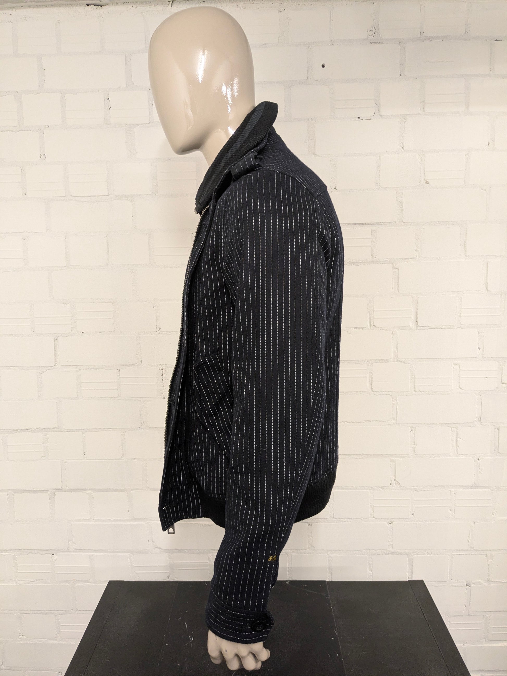 Scotch & Soda tussen jas met dubbele rits. Zwart Wit gestreept. Maat L.