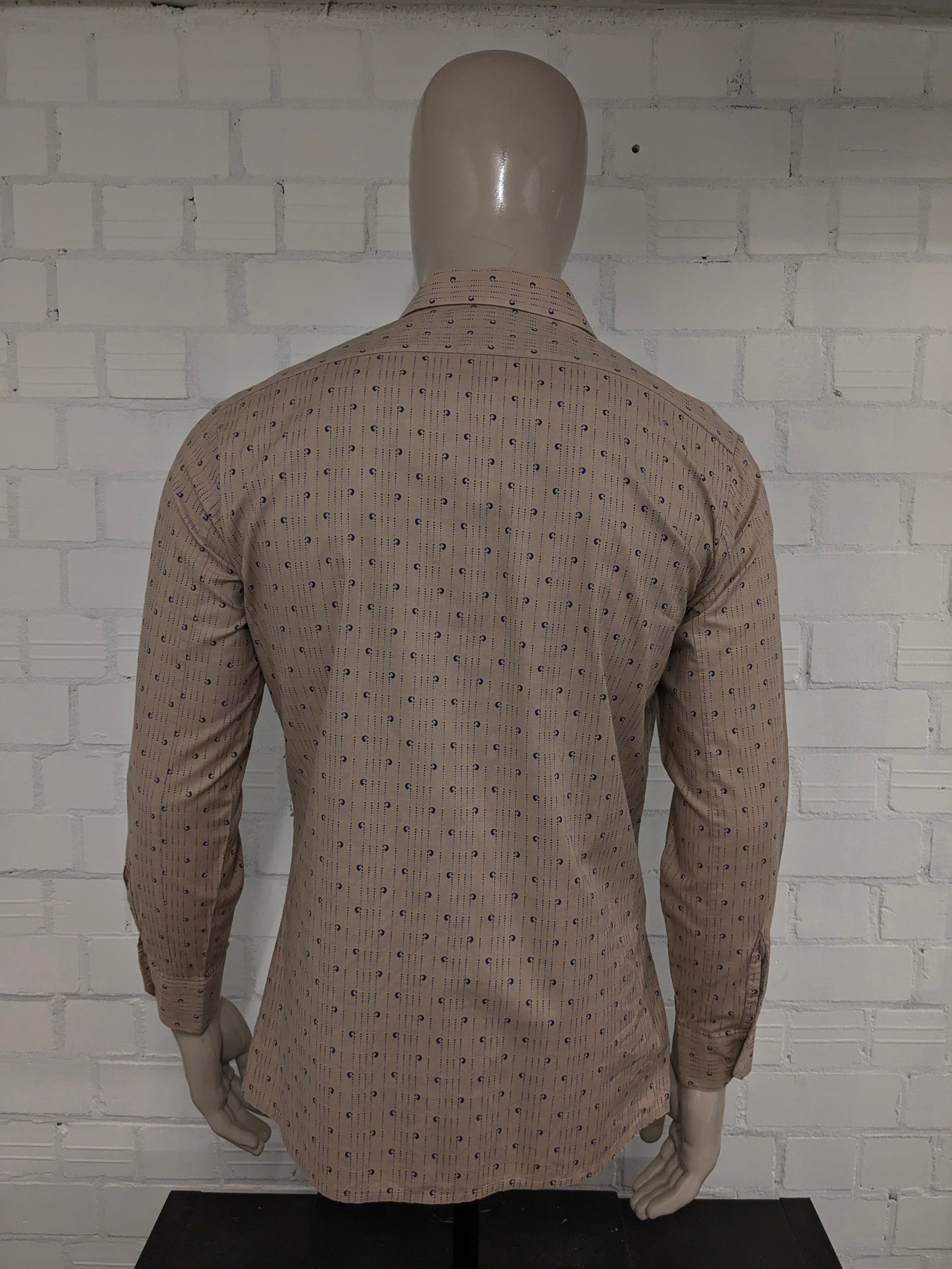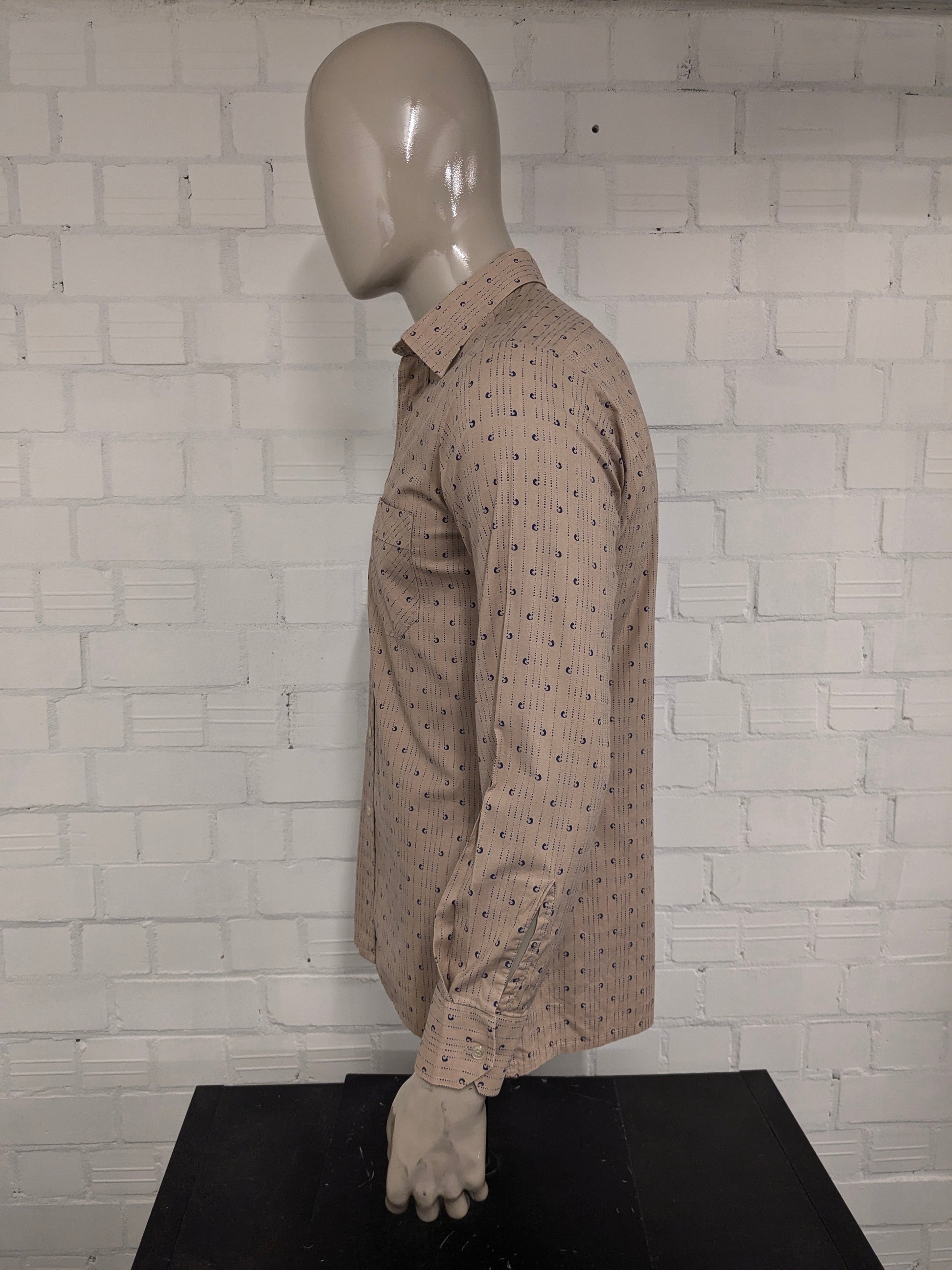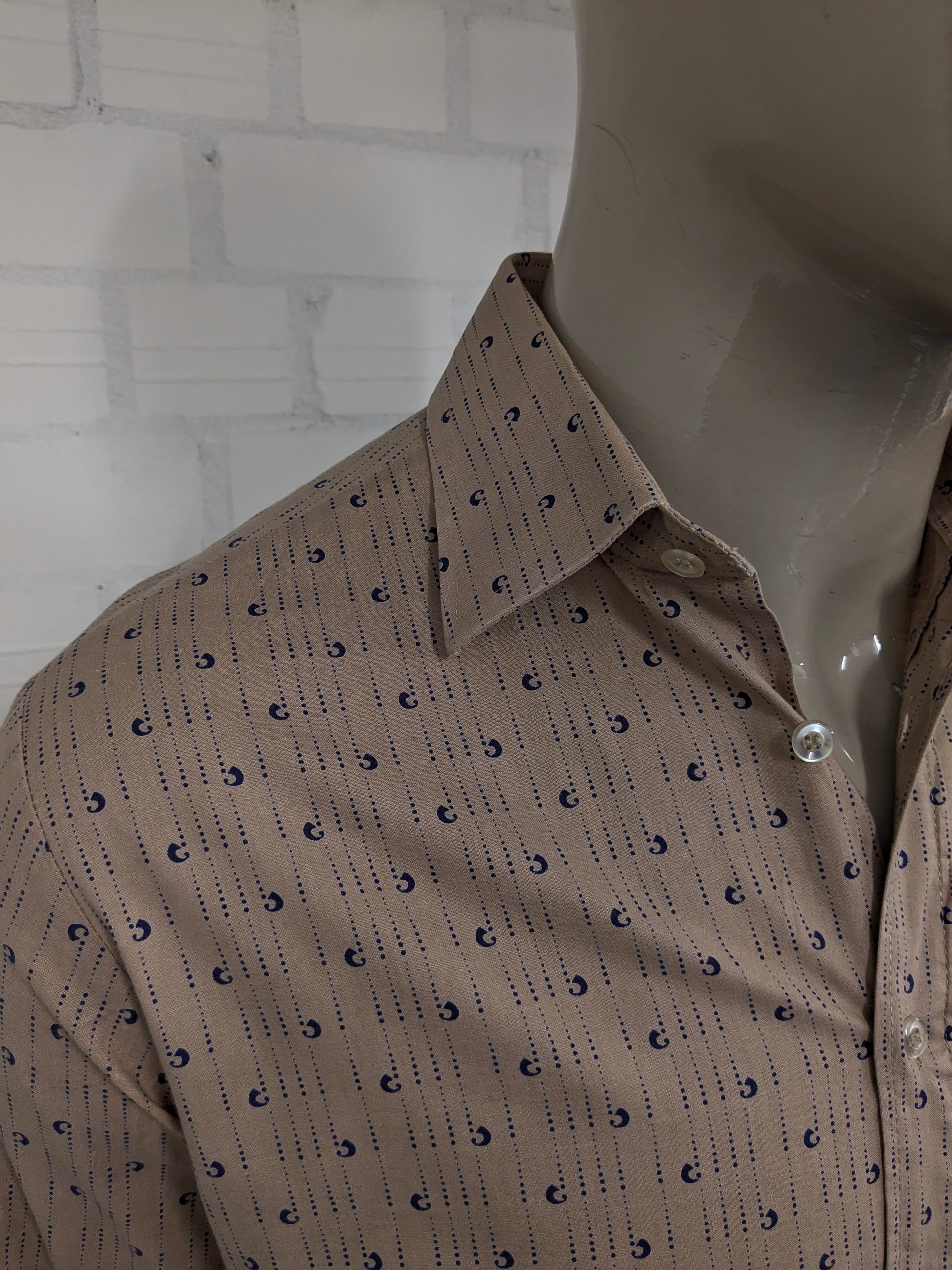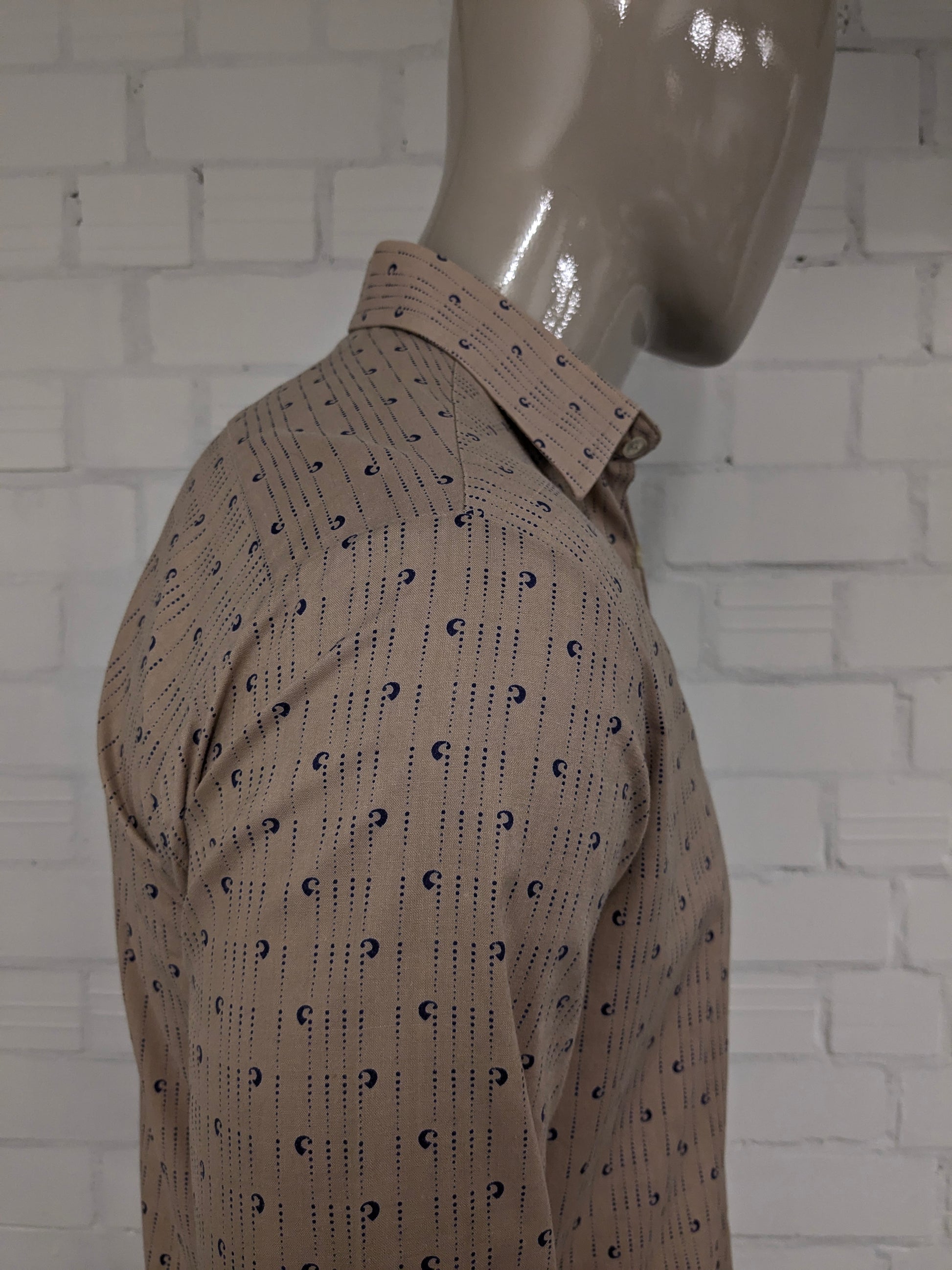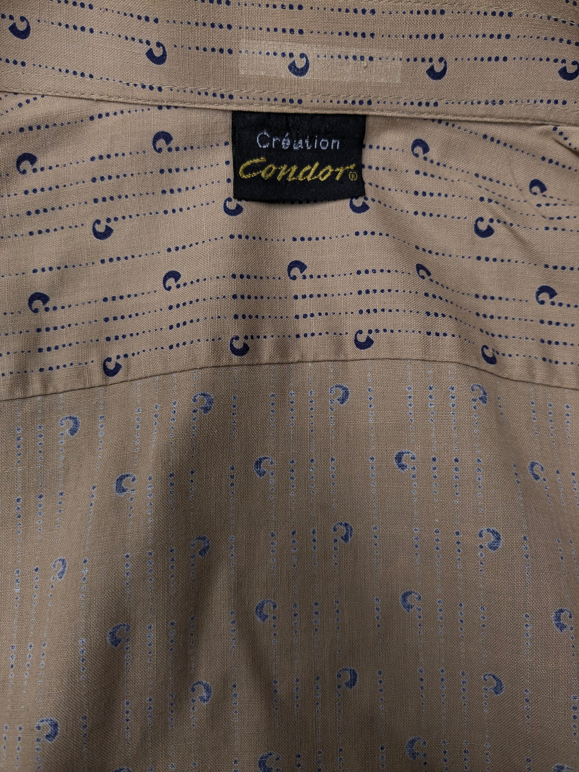 Camisa Cóndor vintage de los años 70. Estampado azul marrón. Talla L.