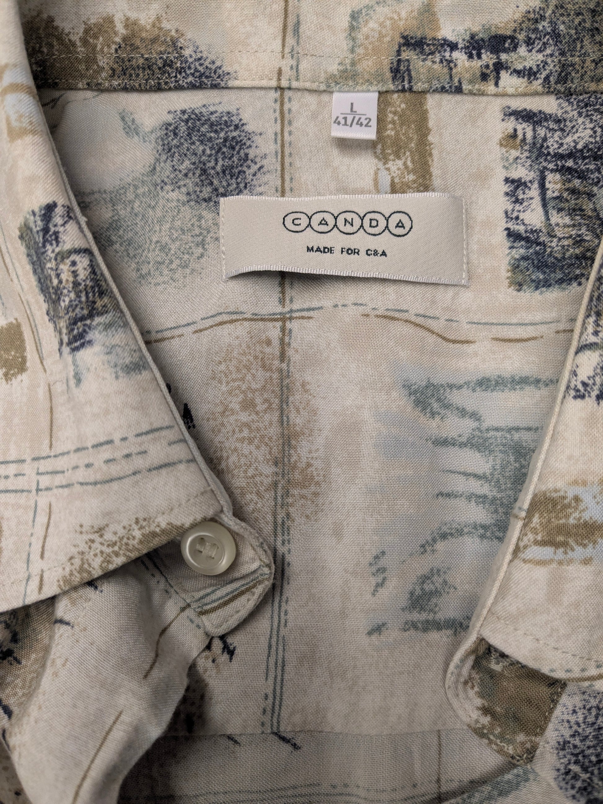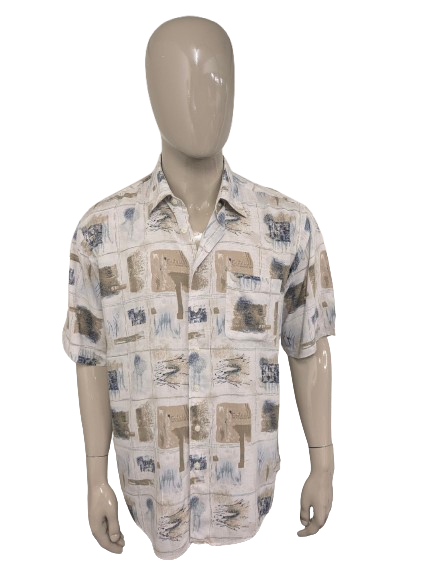 Vintage Cela Cela Cela Cela Manga corta. Impresión azul verde beige. Tamaño xl.