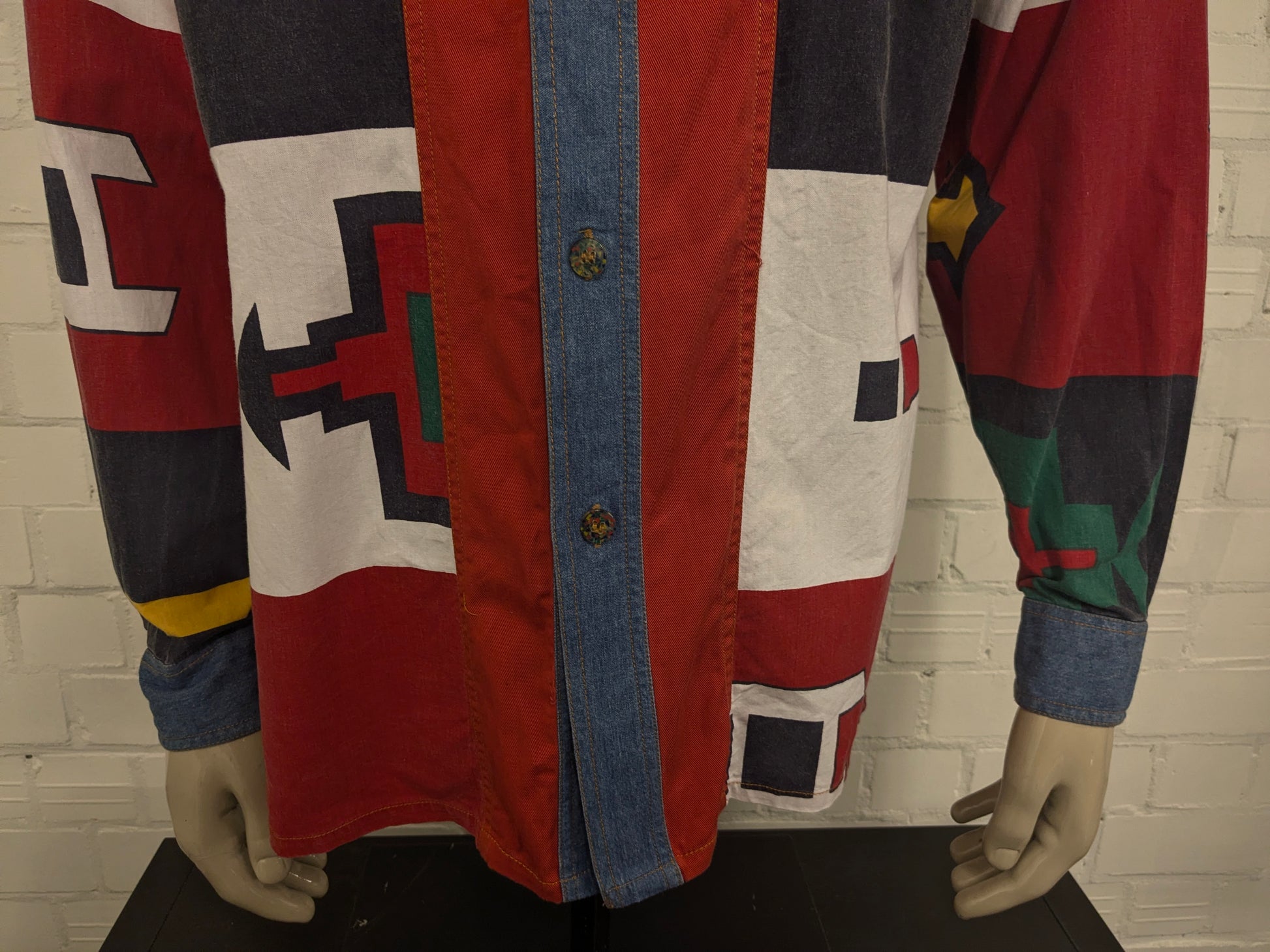 Vintage Arizona jeans overhemd. Gekleurde print met gekleurde knopen. Maat XL.