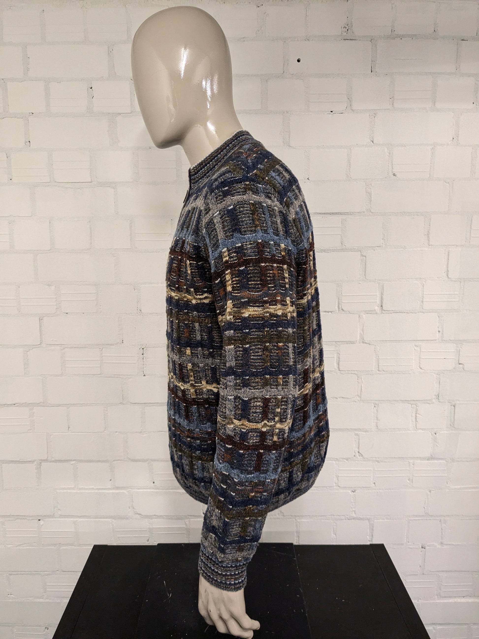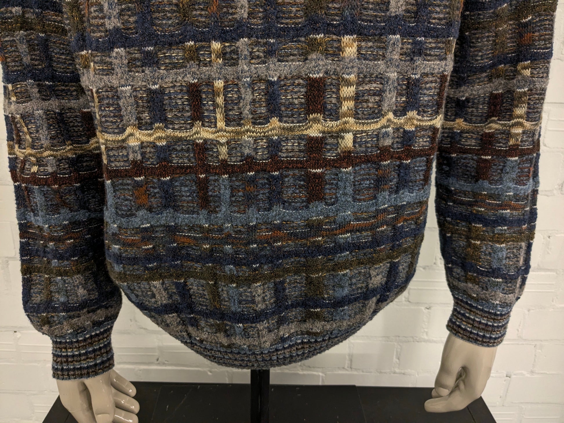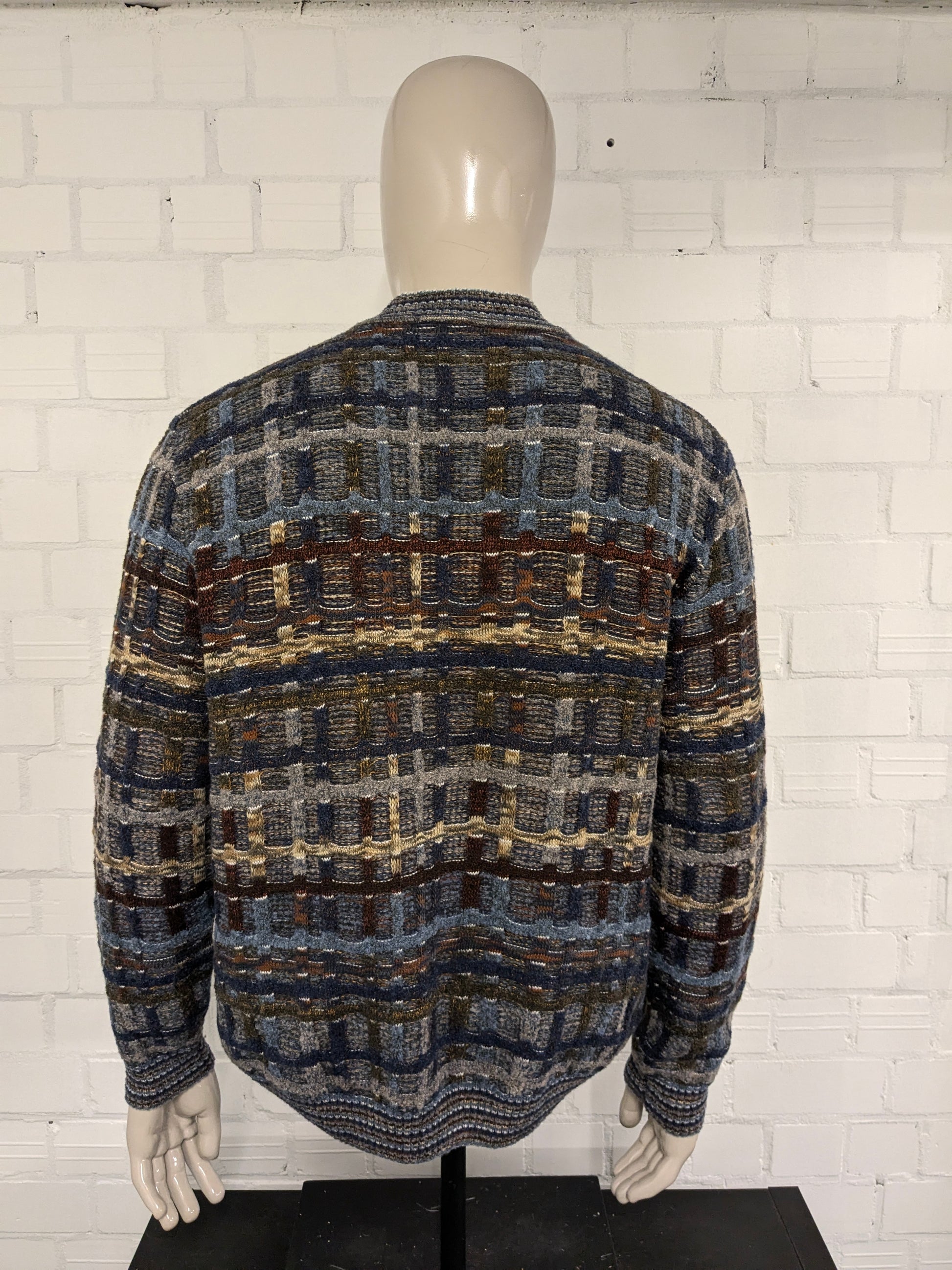 Suéter vintage de lana de botto con cremallera. Motín de color marrón verde gris azul. Tamaño xl. 60% de lana.