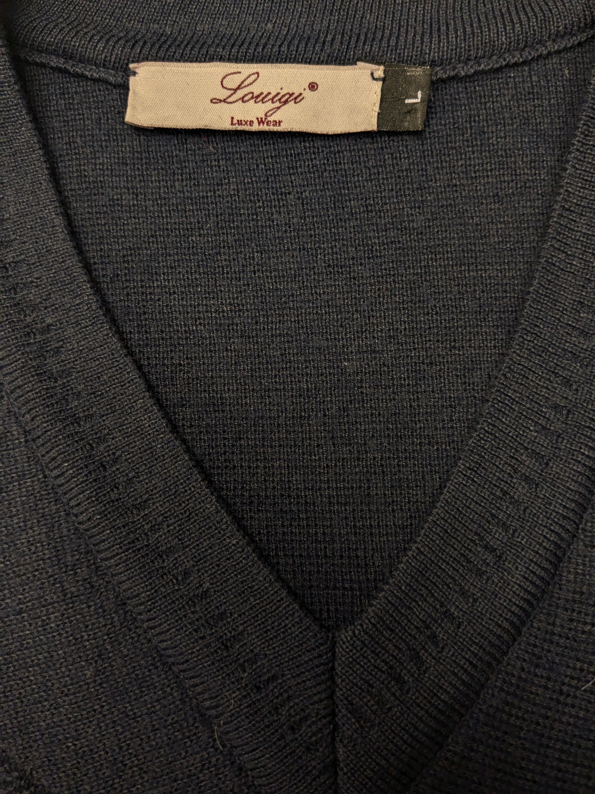 Suéter de lana de Luigi Luigi Luigi con cuello en V. Blue beige de color negro. Tamaño L. 50% de lana.