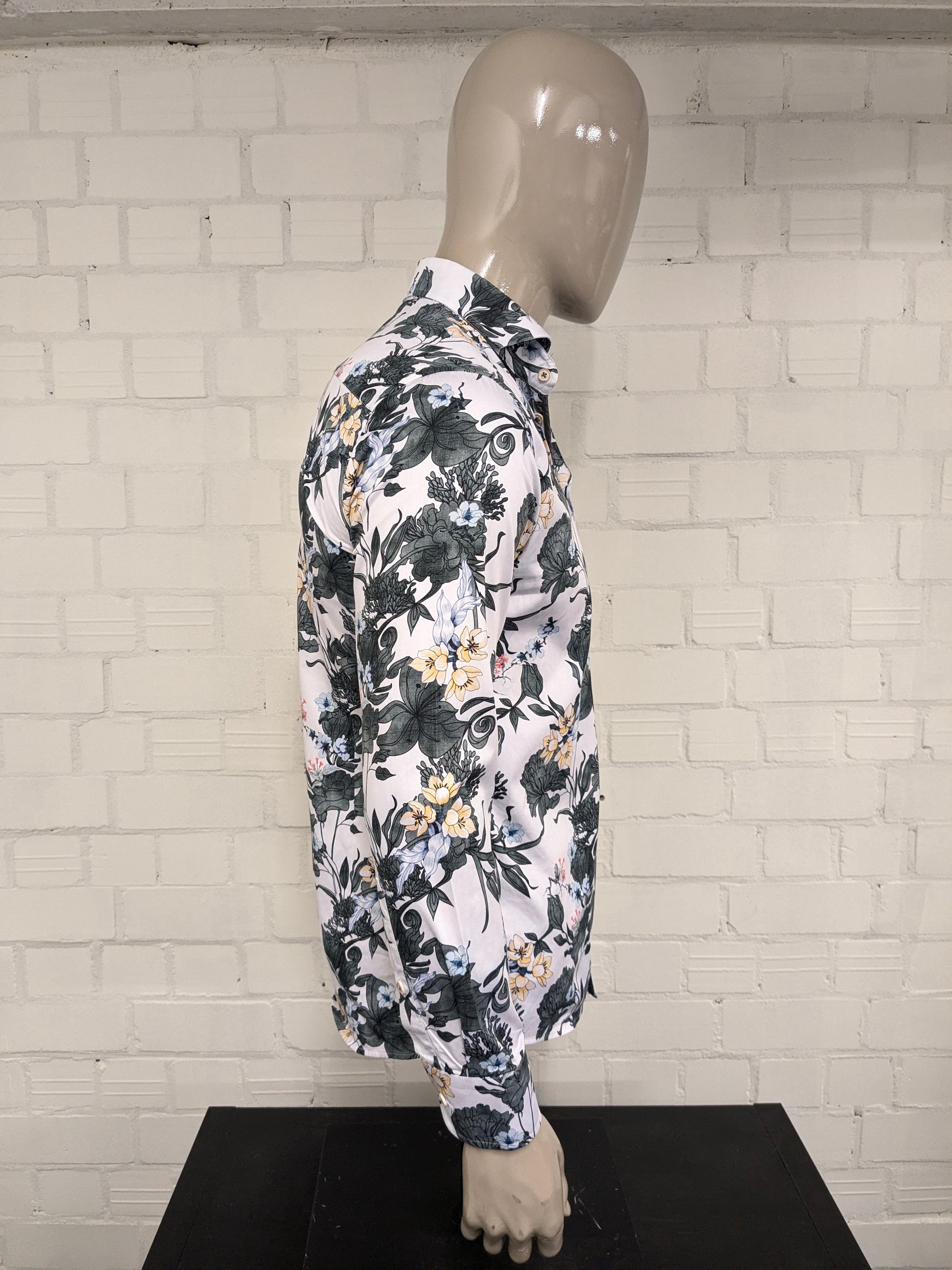WAM Classic overhemd. Groen Geel Rode bloemen print. Maat M. tailored fit.