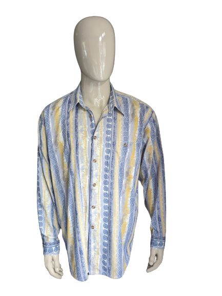 Chemise Viscose Angelo Litrico vintage des années 80/90. Impression bleu jaune. Taille XL.