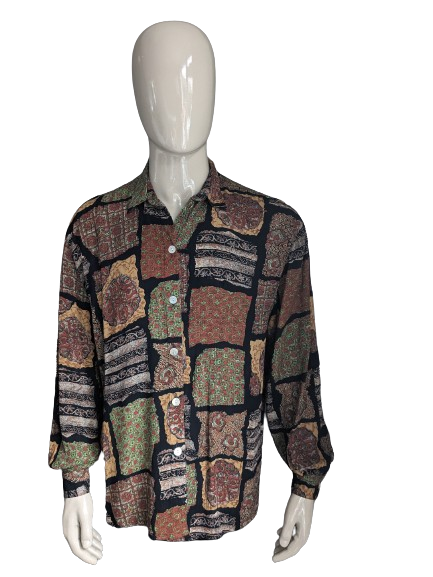 Chemise vintage Black Dolphin 80'x/90's. Imprimé Noir Orange Rouge. Taille XL.