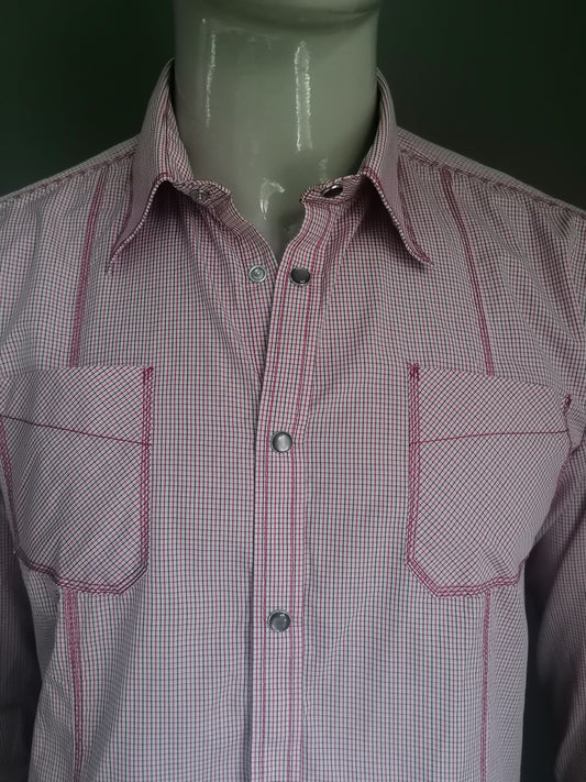Chemise sélectionnée avec goujons de presse. Bleu rouge vérifié. Taille xl.