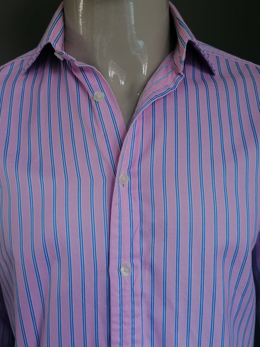 Chemise de fil et d'os. Blue blanc rose rayé. Taille 42 / L.