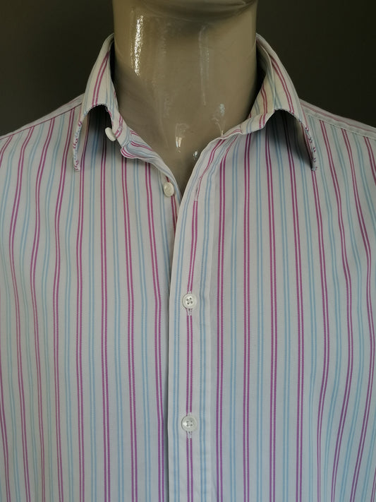Thomas Pink Shirt. Blanc bleu rose rayé. Taille 38 / M. Type de nœud manchette.