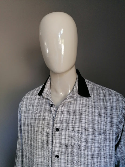 Chemise Vintage Ely. Blanc Blanc Black Checkered. Taille L.