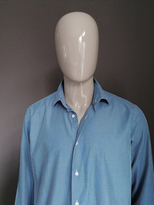 Haut Shirt. Blanc Blanc rayé. Taille 45/46 / xxl. Ajustement moderne.