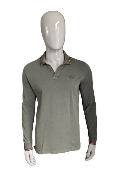 pull polo en laine vintage. Couleur vert gris rouge. Taille 2XL/XXL.
