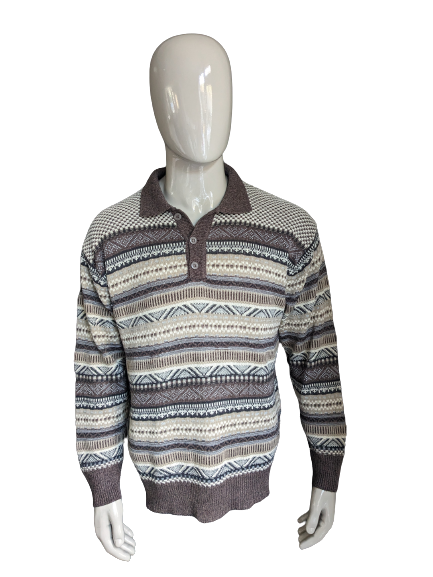 Pull Polo Armand Thiery vintage. Beige lila bleu orange coloré. Taille L.