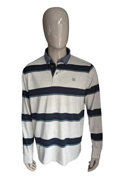 Pull polo fin CDA vintage. Couleur Beige Gris Bleu. Taille XL.
