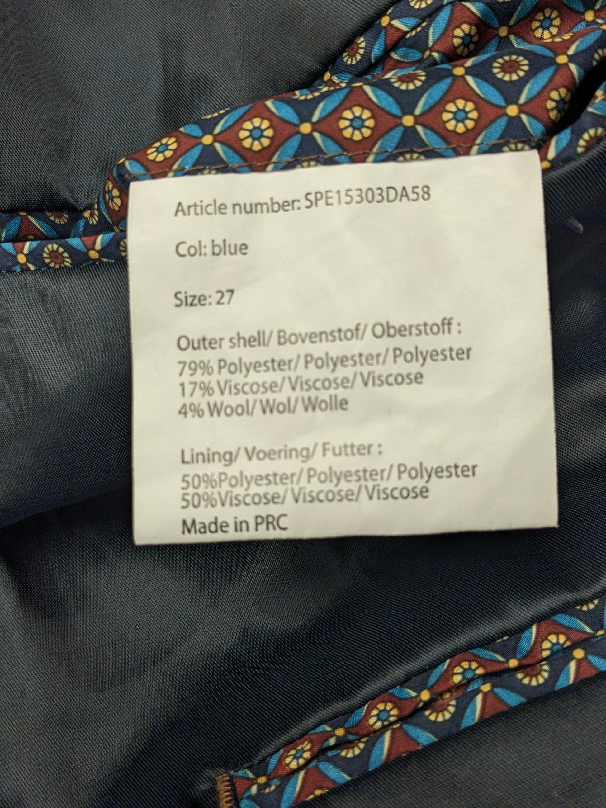 Bartlett colbert. Donker Blauw motief. Maat 27 (54 / L)