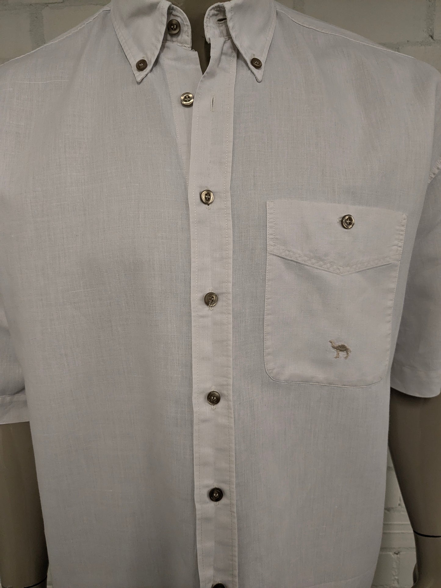 Chemise en lin à manches courtes. Blanc. Taille xl.