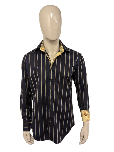 Circle of Gentlemen overhemd. Donker Blauw Bruin gestreept. Maat L.