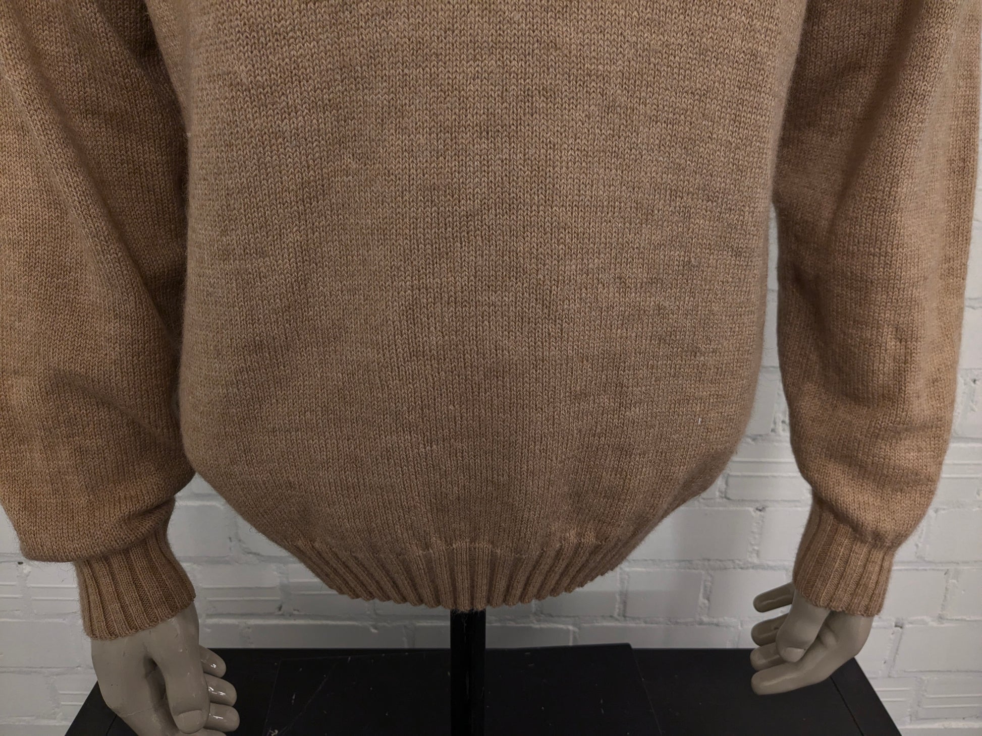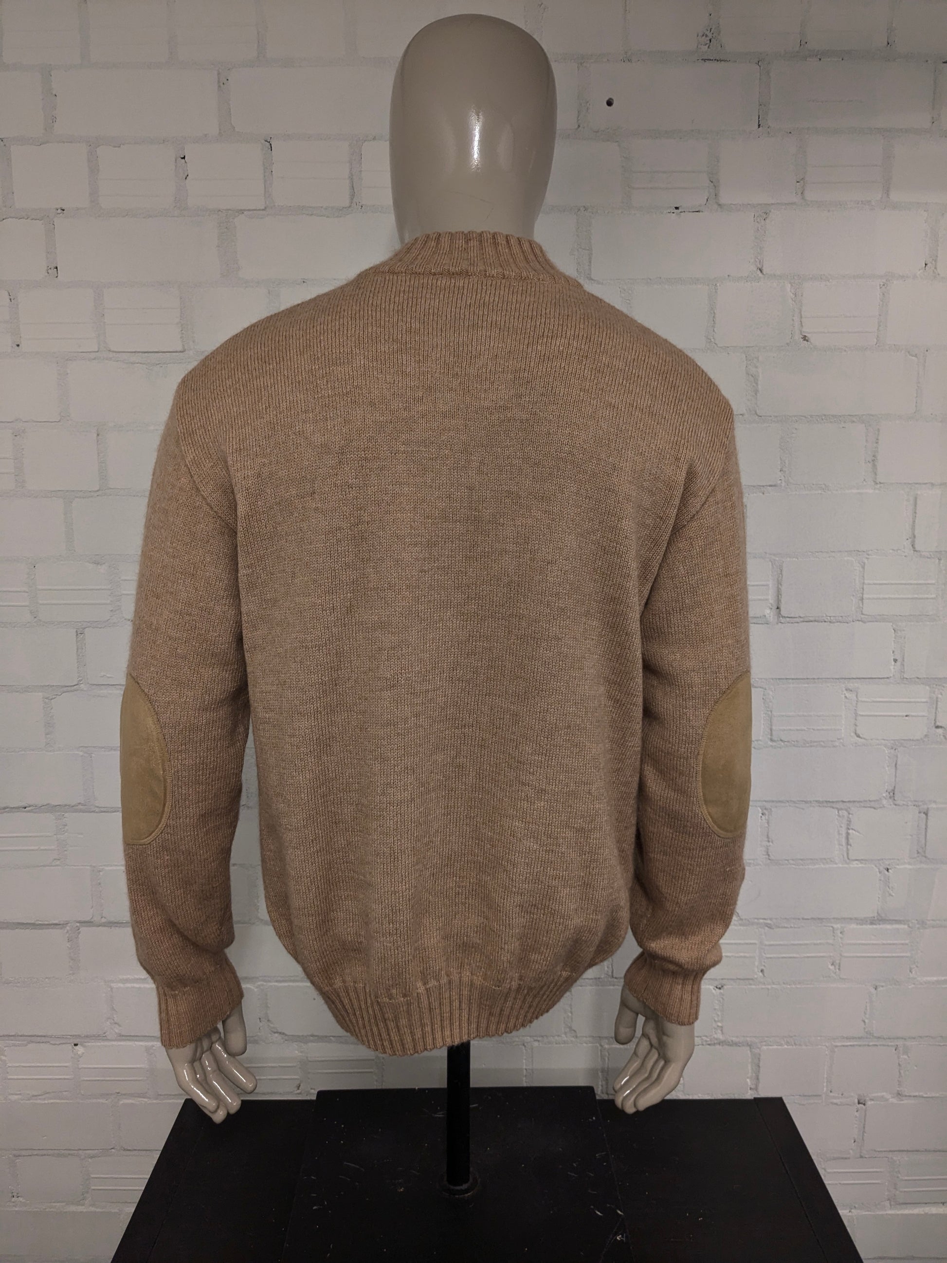 Pull en laine sans marque avec plaques à fermeture éclair et au coude. Brun clair mélangé. Taille L.