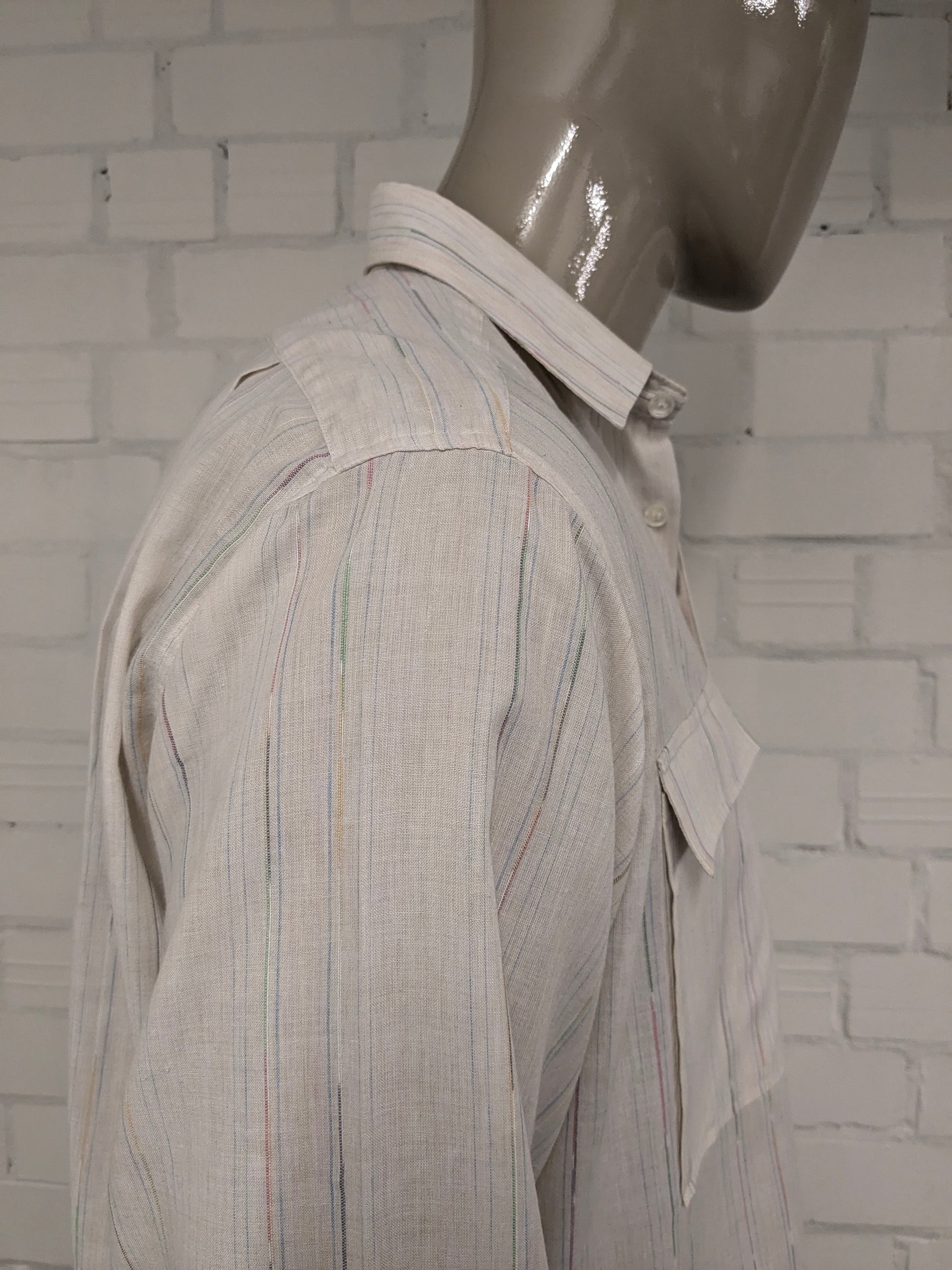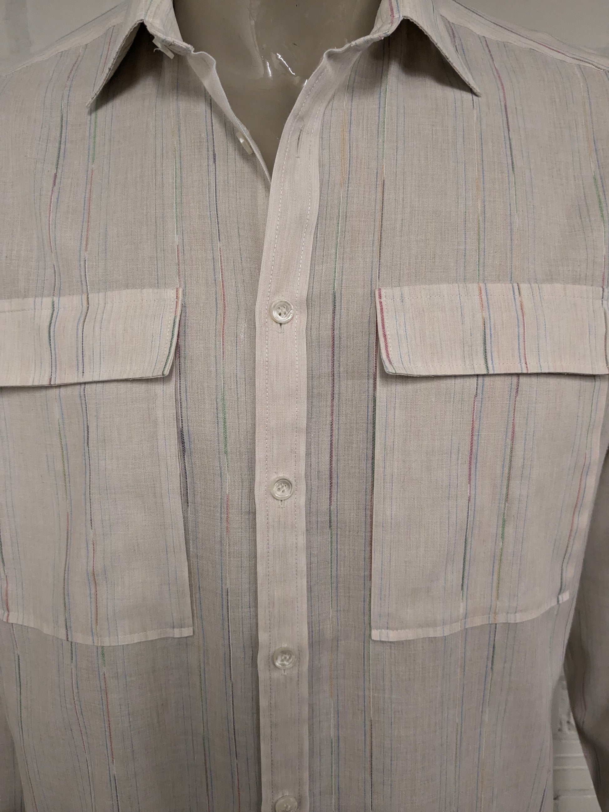 Chemise Einhorn vintage des années 70. Impression de couleur beige. Taille xl.
