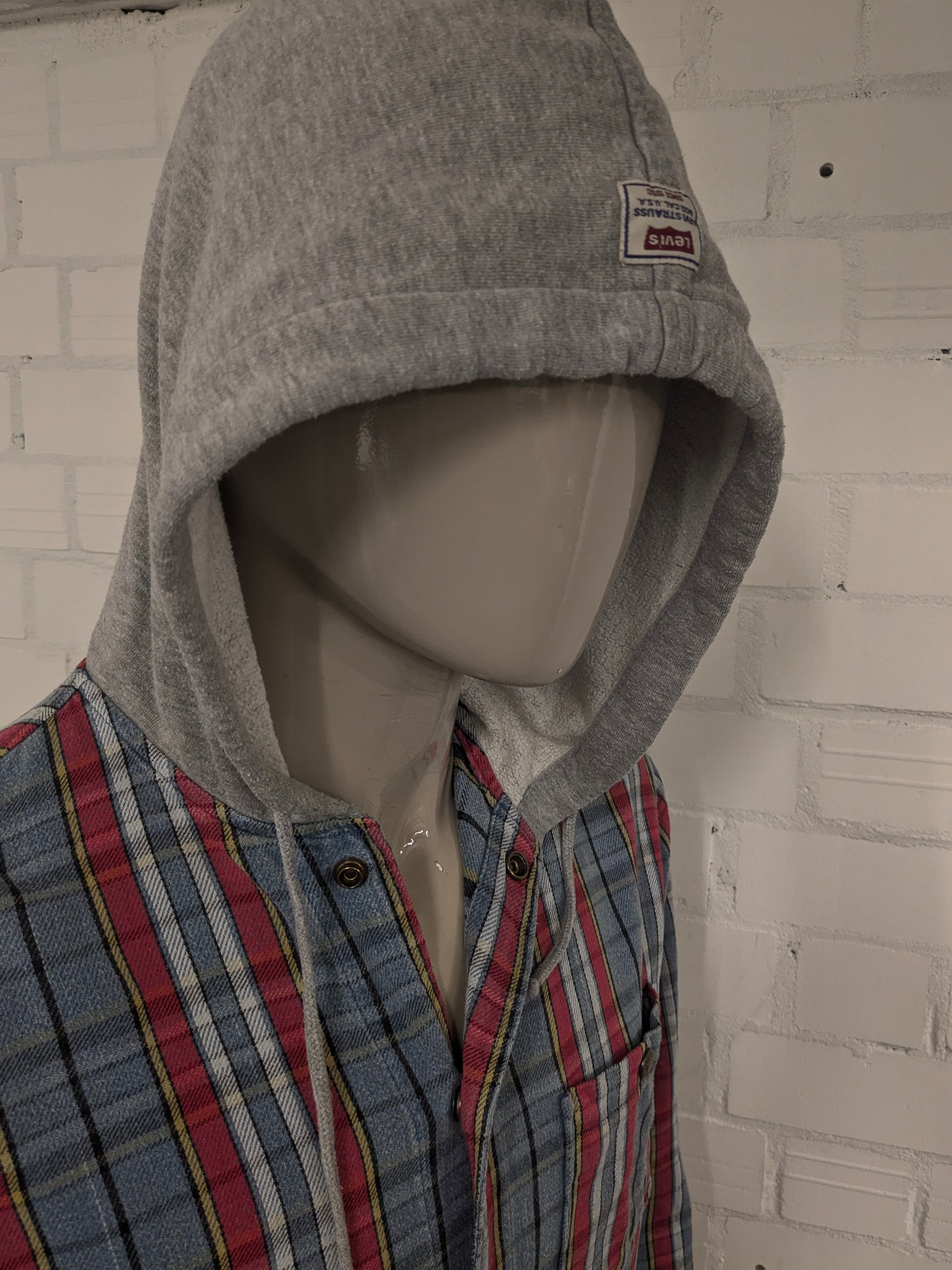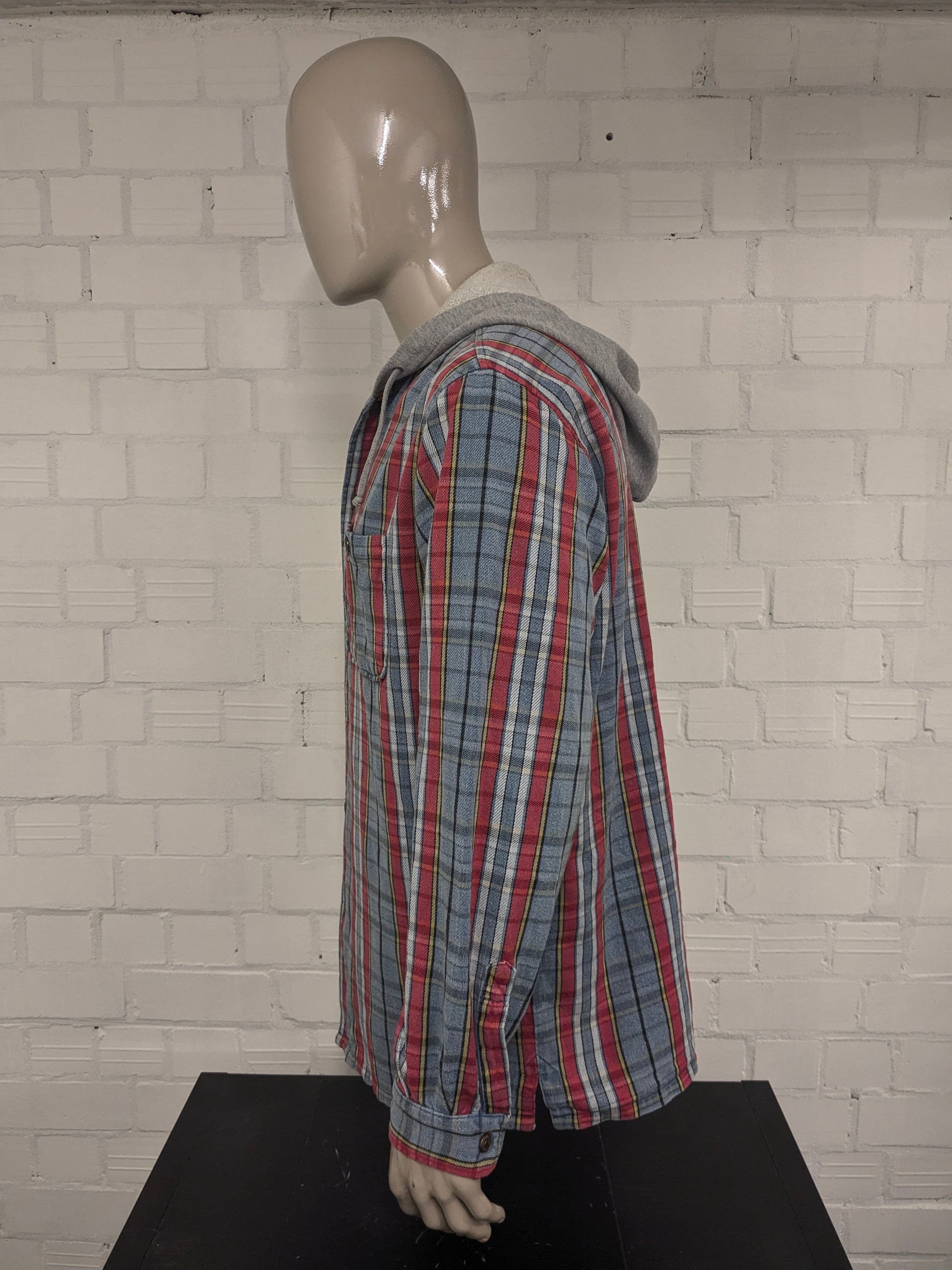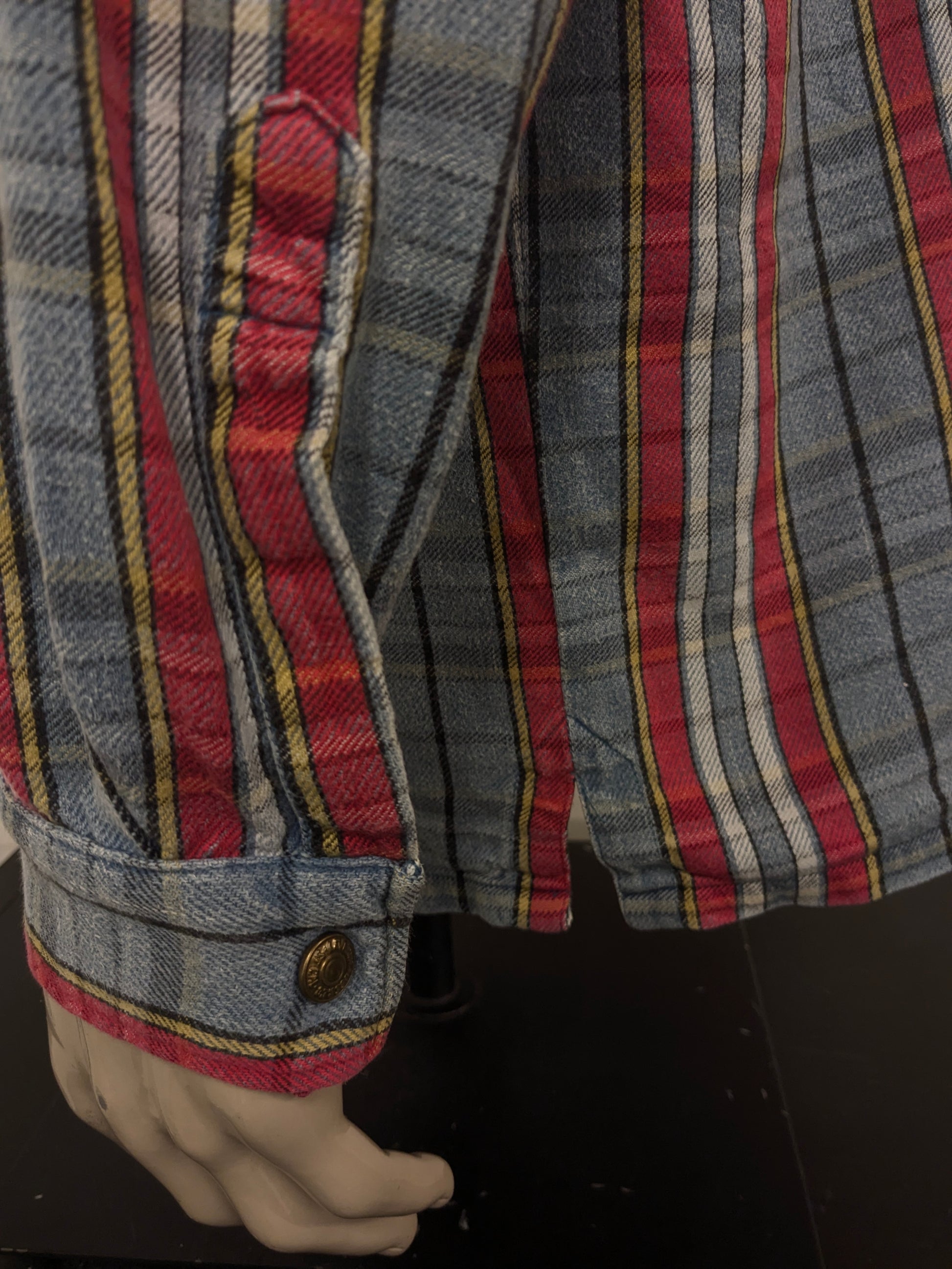 Chemise vintage Levi's Flannel avec boutons-pression et capuche. Bleu Rouge Blanc Jaune à carreaux Taille 2XL / XXL.