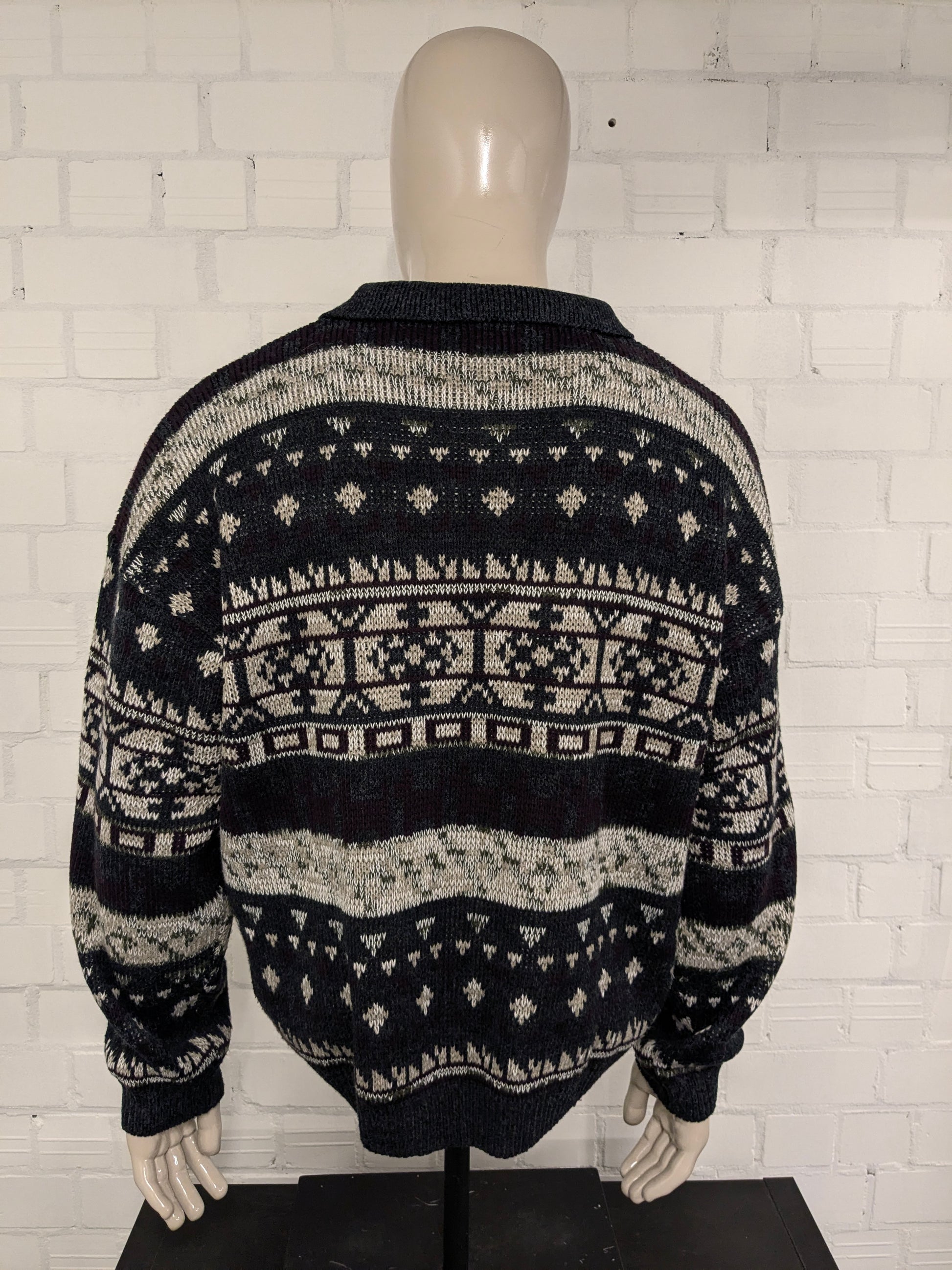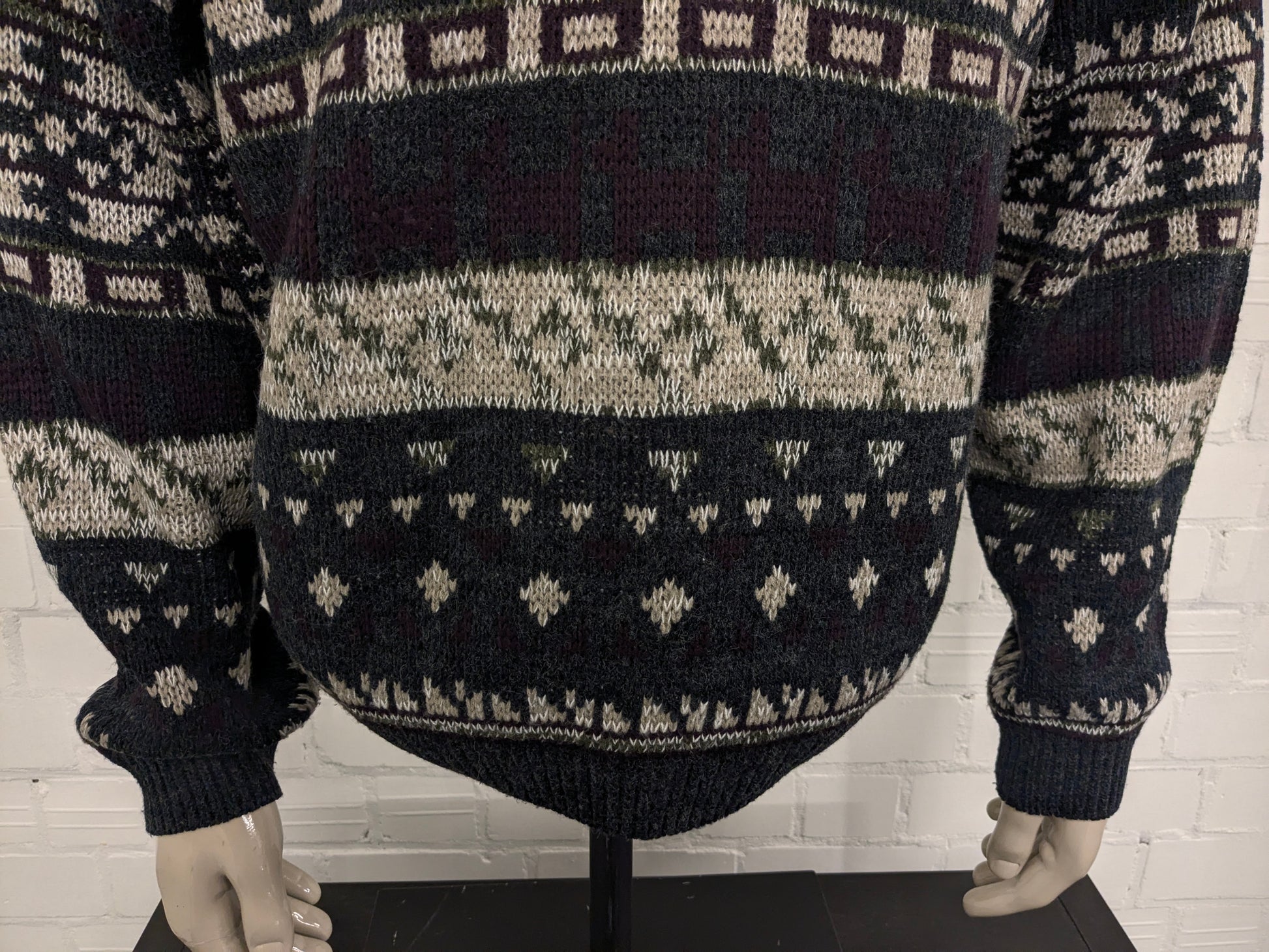 Pull de polo en laine vintage. Colore beige vert violet vert. Taille 2xl / xxl. 15% de laine.