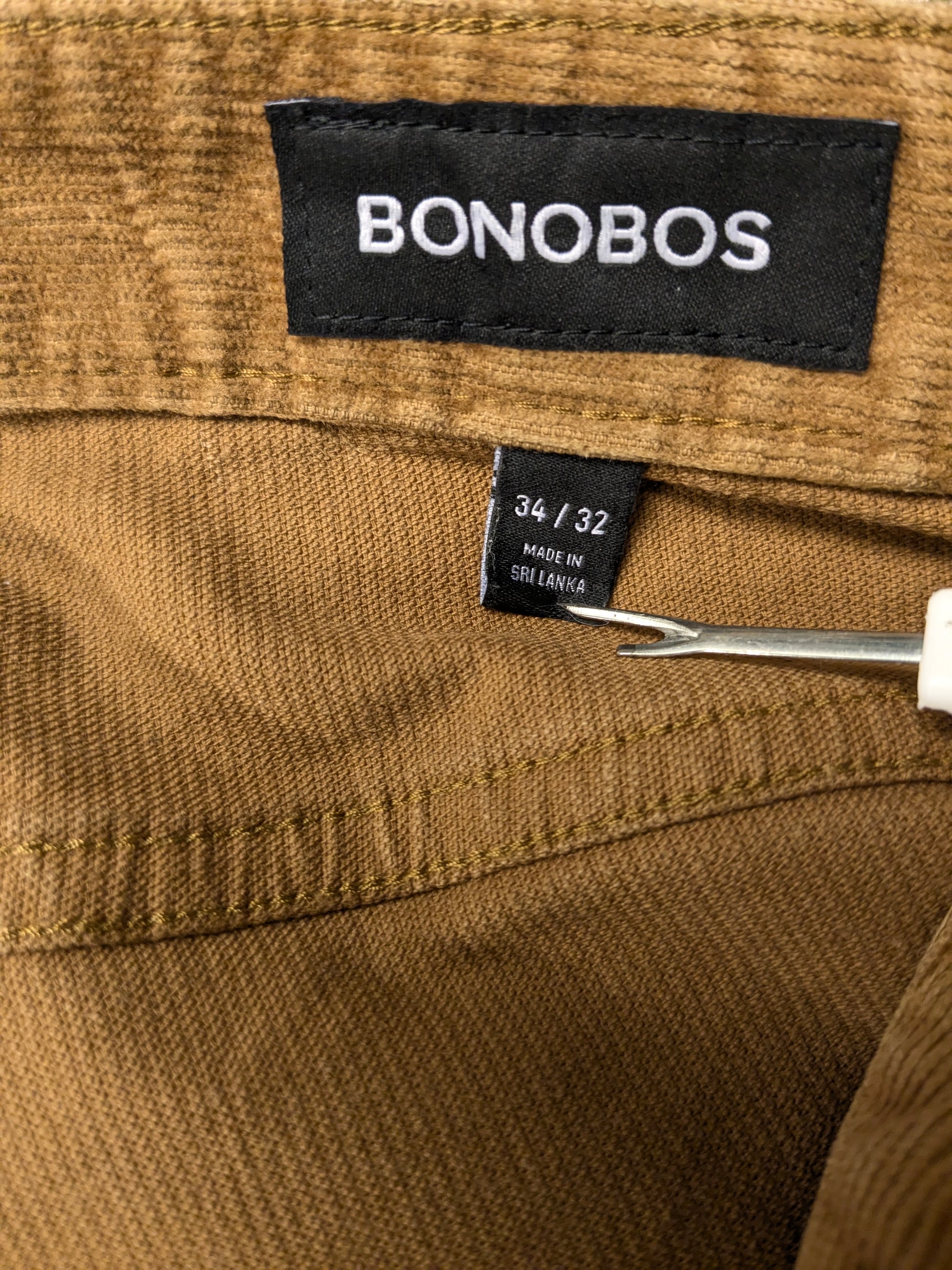 Pantalon côtelé Bonobo. De couleur marron clair. Taille W34 - L32. Tapez sur mesure.
