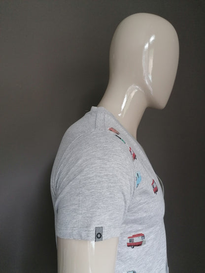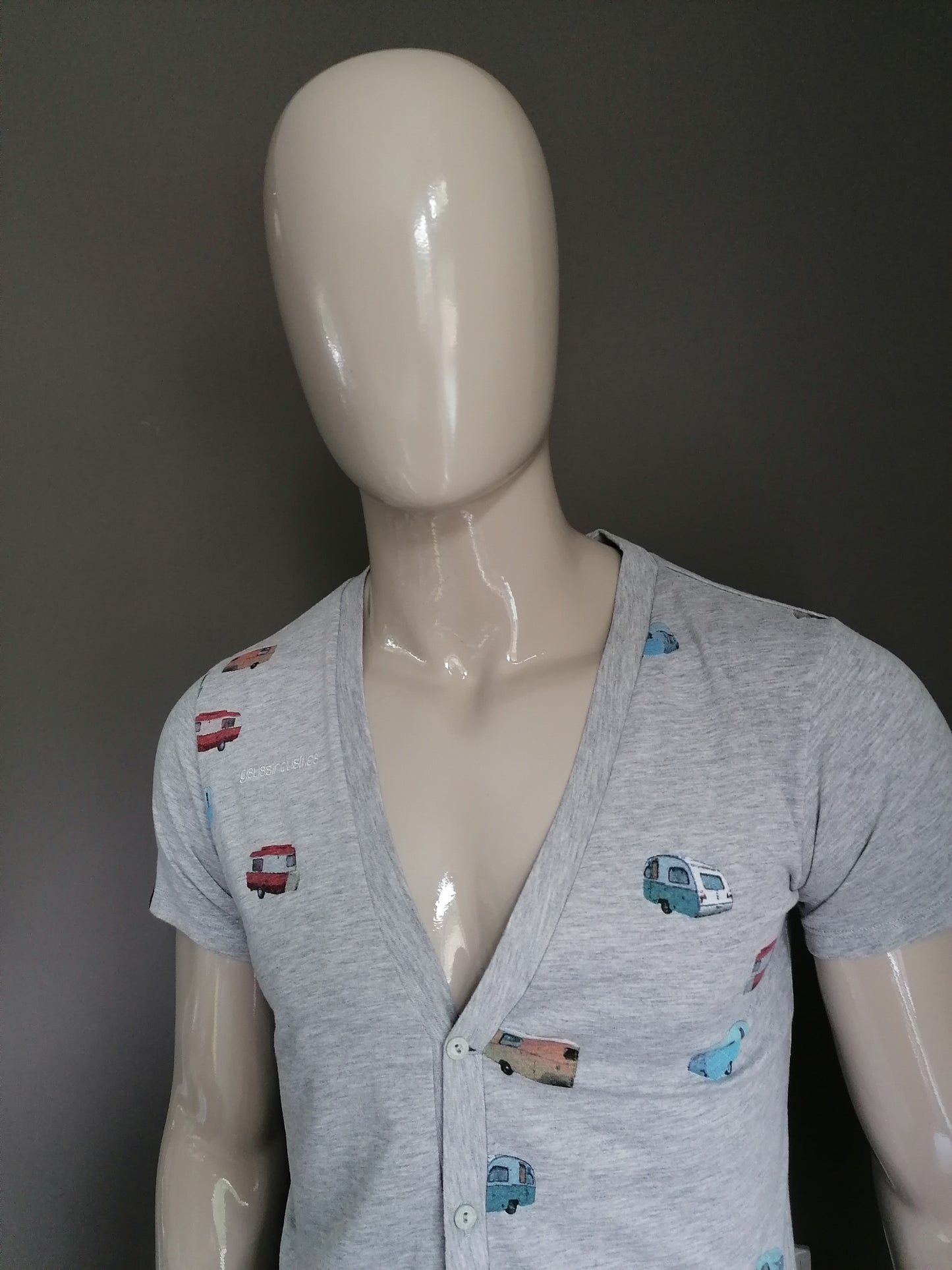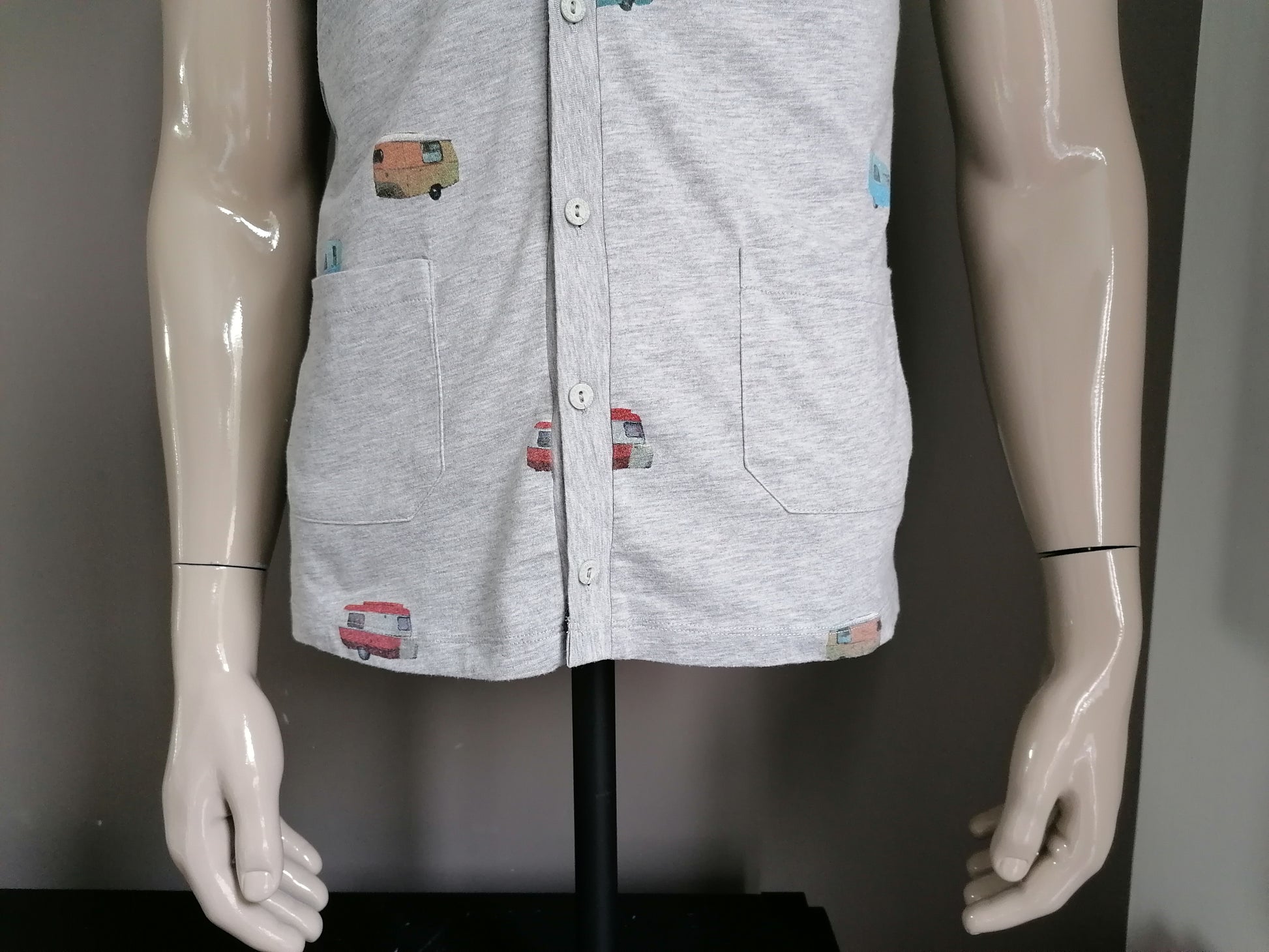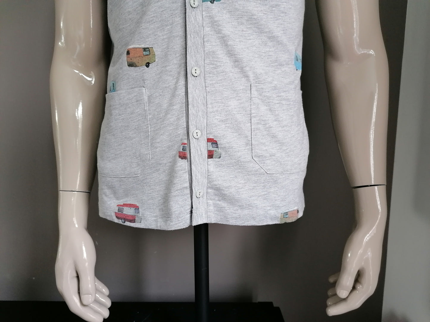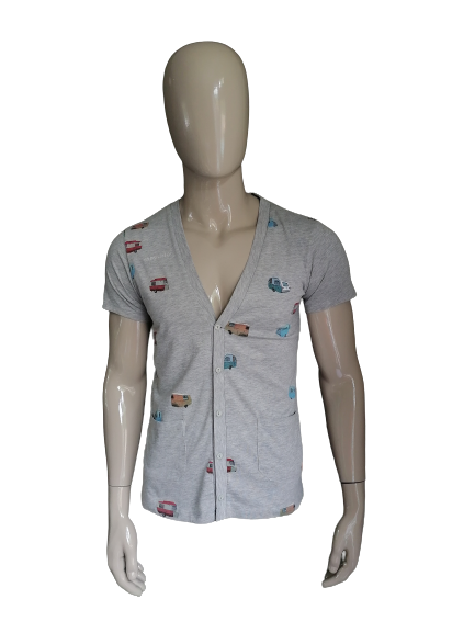 Gsus Industries Shirt / Vest Sleeve courte avec boutons. Gris avec imprimé. Taille