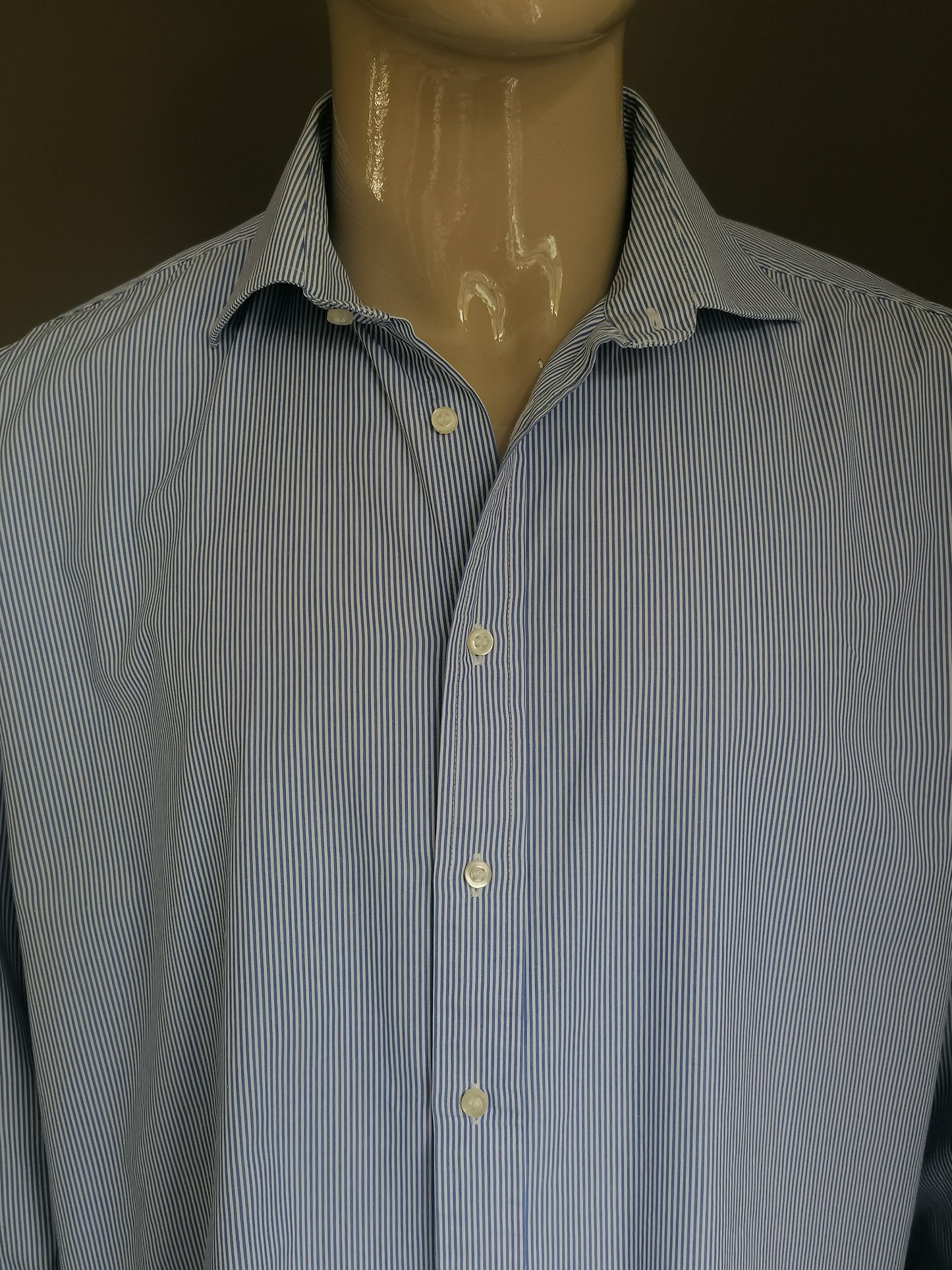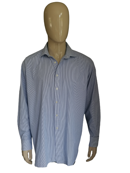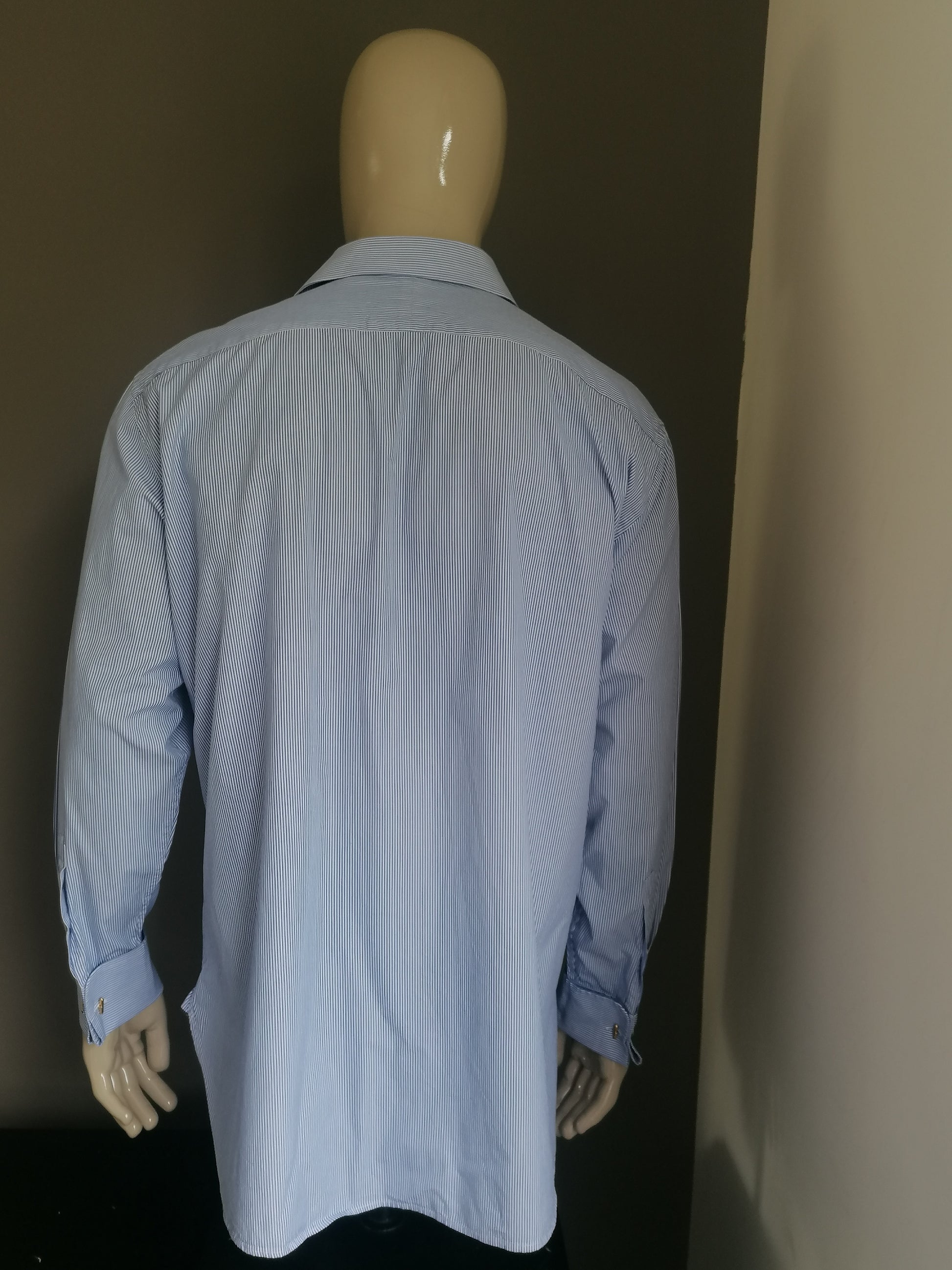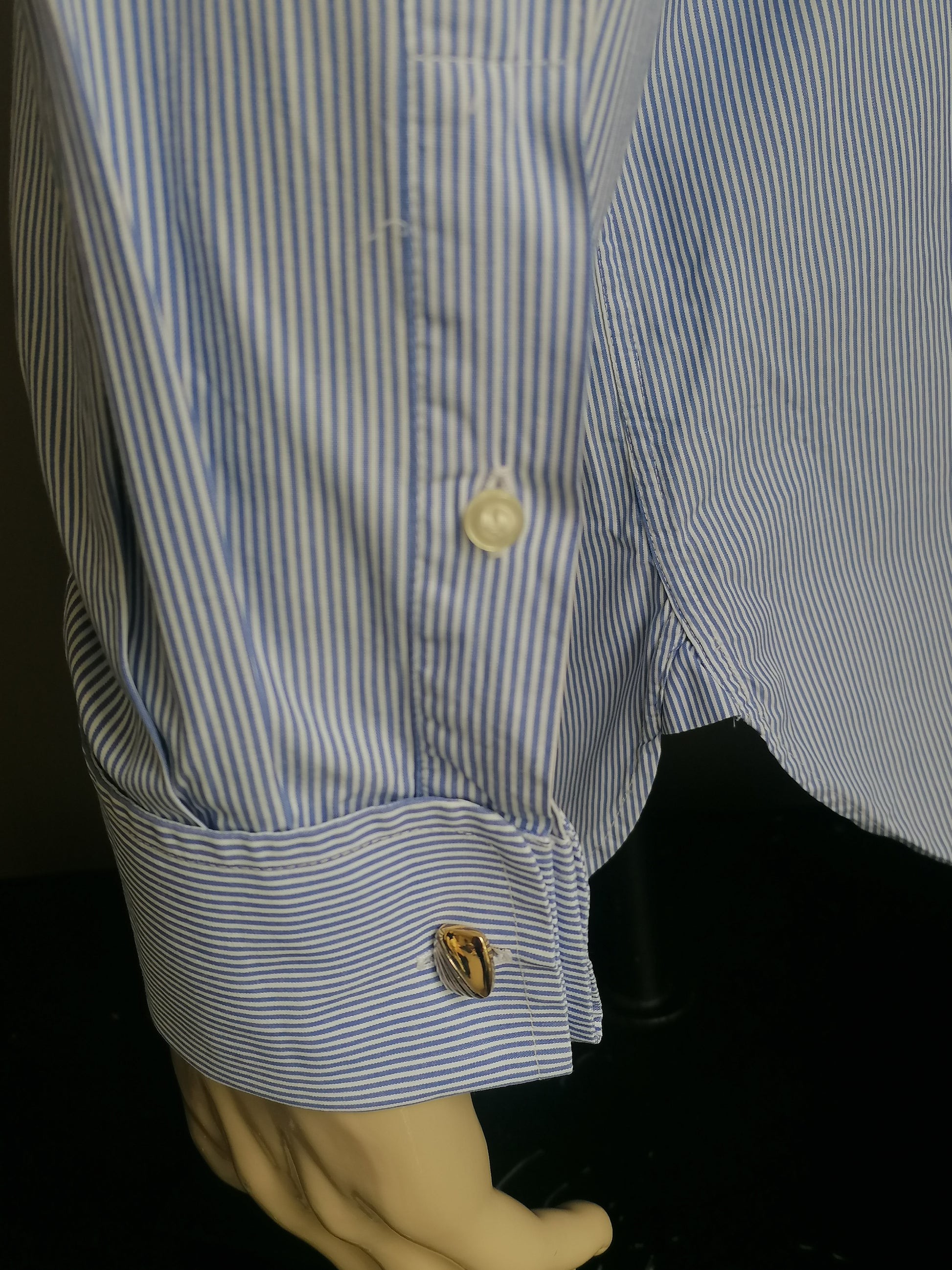 Chemise Lipman & Sons. Bleu blanc rayé. Taille 45 / xxl / 2xl. Type de nœuds manchette. Est vendu à l'exclusion des boutons de manchette.
