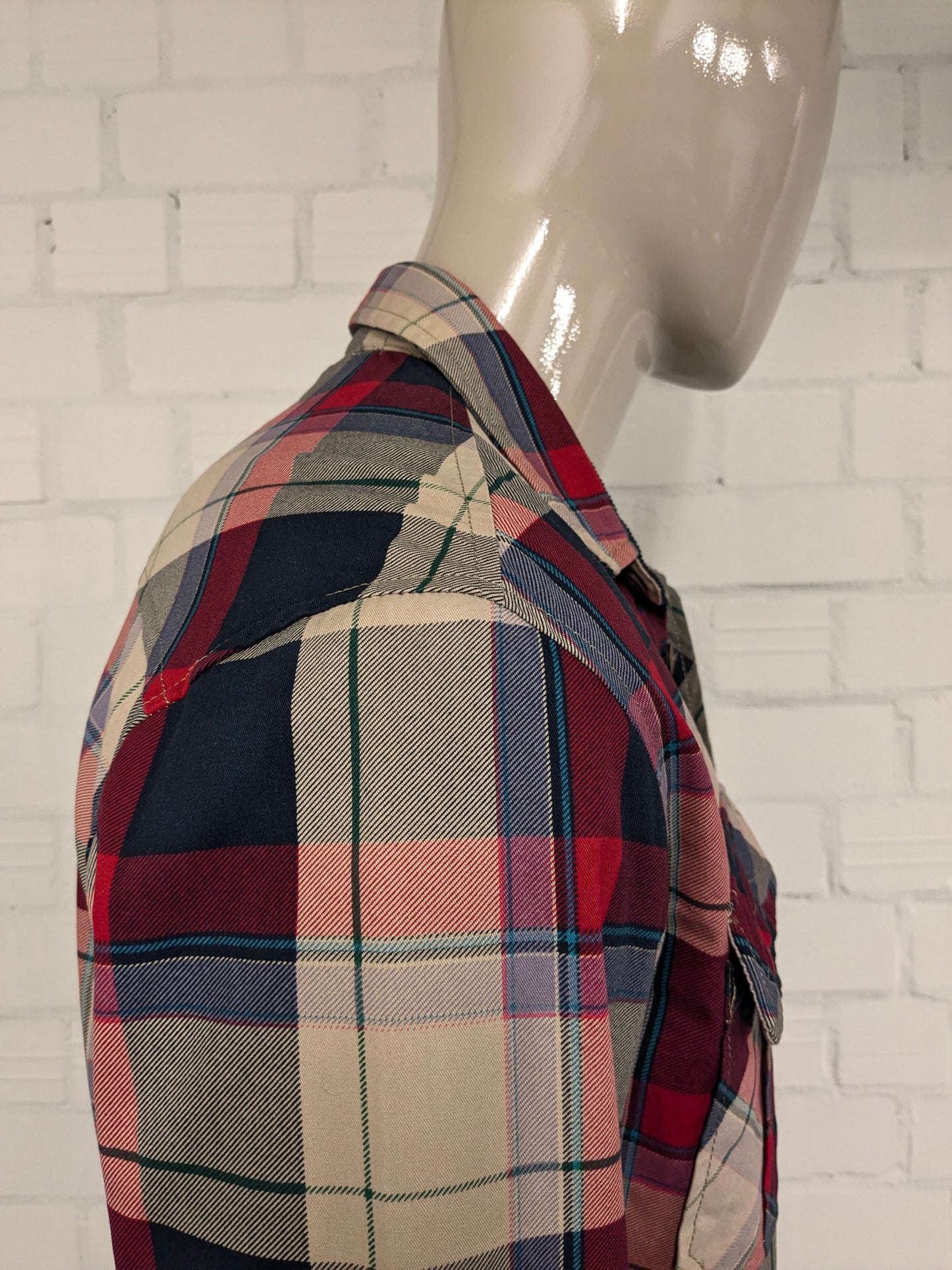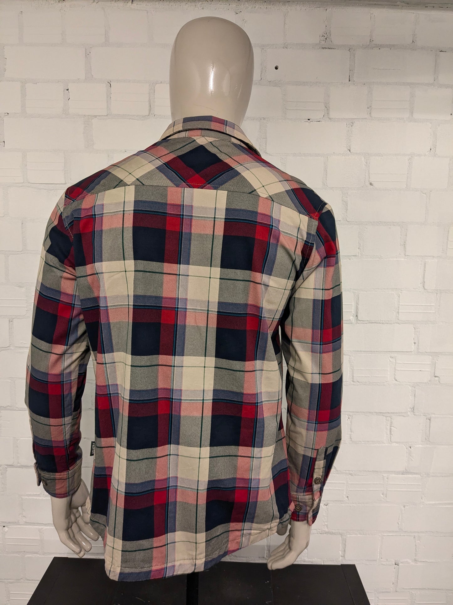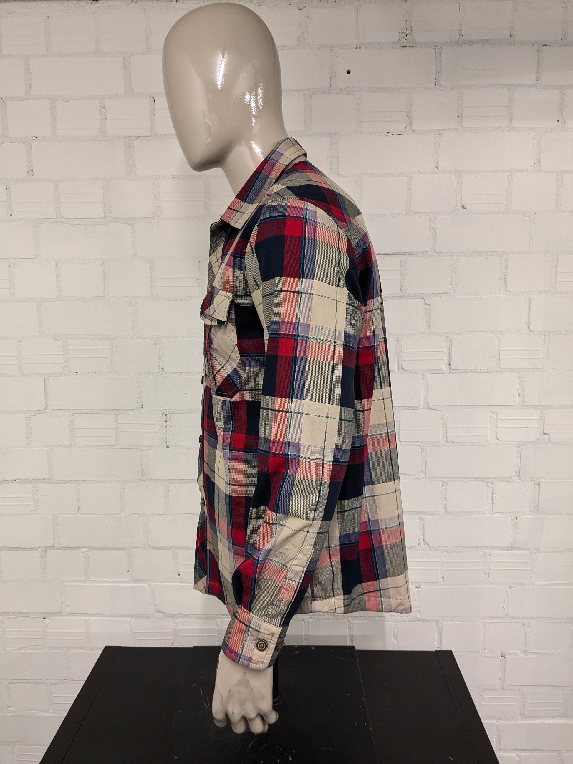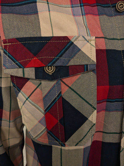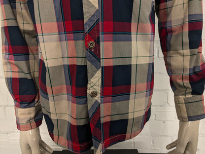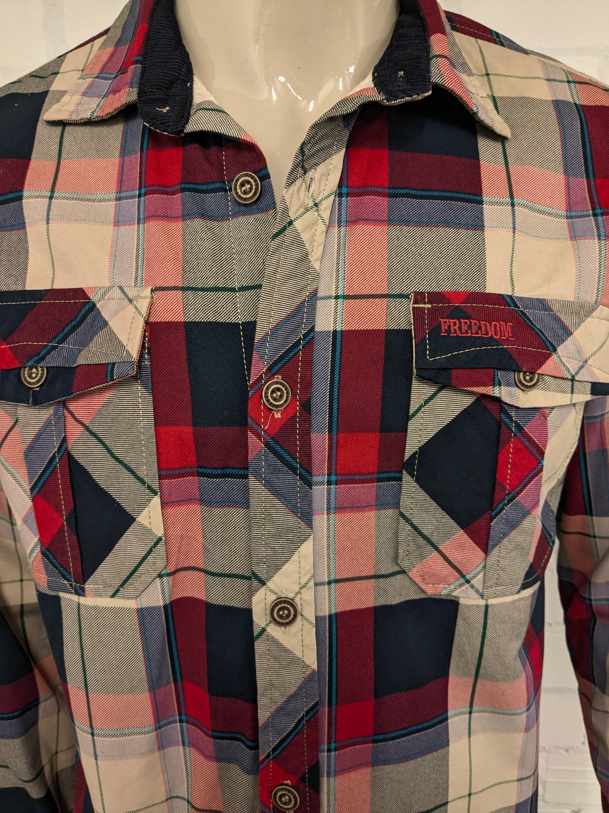 Freedom Fashion Shirt. Légèrement doublé. Brun vert noir rouge vérifié. Taille L.